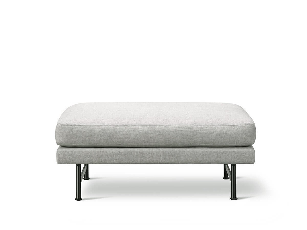 Designed to coordinate with the Fredericia Calmo Sofa's and Lounge Chair, the ottoman is a purposeful piece that can add valuable comfort and support to your seating experience. Echoing the same linear look as the rest of the series, the design is both adaptable and multipurpose; ideal for use as a footrest, resting place for books and magazines and for placing blankets. Upholstered in a contemporary grey fabric, Kvadrat Sunniva 717, paired with a slender steel base, the Fredericia Calmo Ottoman is an elegant addition to a living room in the contemporary home.