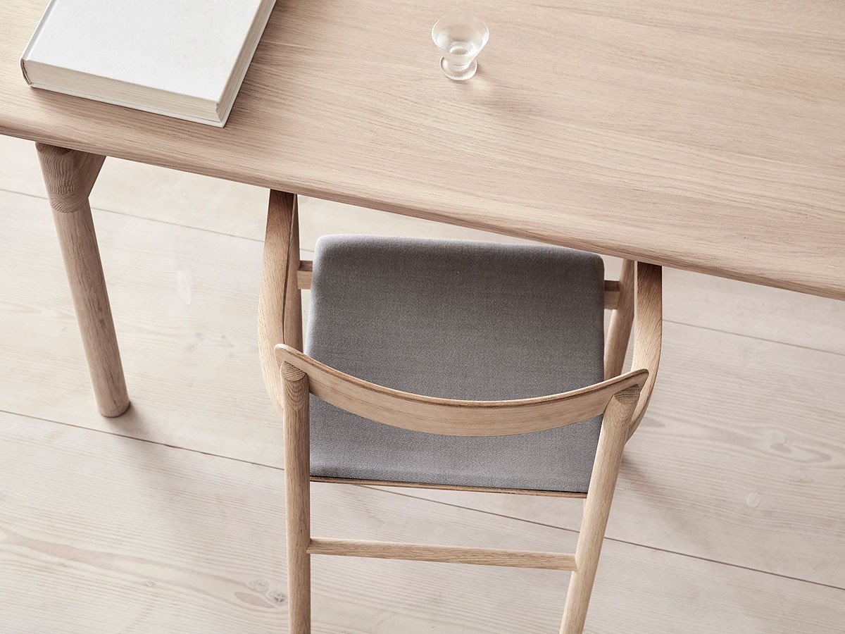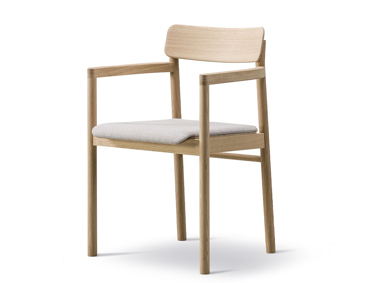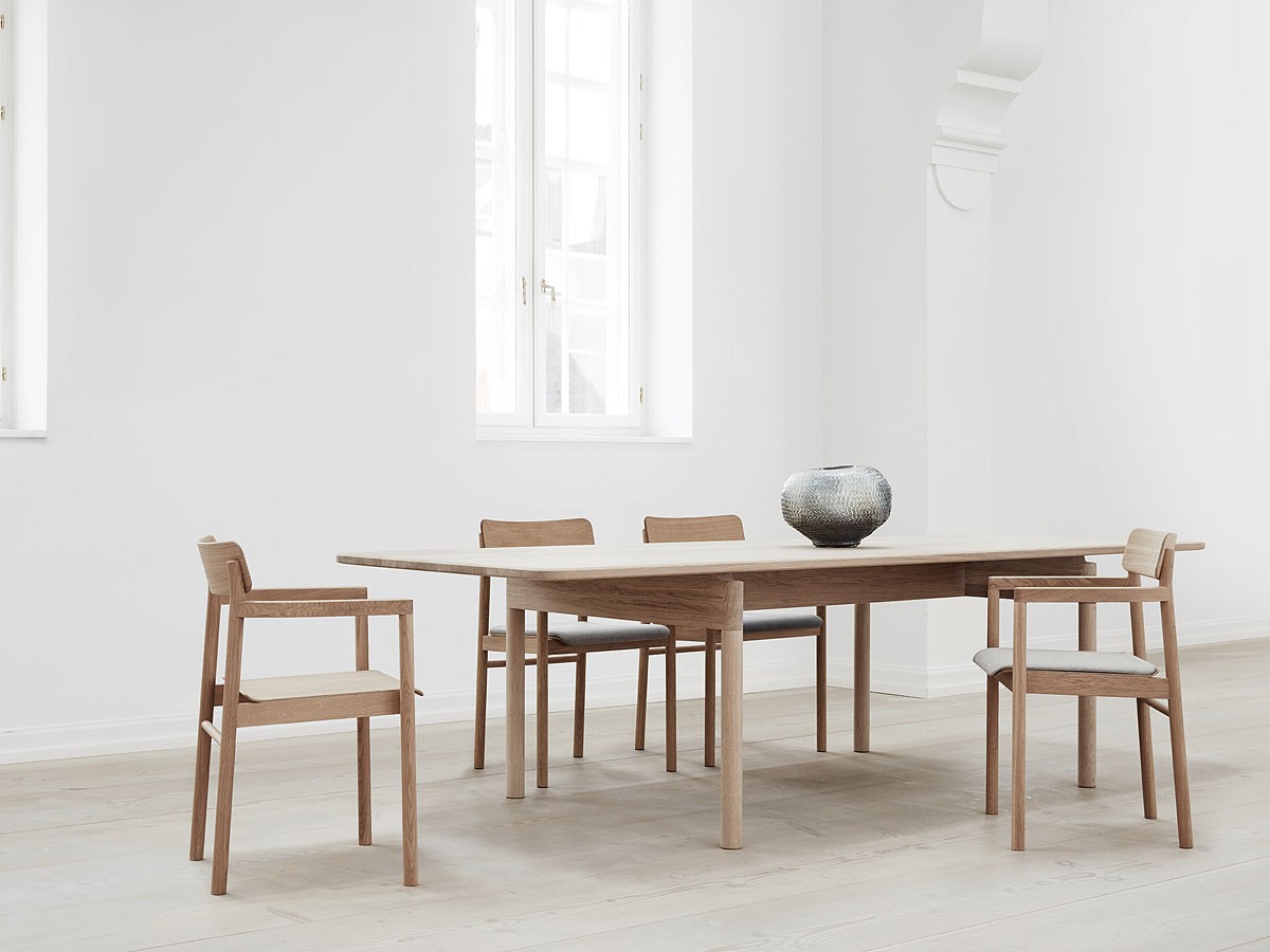 Eliminating unnecessary elements and stripping back the concept to its most simplistic form, the Post Armchair is clean with classic lines, crafted from solid oak wood and reflecting Fredercia's appreciation for natural materials and high-quality wood craftsmanship. With a light expression and proportions that perfectly complement the human form, the chair offers comfortable support with the addition of sturdy arms and a delightfully upholstered seat. A compact design, perfectly suited to an array of styled interiors, the Post armchair adds a touch of minimalistic character without taking up unnecessary space. Ideally displayed around a dining table, utilise in a cafe, restaurant or domestic dining environment. Also available the Fredericia Post Armchair and Post Armchair - Leather Seat.