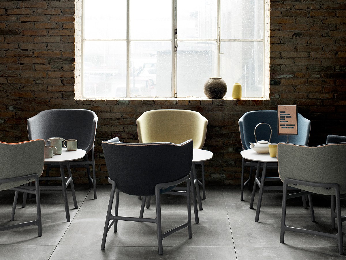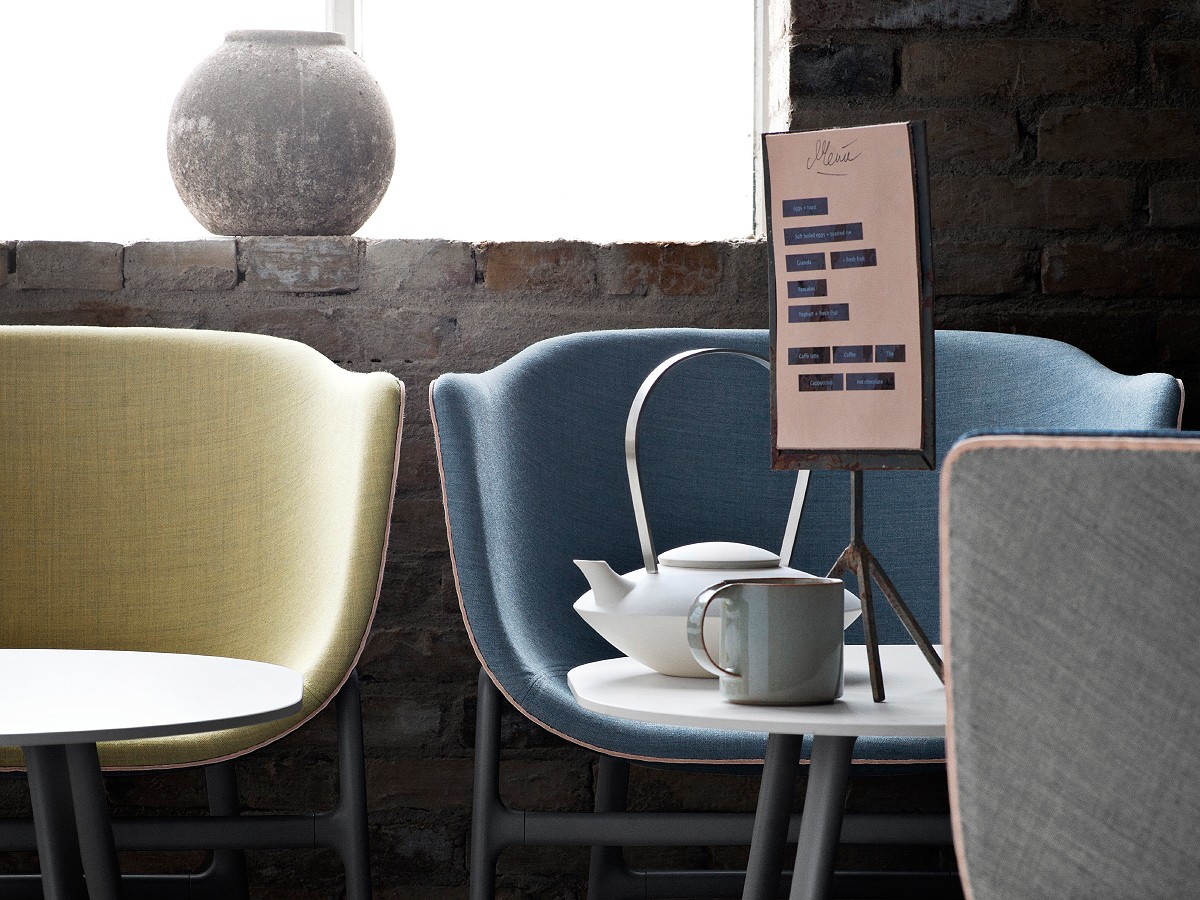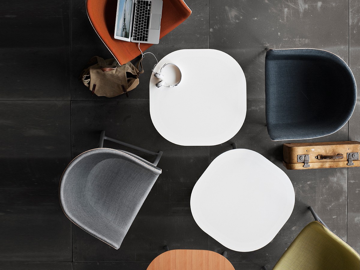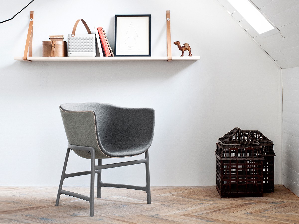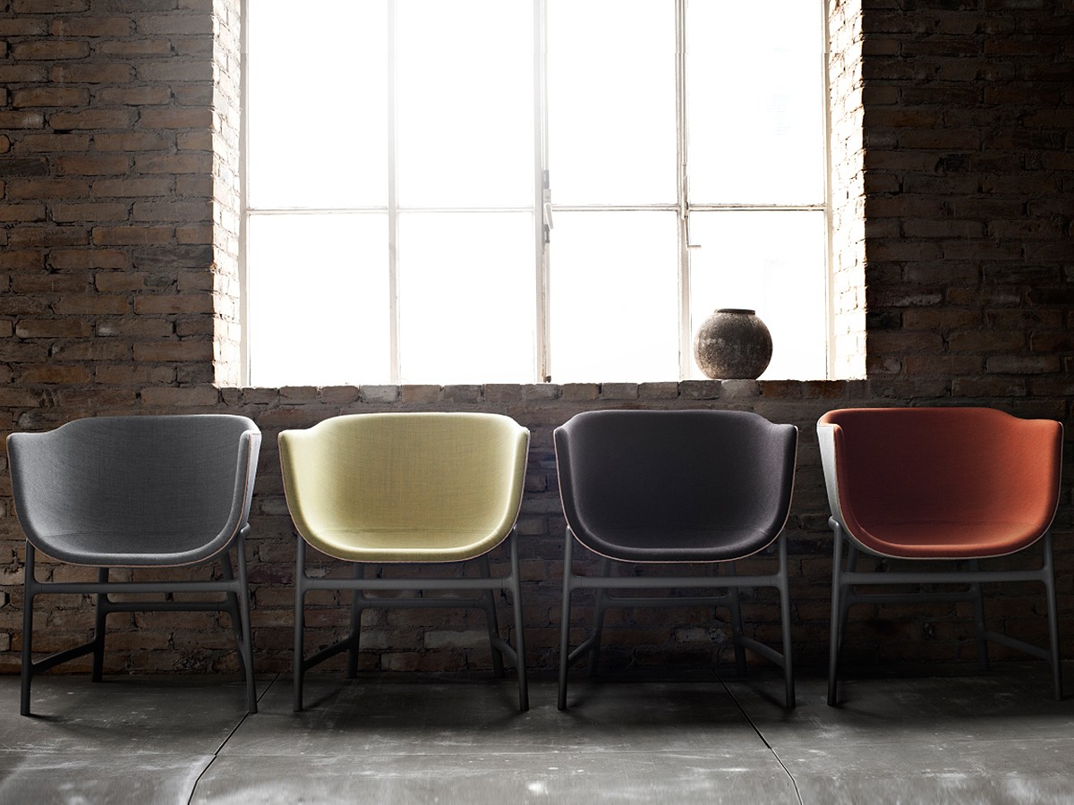 The Minuscule collection combines the tradition of craftsmanship with industrial production. The shell of the seat is upholstered in a lightweight, yet durable, textile and features a fine leather detail that follows the contours of the shell.