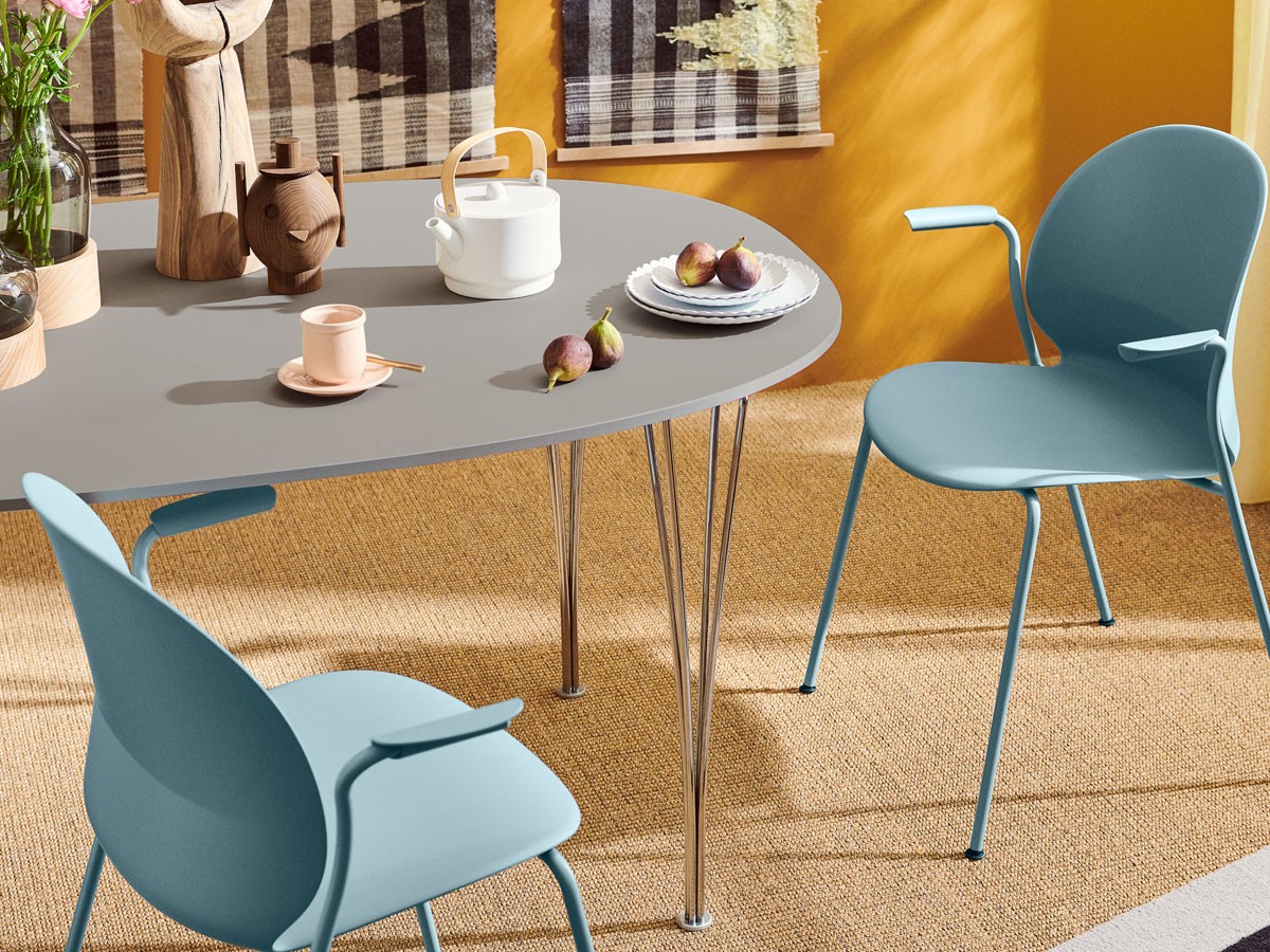 Cleverly crafted from recycled materials, the N02-11 Chair uses household plastic waste, collected, processed and upcycled in central Europe to form its curvaceous shell. With the possibility of recycling again if necessary, N02-11 is as environmentally friendly as it is stylish, earning the prestigious EU-Ecolabel. Highly supportive and incredibly comfortable the chair boasts a strong, stackable structure with a simple all-purpose design that allows for the piece to coordinate with a wide range of contemporary interiors, perfect for using in clusters around a dining table or solely as an occasional side chair. Part of the Fritz Hansen N02 Recycle collection.