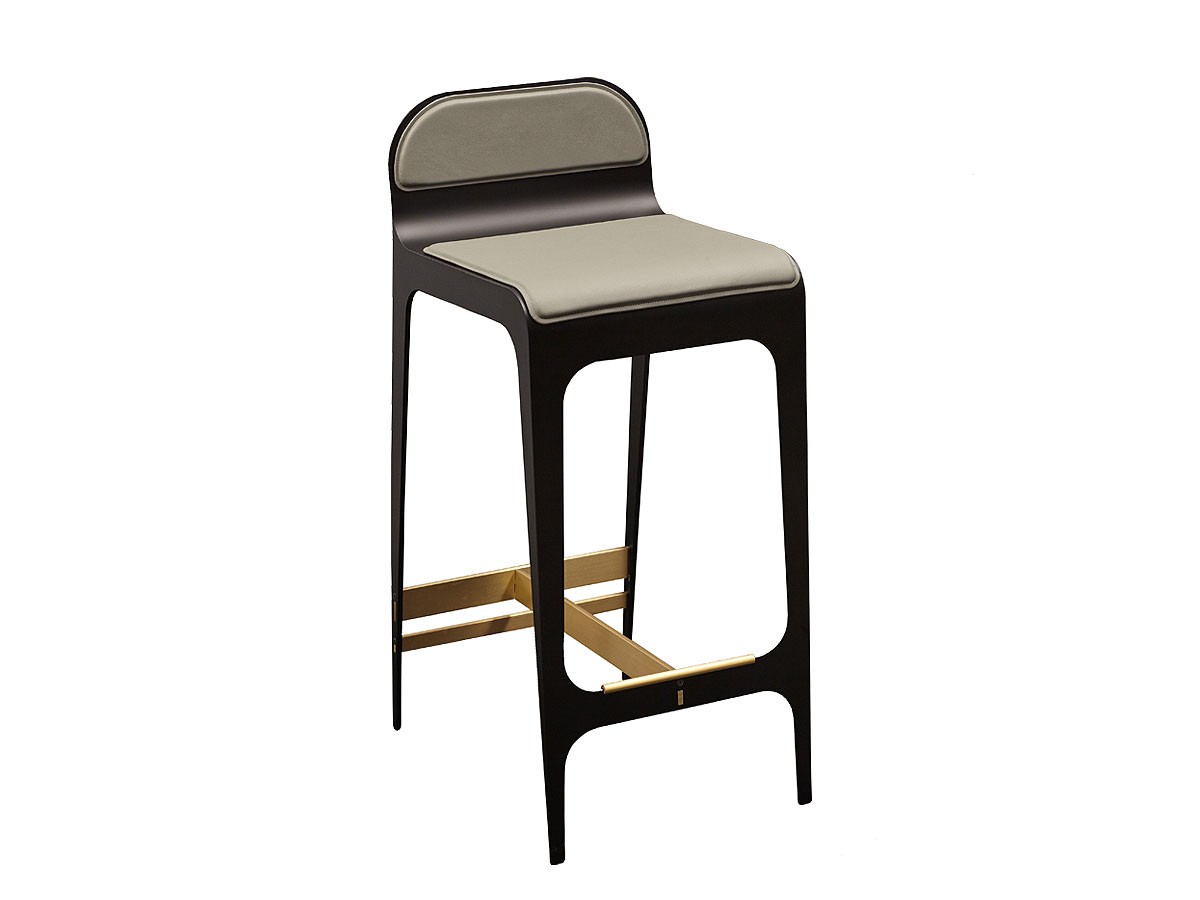 Embodying a modest silhouette, refined with a seamlessly moulded sleek metal frame, the slender shell showcases Gabriel Scott's effortless expert execution and attention to detail. A statement piece, the Bardot Bar Stool combines ergonomic comfort and intricate design. Suited to an array of commercial spaces; cafes, restaurants and cocktail bars, the supple french pebbled leather upholstery and smooth curved backrest offer optimum comfort. A durable fusion of rich metal tones and luxurious material textures this long-legged stool can also be easily utilised at home; perfectly suited to a breakfast bar or kitchen counter. Finished with an added footrest, highlighted with signature metallic hardware, the stool allows the user to perch enjoyably for hours at a time. Also available, the Gabriel Scott Bardot Chair.