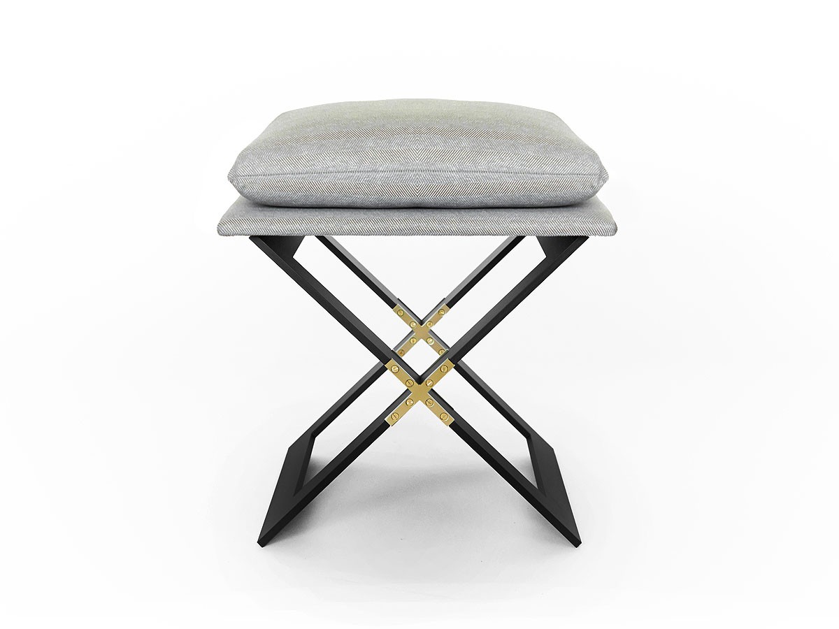 A luxurious union of geometry and soft upholstery, the Marx stool can be used with limitless functionalities. Upon the metal x-base sits a light herringbone cushion top, the perfect piece to add a touch of comfortable opulence to your home. Available in a rich blackened steel structure highlighted with striking metallic brass hardware or an equally eye-catching full satin brass option, this bold design is bound to take centre focus in a living space, hallway or bedroom.