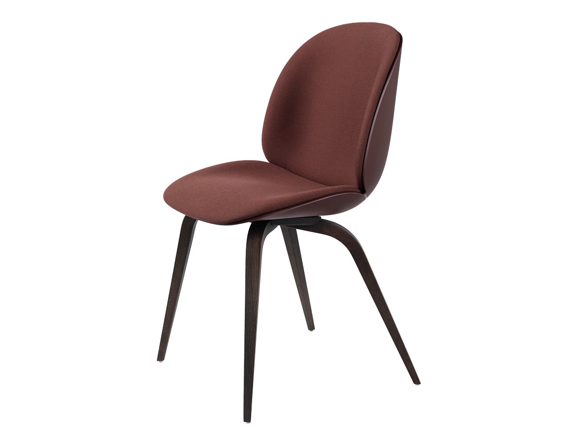GamFratesi looked to the insect world for inspiration for the Beetle Dining Chair, focussing on the smooth anatomy and movement of its namesake. Now available in a semi-upholstered version with a stunning wooden frame, the chair reinterprets the curved elements of the beetle's unique shell. Adding a luxurious and comforting touch to any dining space, seat yourself and guests with effortless style and relaxation.