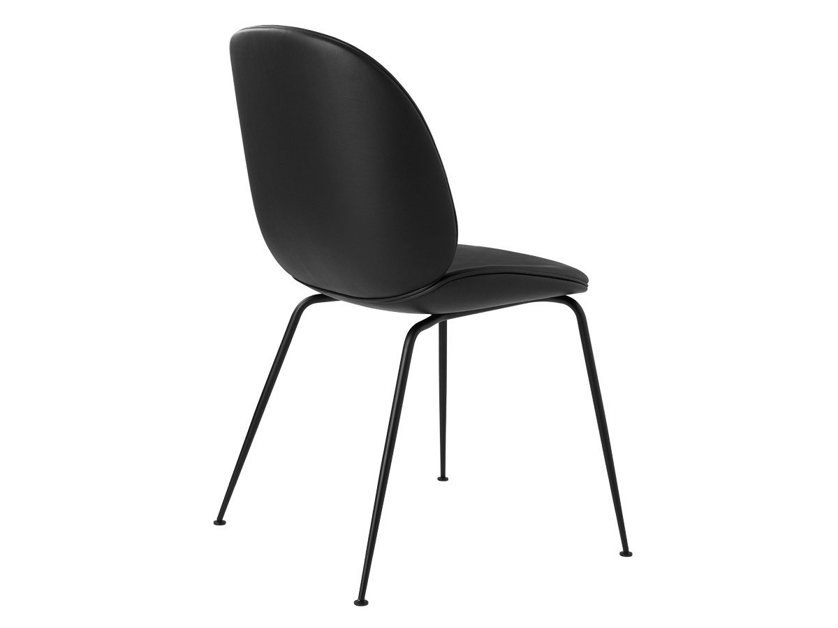 Designed by Gamfratesi for Gubi, the Beetle Dining Chair is a true design icon, featuring smooth flowing lines and customary Scandinavian simplicity. With a distinctive, curved silhouette, inspired by the form of a beetle, the chair is upholstered here in luxurious Gubi black leather, a supple and durable option, ideal for use around a dining table or as an occasional chair in a living space. An appealing, timeless design, the Beetle Dining Chair provides a stylish yet highly supportive seating experience.