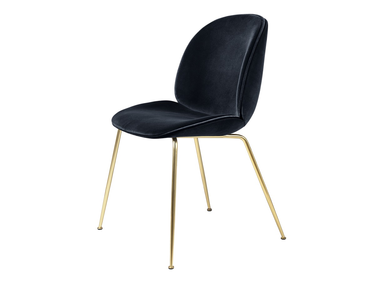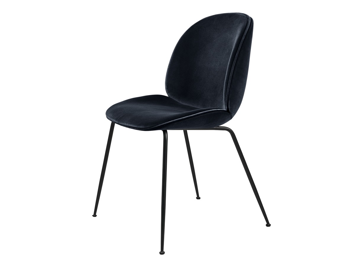 Inspired by the anatomy and movement of a Beetle, the Gubi Beetle Dining Chair - Fully Upholstered - Velvet combines enduring craftsmanship with luxurious velvet. Reinterpreting the curved characteristic elements of the beetle's unique shells, sutures, rigid outsides and soft insides, its curved profile provides the utmost comfort. Adapting flawlessly to a range of interiors supplementing both style and iconic design to your home, it is available in a striking range of colourways and is part of the iconic Beetle Collection.