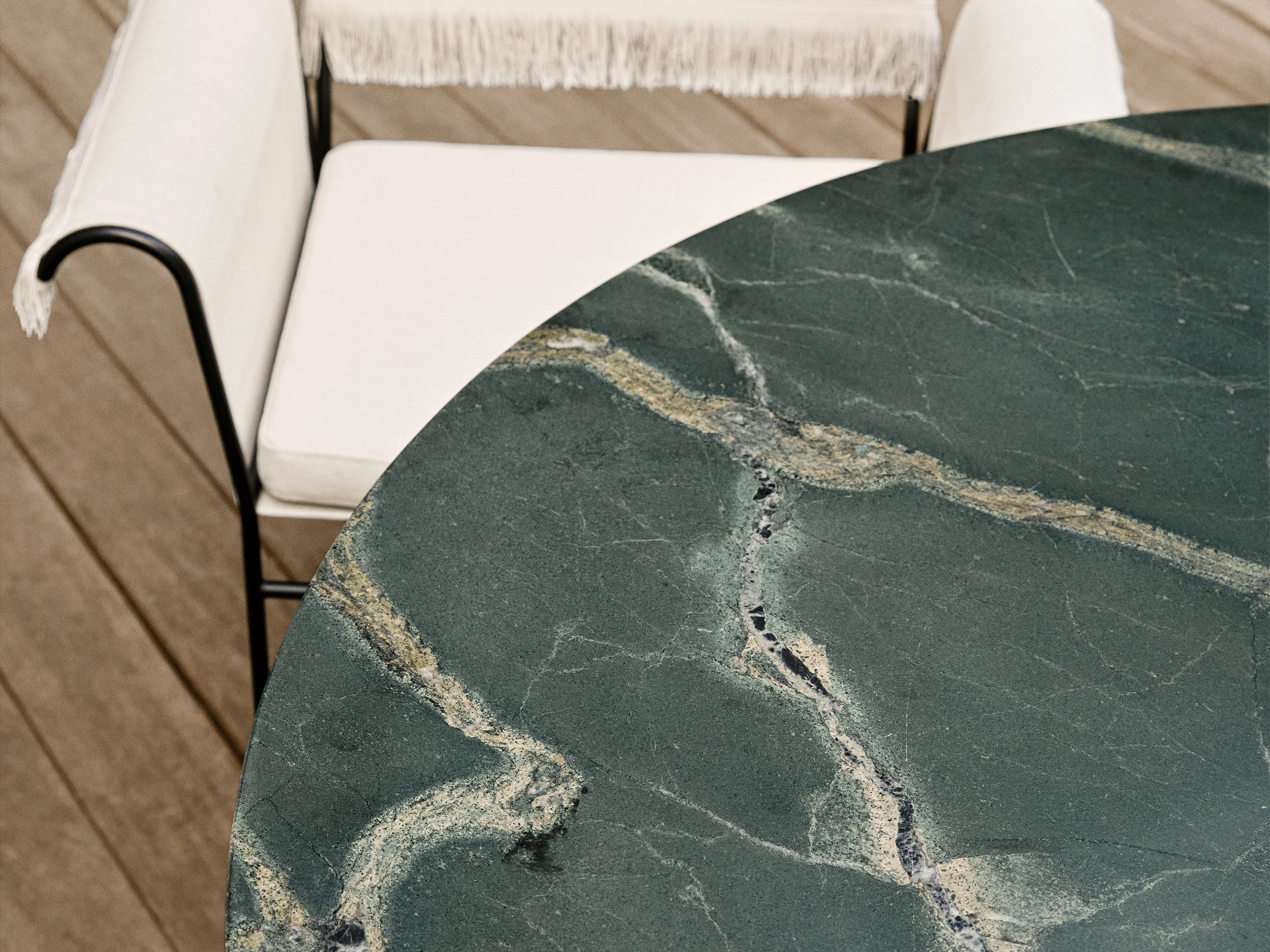 Drawing inspiration from the monumental structures of ancient Greece and Rome, the Epic Dining Table has earned its place as a signature piece in GUBI’s collection. This refined update, specially optimised for alfresco dining, is defined by its quartzite composition, one of the hardest stones prized for its durability and resilience when exposed to the elements.