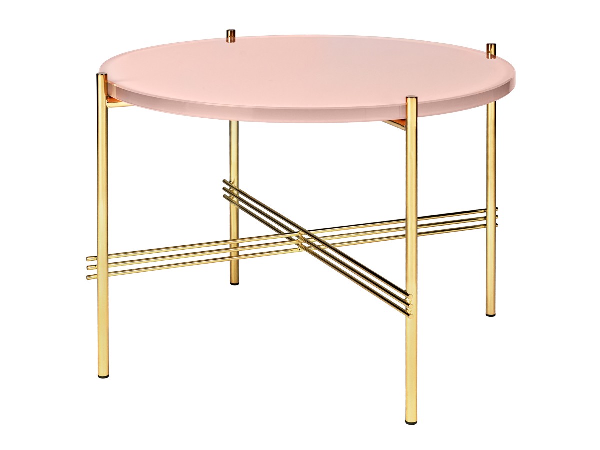 The contrasting coloured glass table top and slender brass plated metal base, with a characteristic cross that intertwines under the table, has strong references to the iconic 'The Standard' hotel in Copenhagen, from which GamFratesi drew much inspiration. The TS tables work equally well in singles or in groups, whilst a variety of colourways allows you to tailor your purchase to your existing aesthetic.