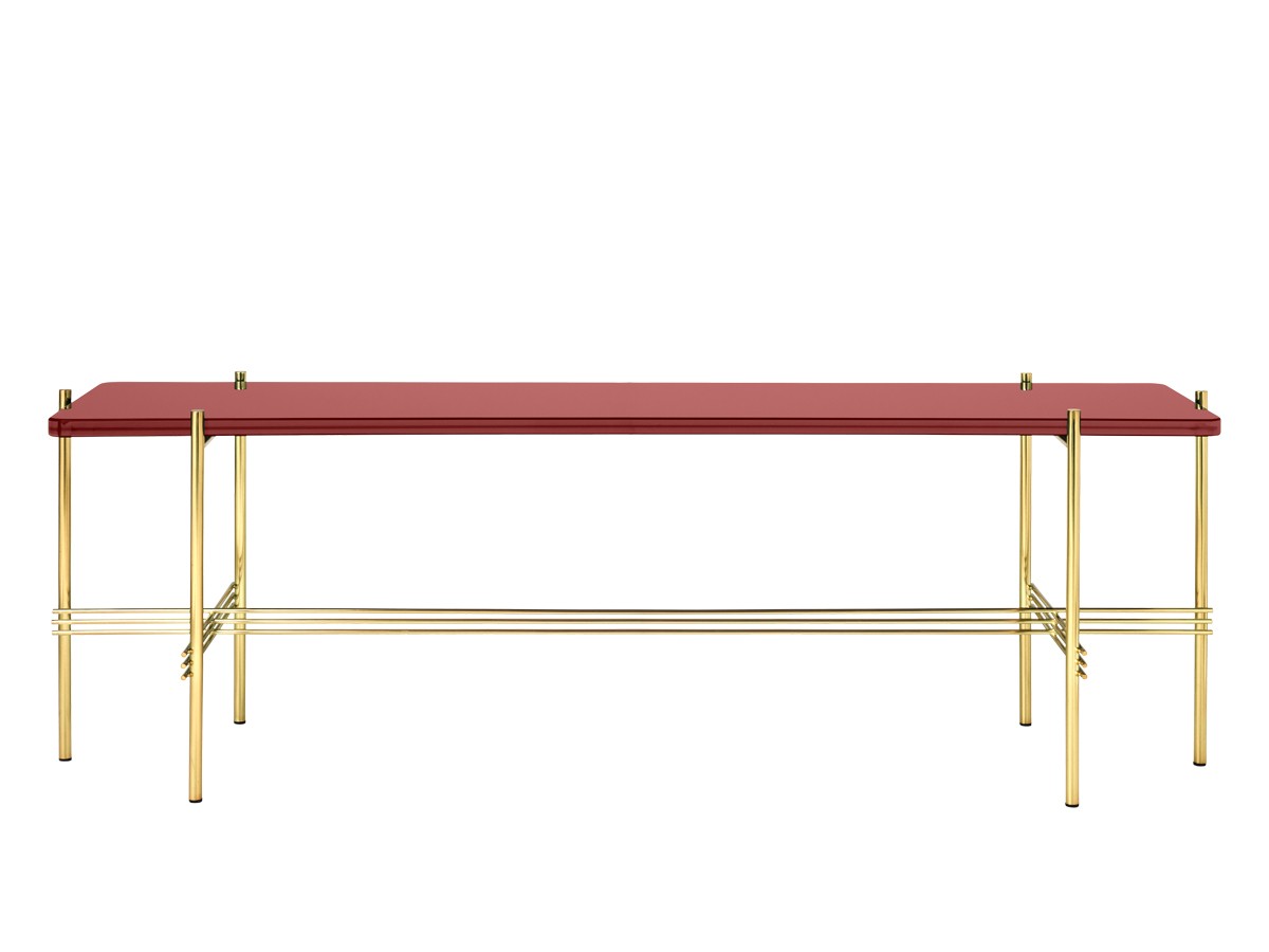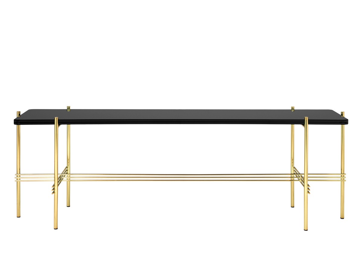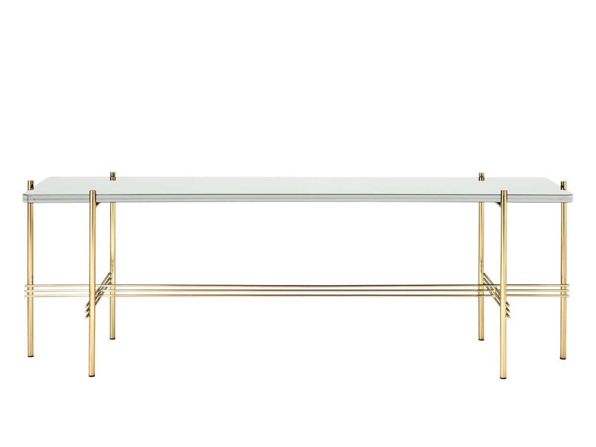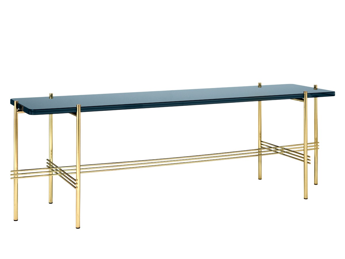 Designed by GamFratesi, the TS Console Low is an eye-catching furniture solution. The table features Gubi's renowned craftsmanship, with interlocking metal struts bringing the brass plated base to life and accentuating the piece's linear aesthetic. The table is ideal for housing vases, magazines or media units, and can be placed in a range of interior spaces due to its versatility, perfect for a hallway or living room.