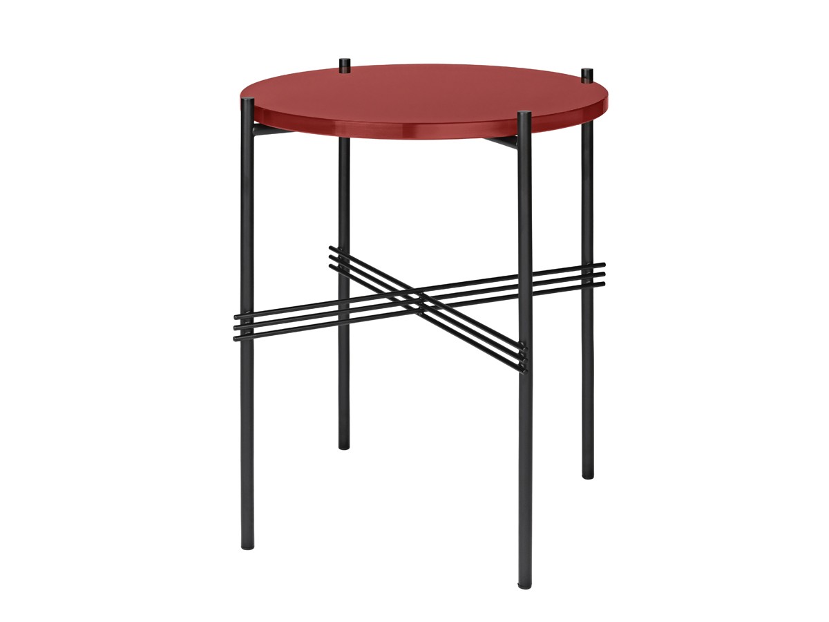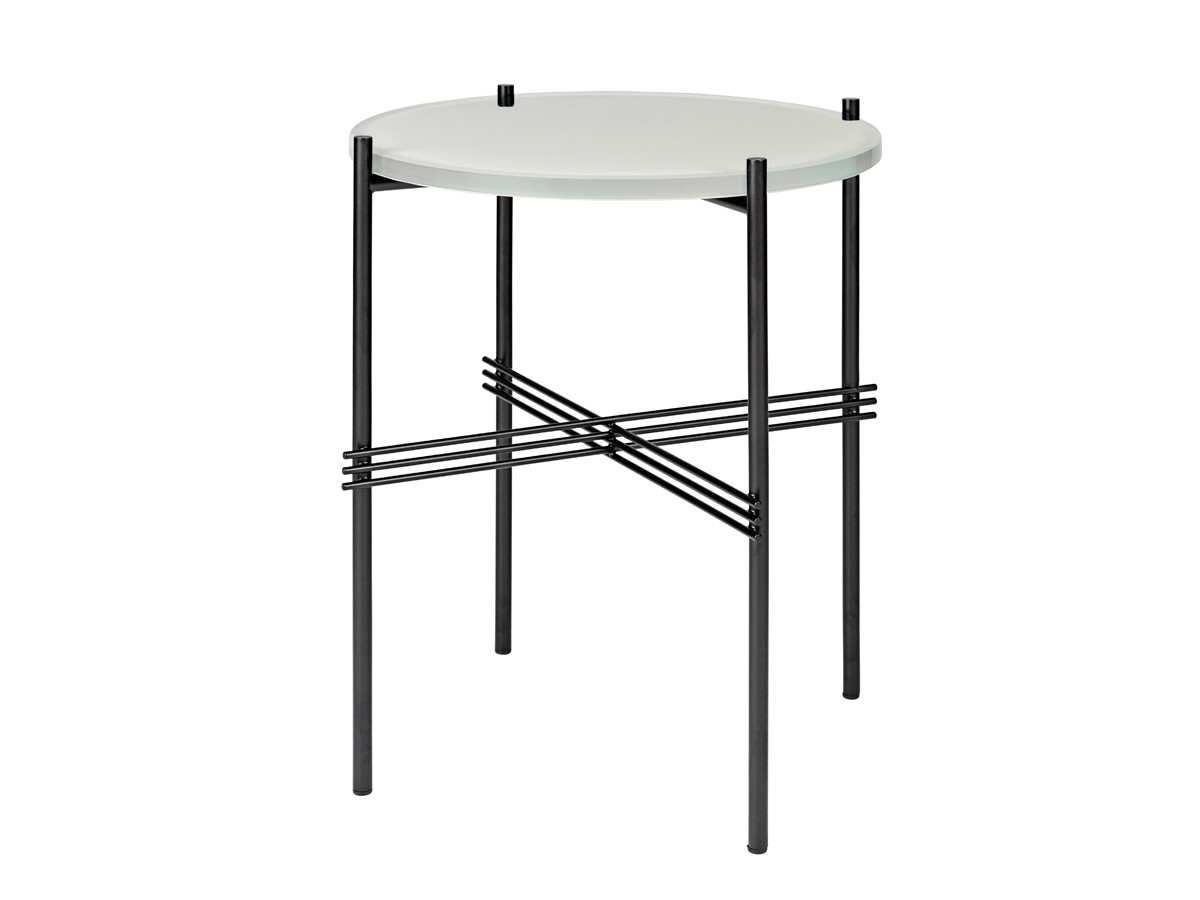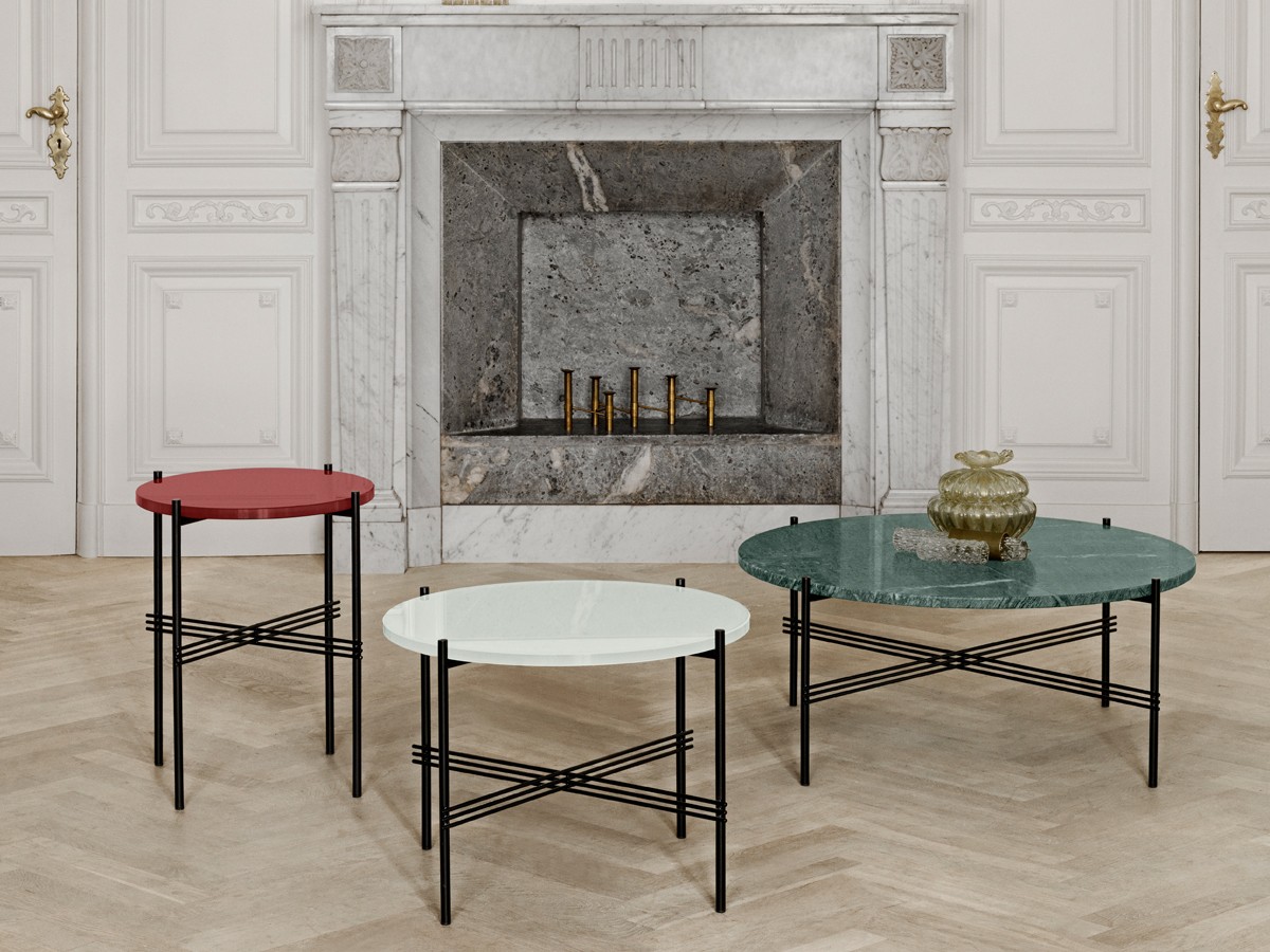 The contrasting coloured glass table top to the slender metal base, with a characteristic cross that intertwines under the table, has strong references to the The Standard’s architecture from 1932. The TS tables work together as a small group, complementing each other with its different sizes and heights, but they also work equally well as singles.