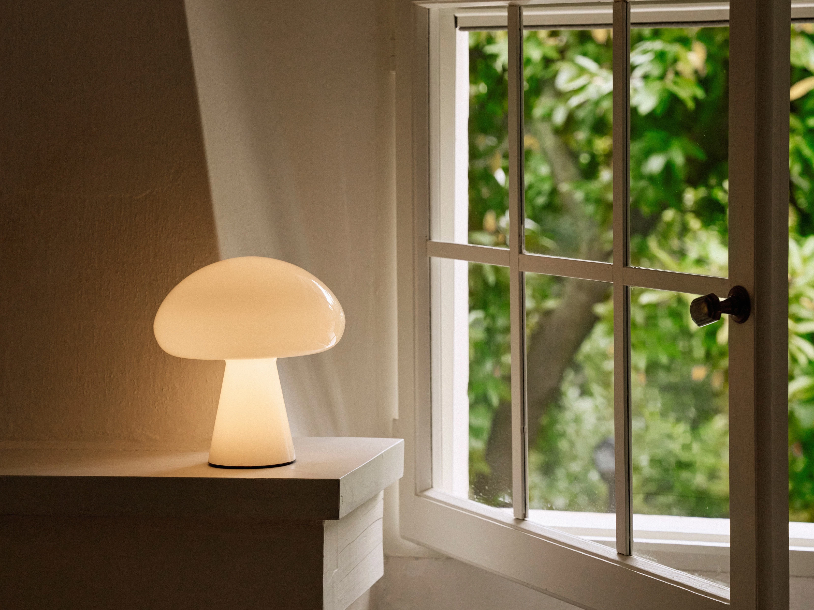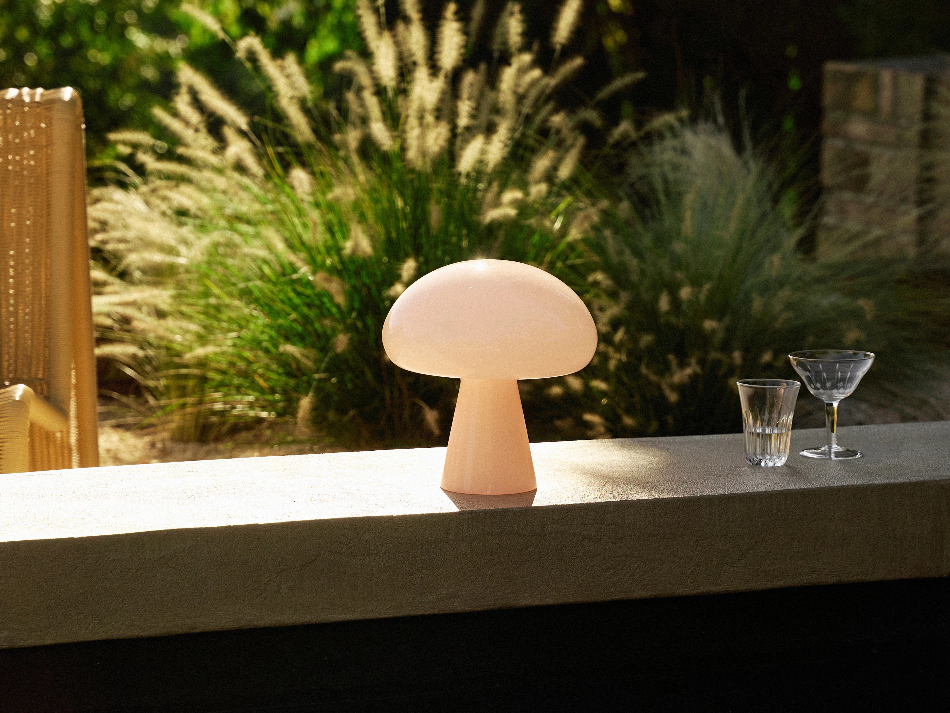 Lightweight and portable, the GUBI Obello Lamp boasts a novel silhouette, masterfully crafted as one singular piece from mouth-blown glass. Featuring a long-lasting battery and rich, uniform light, it’s designed for indoor and outdoor use.