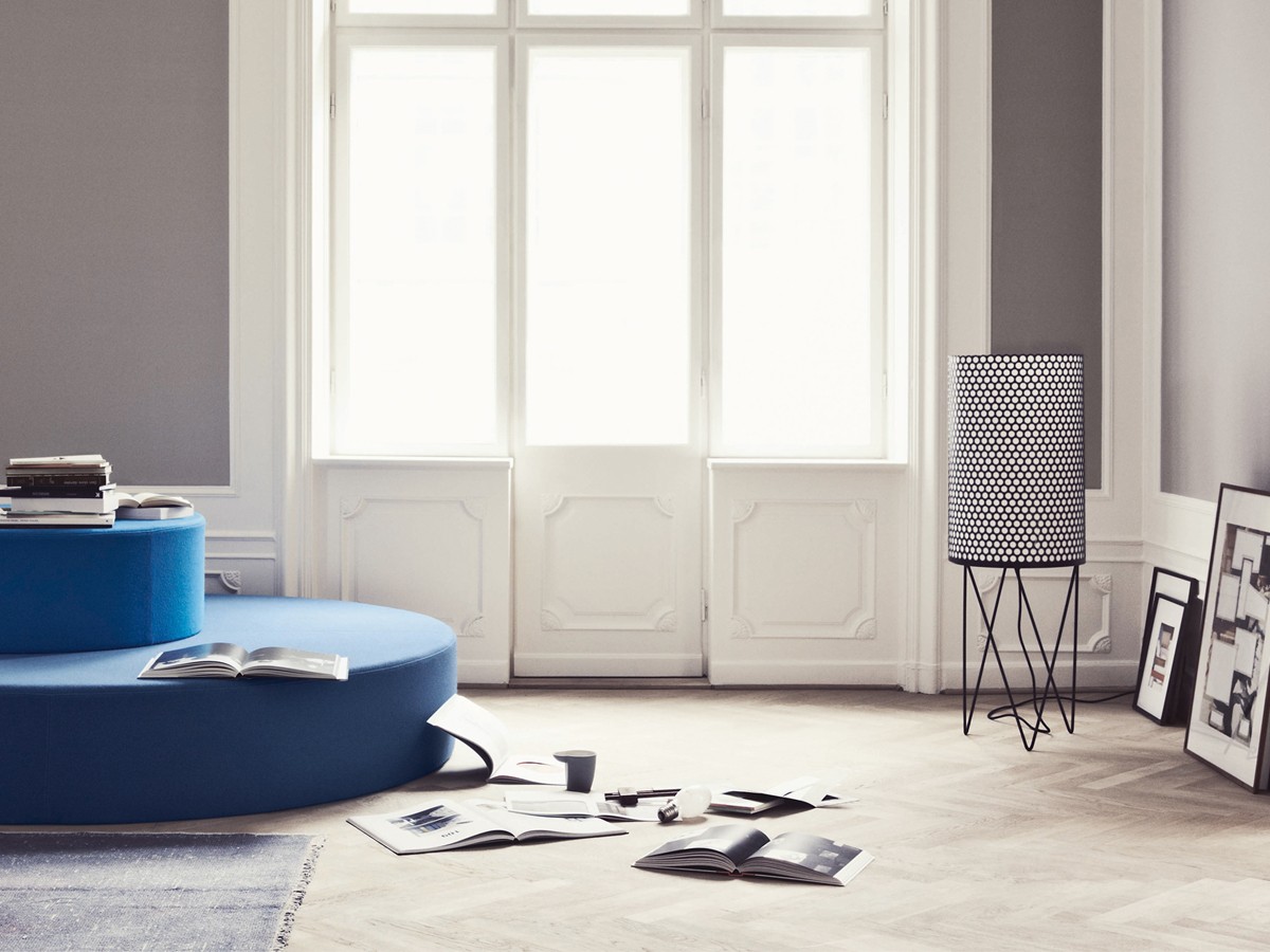 The Pedrera Floor Lamp is available in either matt black or matt white.
