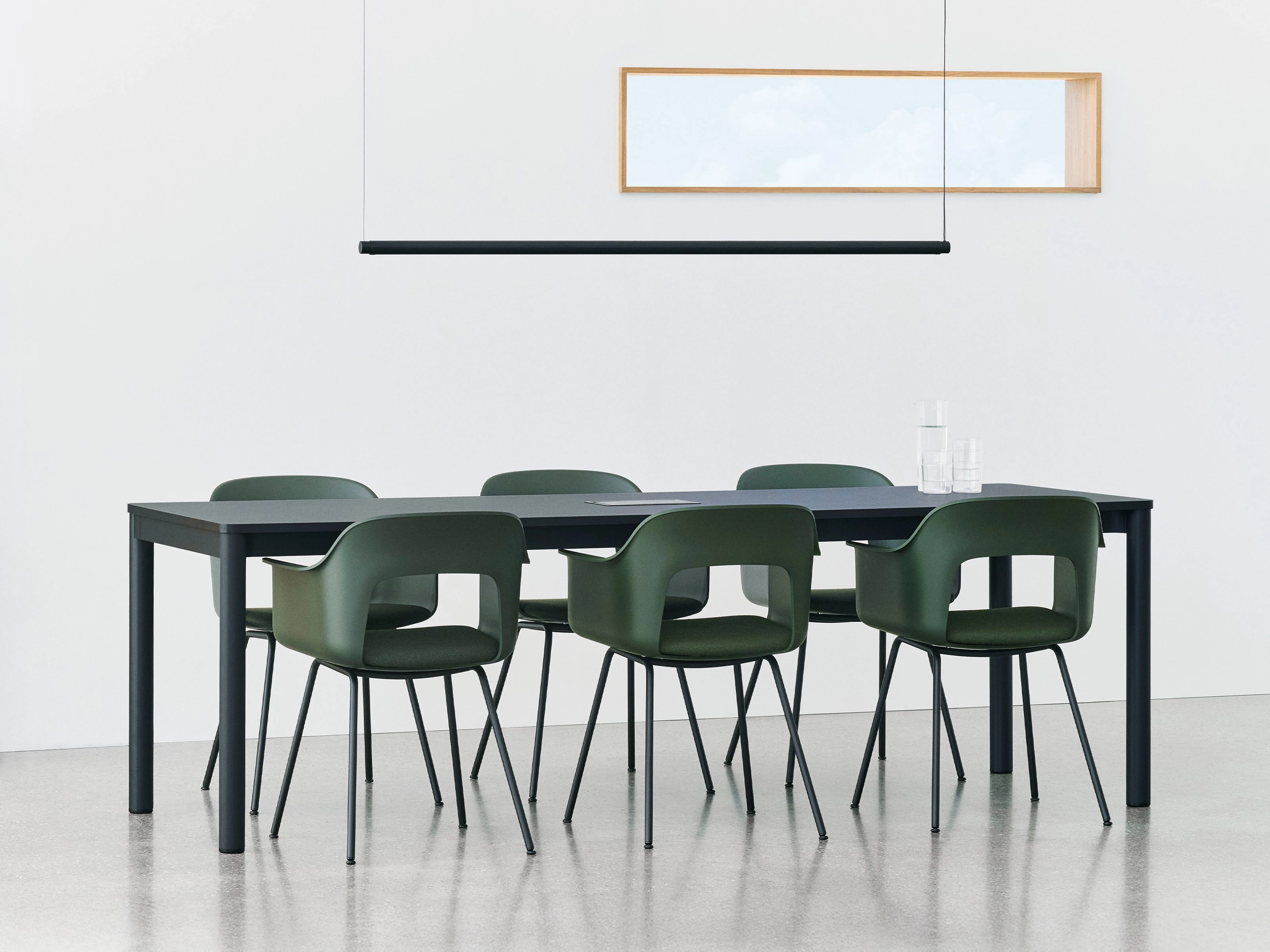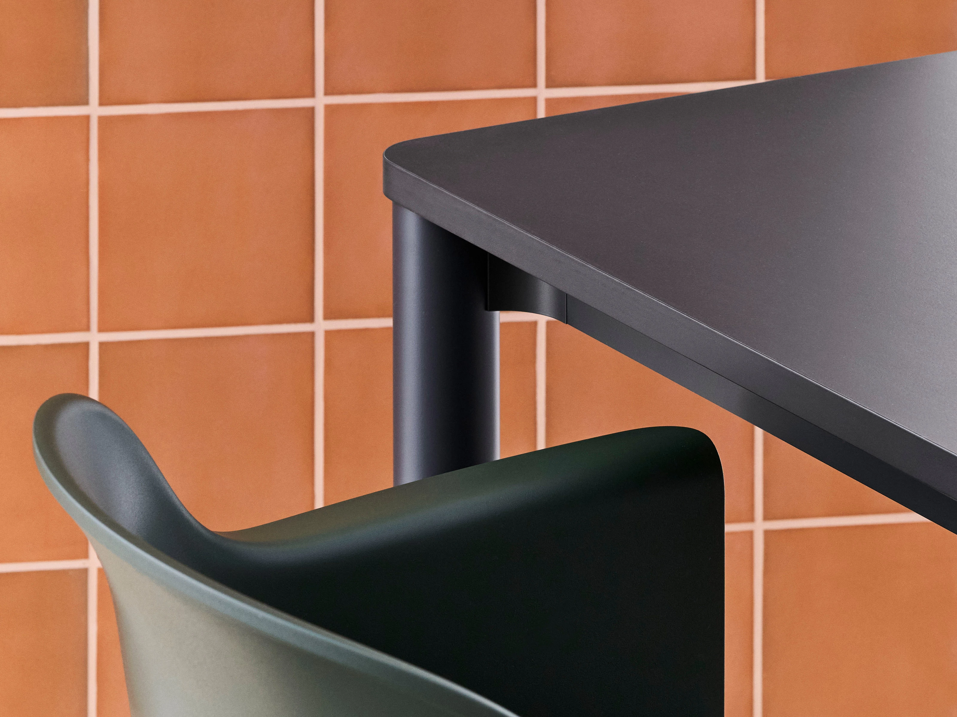 Annex captures John Tree’s commitment to purposeful simplicity - pairing function-forward design with sustainable craftsmanship. Its aluminium frame and tubular legs contain at least 75% recycled post-consumer content, while the laminated or wood veneer tabletop and solid oak legs use FSC™-certified timber.