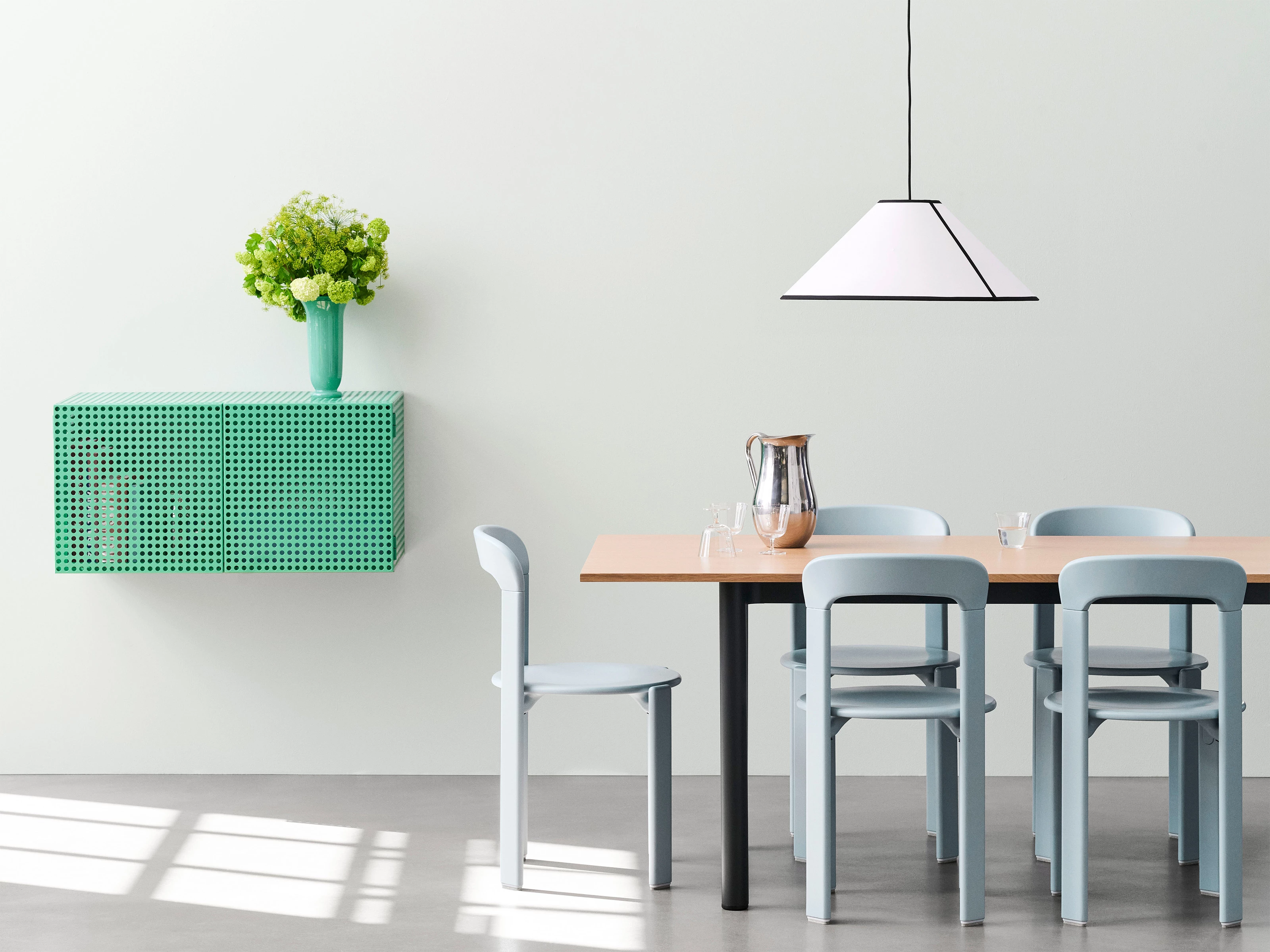 Drawing from the Ava Lamp, originally a spontaneous design made from paper, wire and tape for Kraš’s new Paris apartment in 2021, the Ava Cone Pendant Lamp channels a spirit of intuitive creativity and sustainable thinking. Preserving the quietly bold, graphic appearance of the table lamp, this piece shines with clarity and grace.
