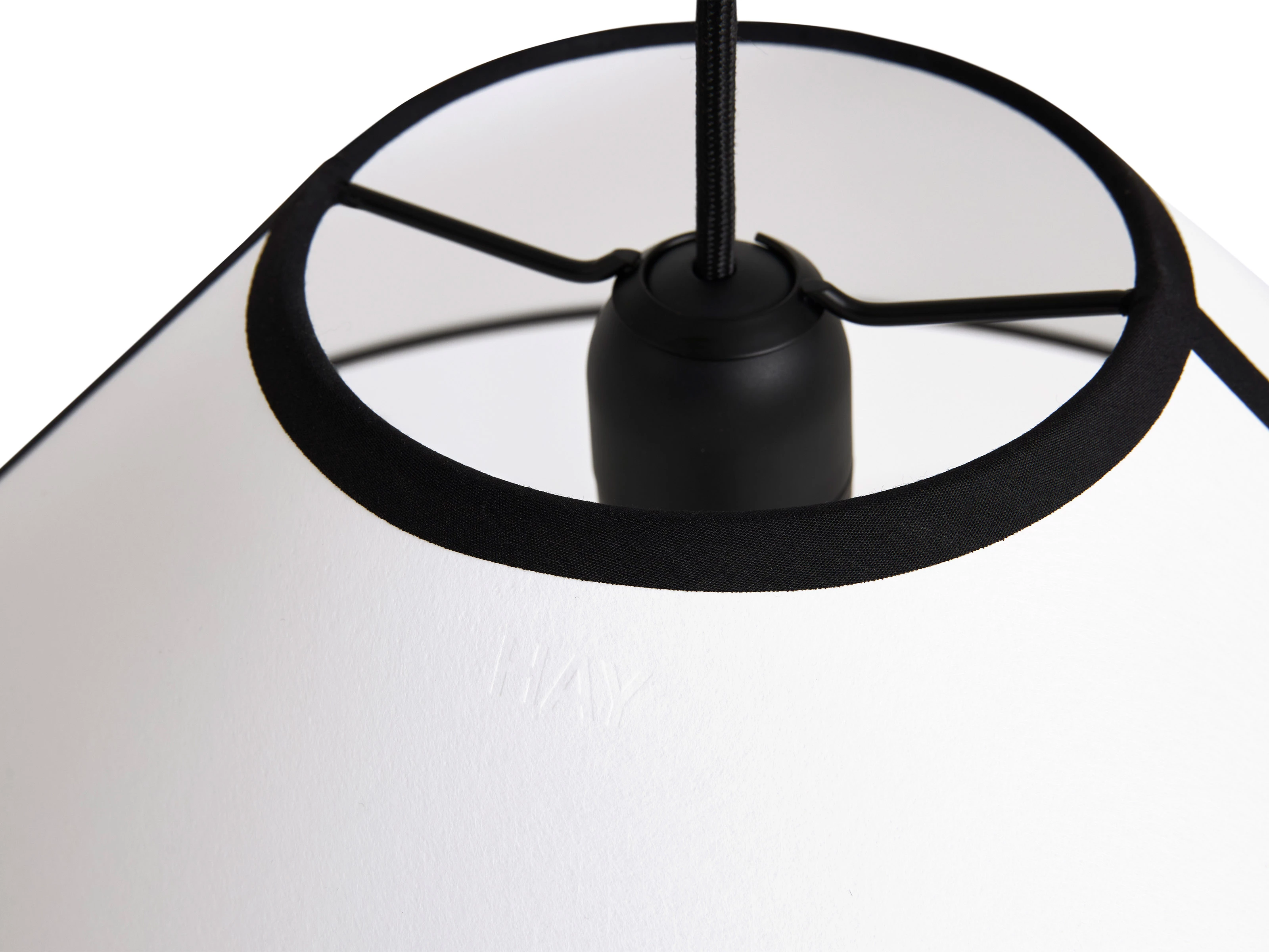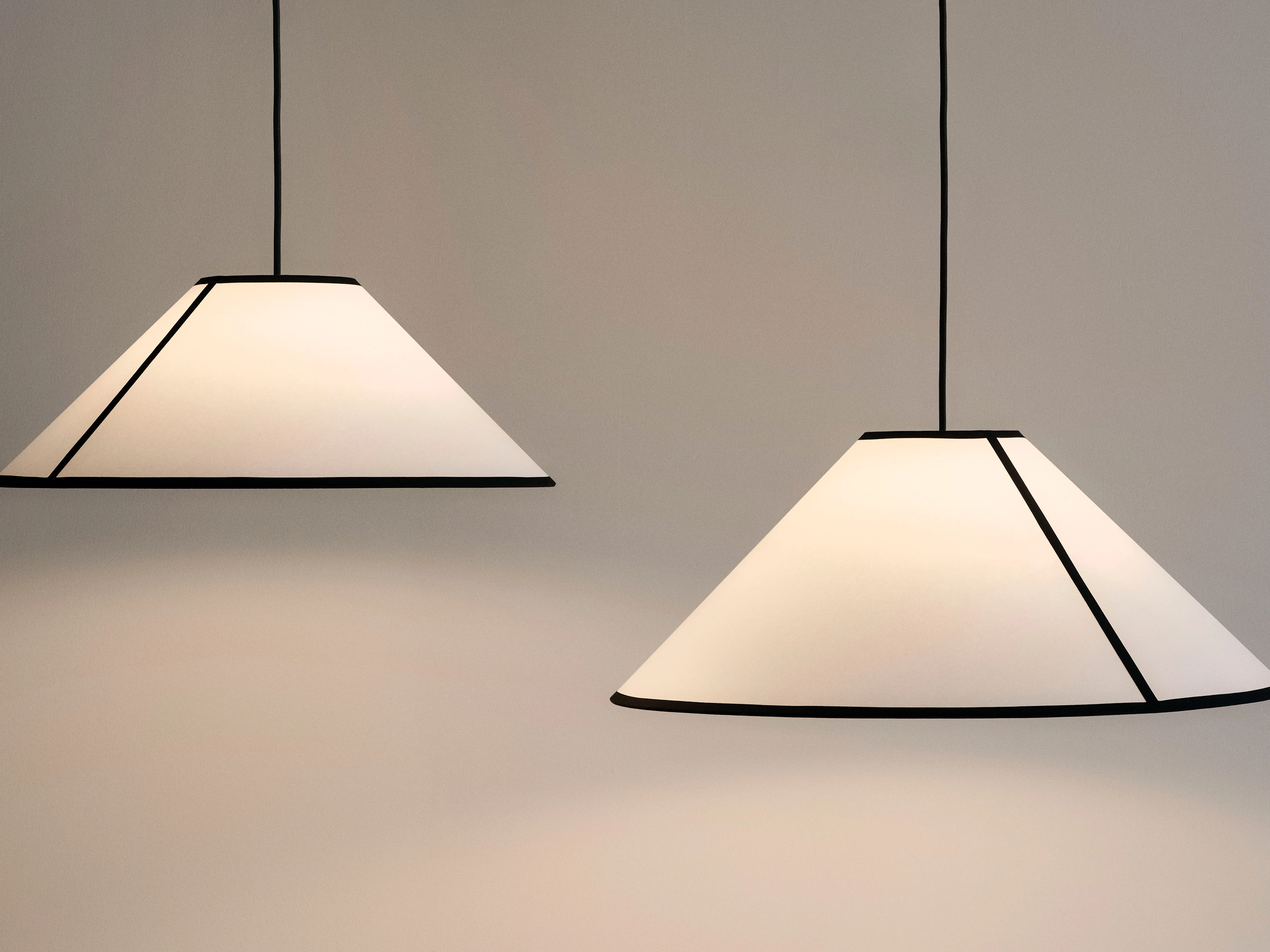 Available in two sizes and ideal for bedrooms, hallways or dining areas, the pendant emits a warm ambient light that uplifts any space. The semi-translucent conical form, fashioned from ECOPET™ and edged in black fabric piping, creates impact through restraint - Ava’s distinctive minimalist style fills the room with intent.