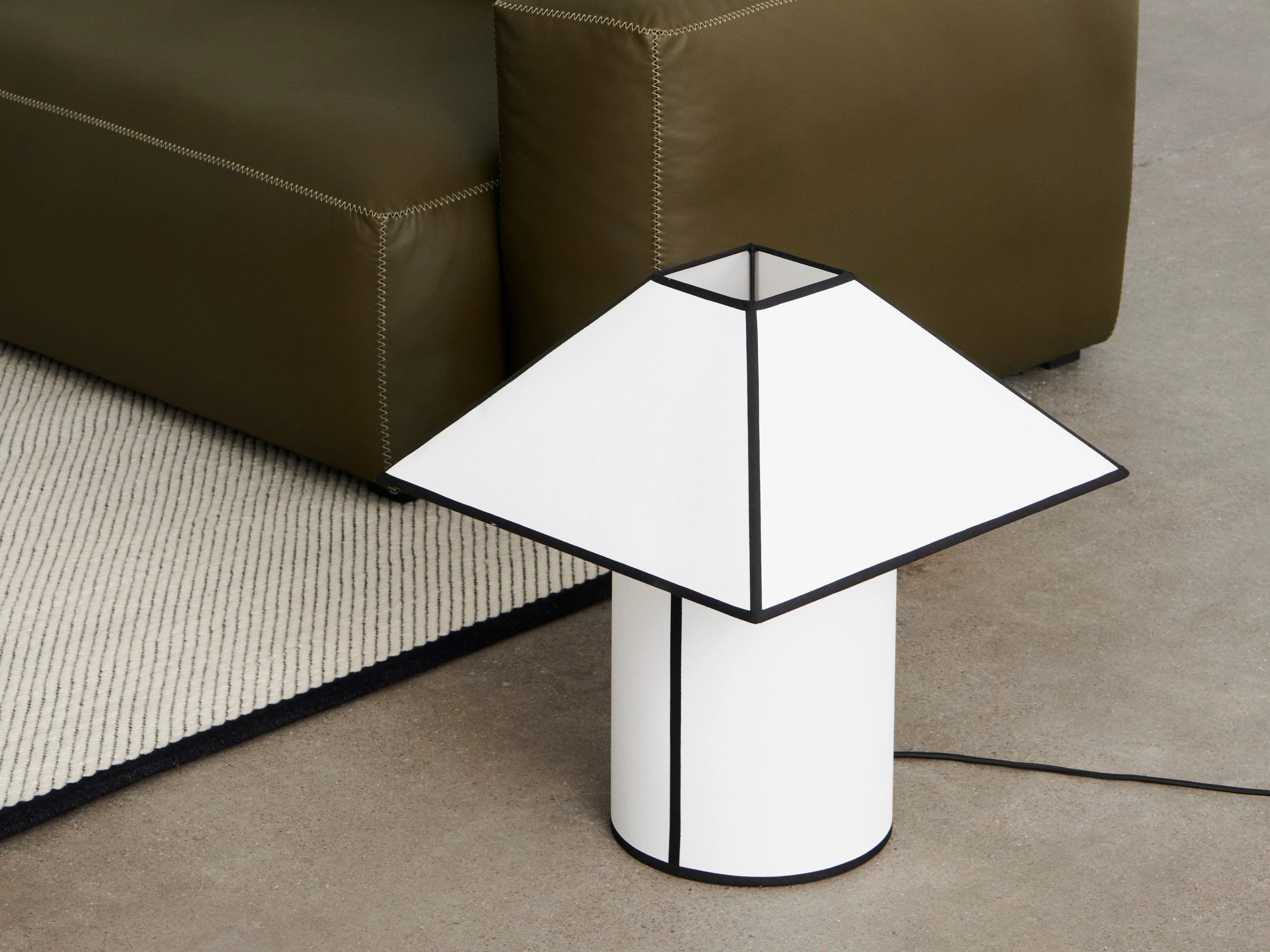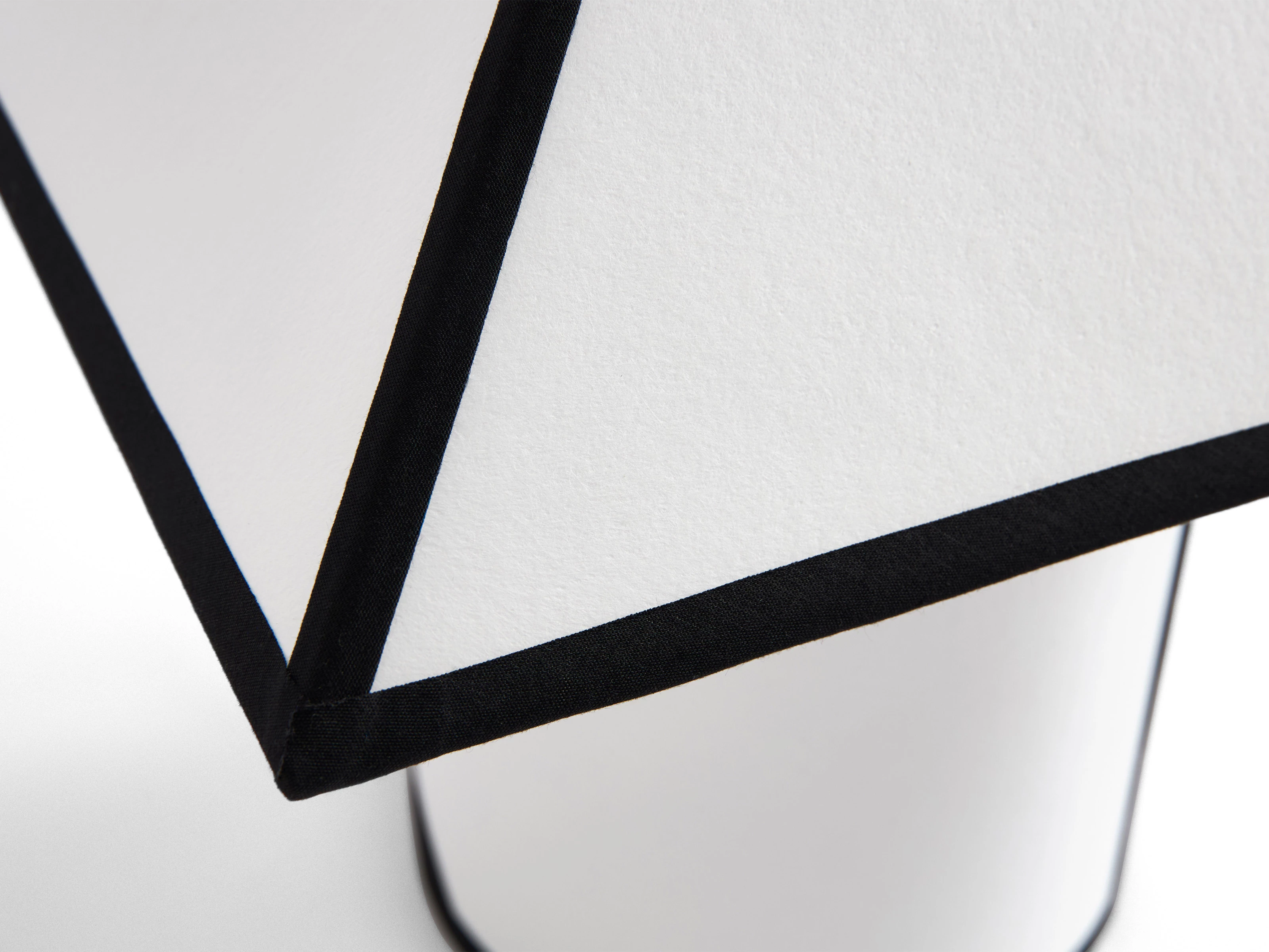 Born from a spontaneous moment of creativity from Kraš after moving to a new Parisienne apartment in 2021, the Ava Pyramid Table Lamp captures the charm of improvisation and sustainability. Crafted from ECOPET™, made from recycled PET plastic, the lamp’s tactile, paper-like quality strikes a contrast with the bold, graphic black trim that outlines its distinctive silhouette.