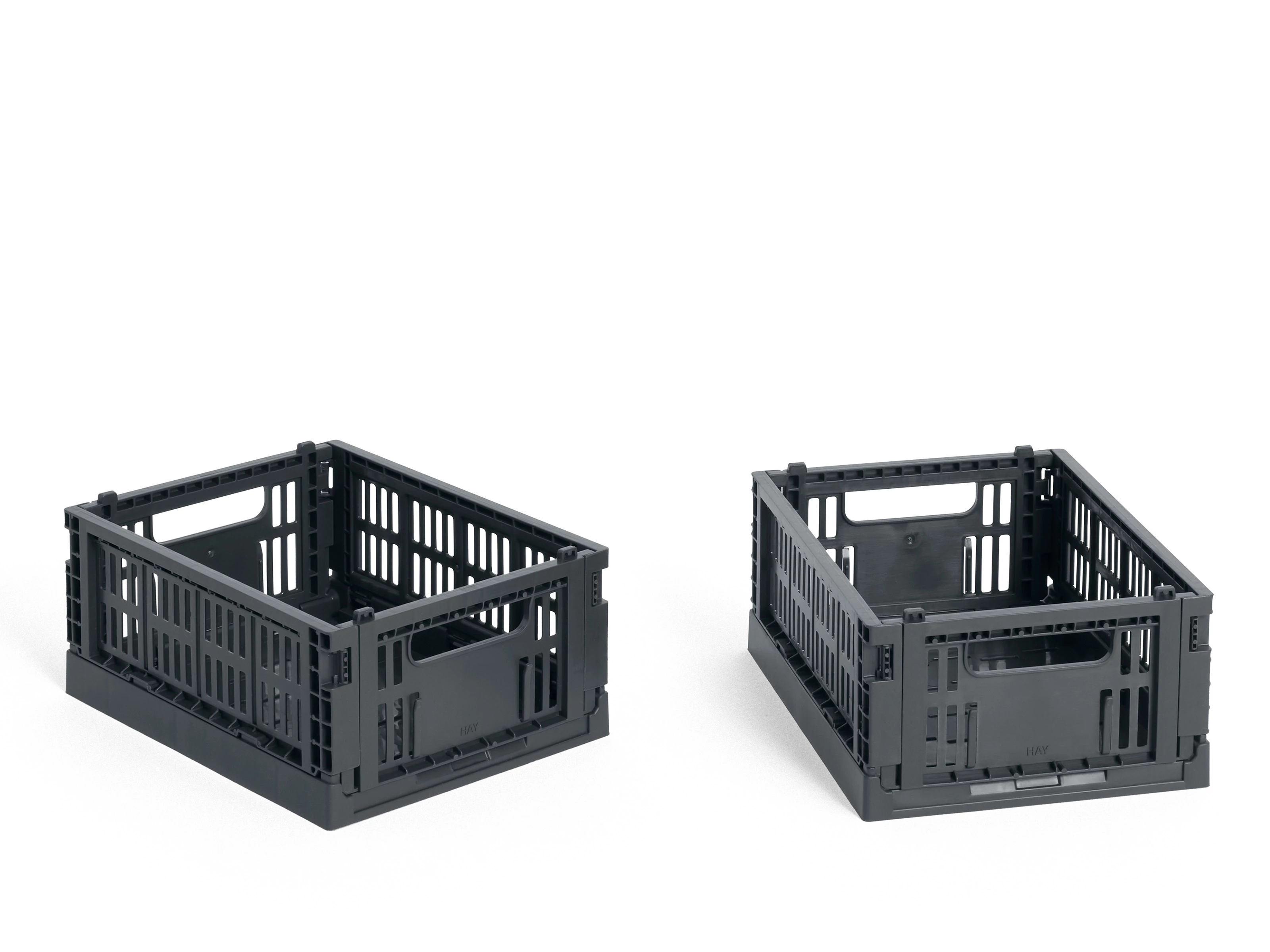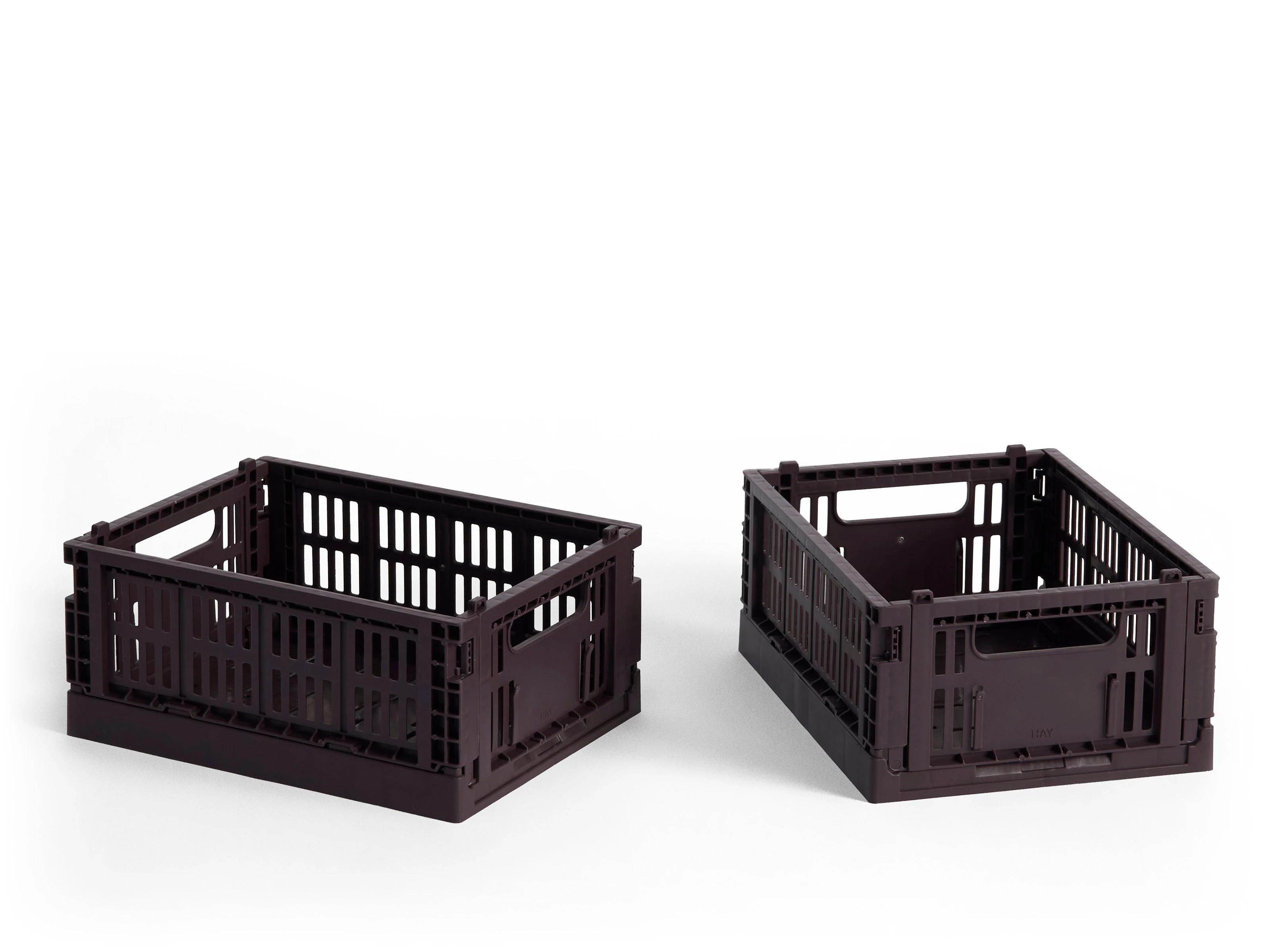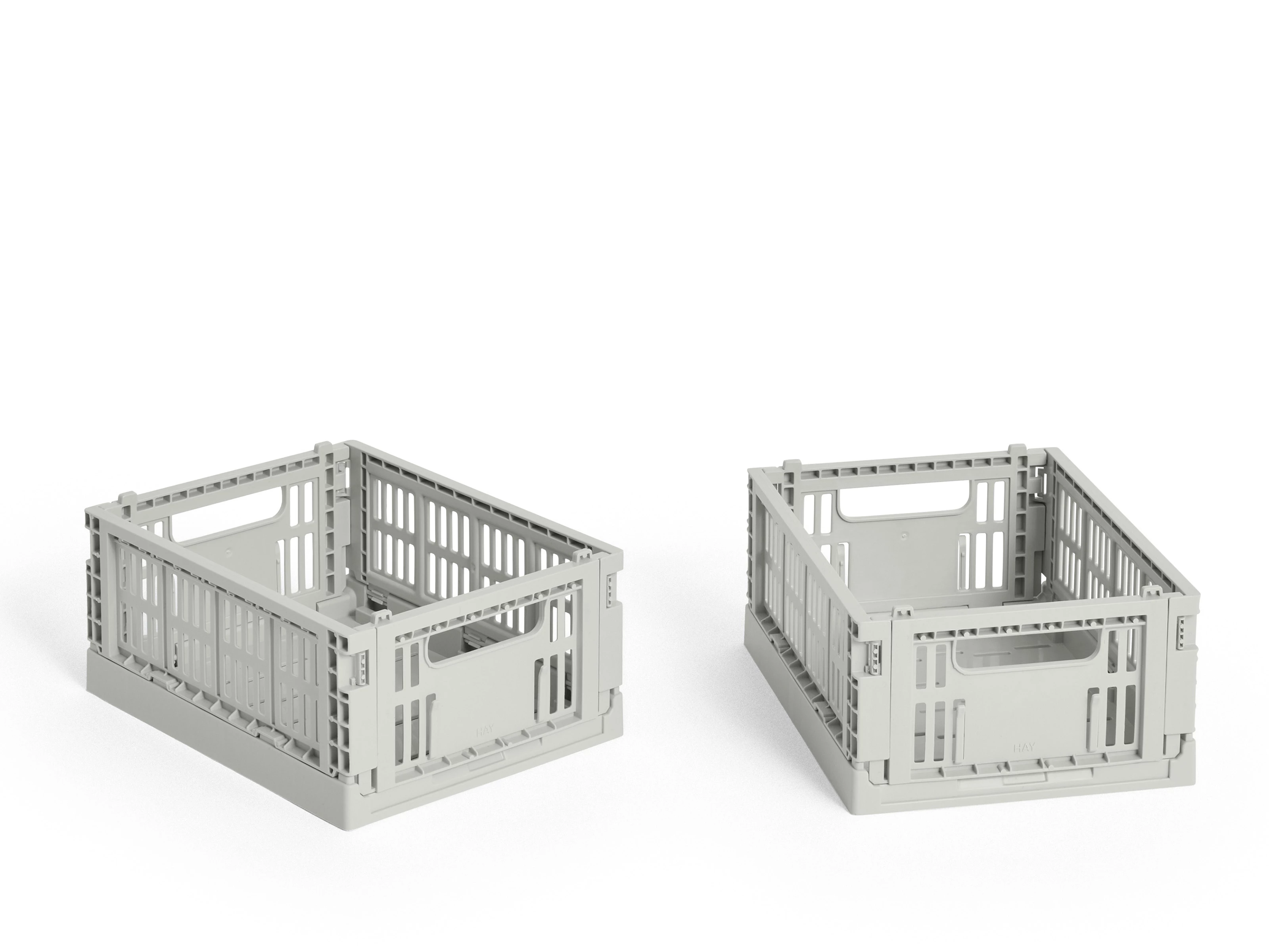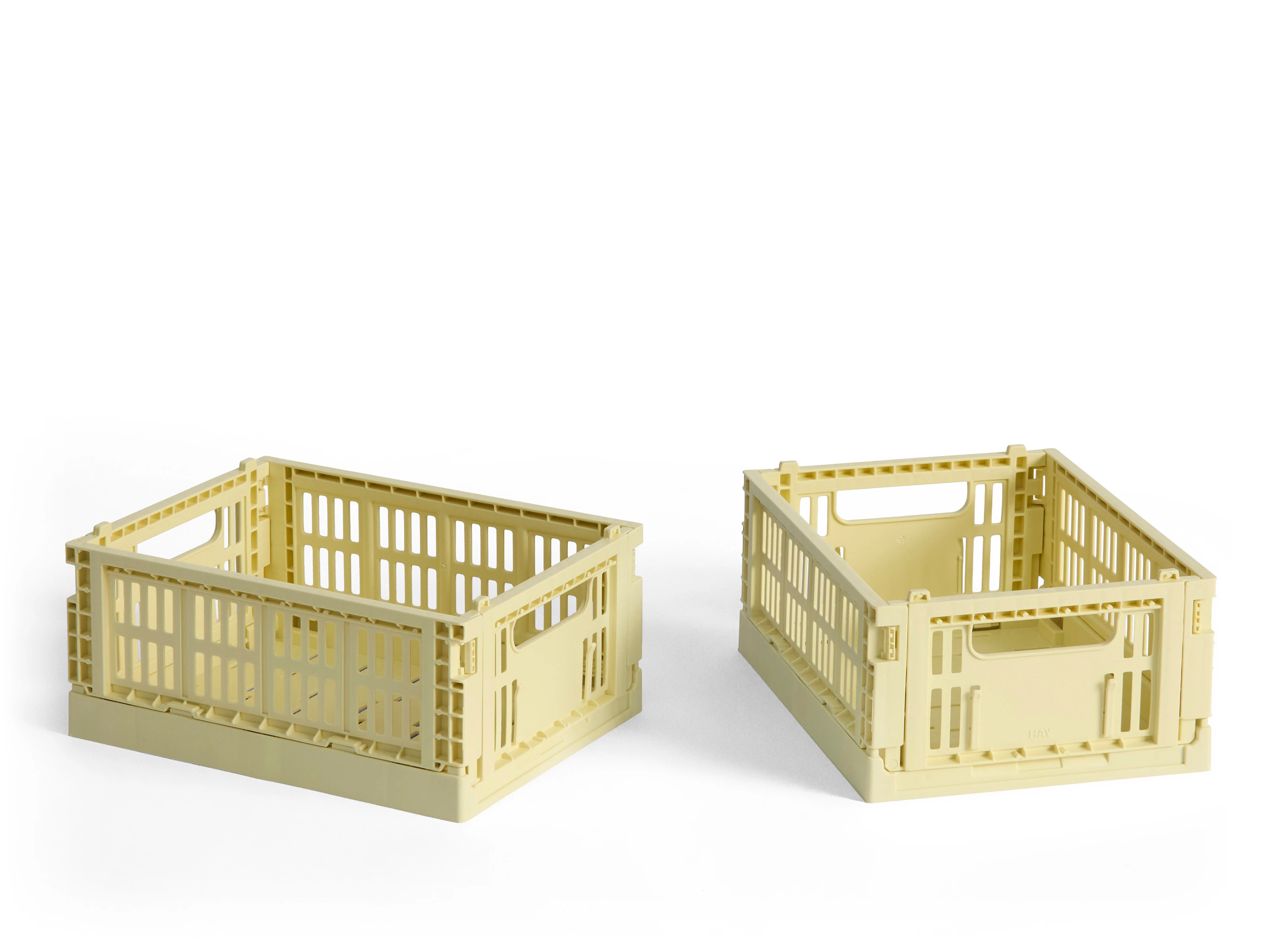 Offered in a spectrum of colours to express your personal style, this set of 2 HAY Colour Crates infuses everyday organisation with energy and intention. Made from 100% recycled post-consumer plastic, their perforated, stackable design blends playful modernity with clever functionality, turning simple storage into a design statement.