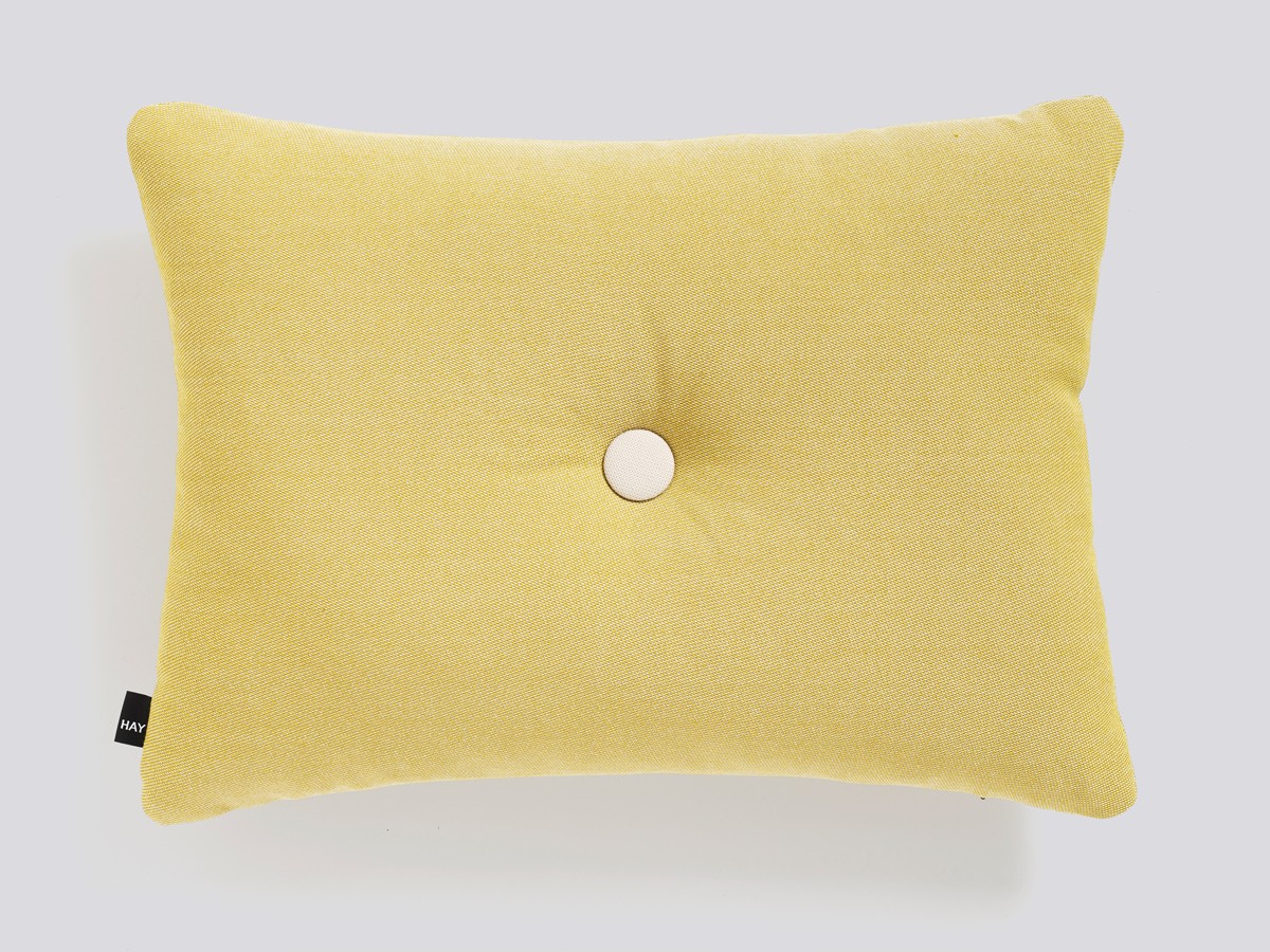 Dot has one fabric covered button in a contrasting colour on its front and one on its back.