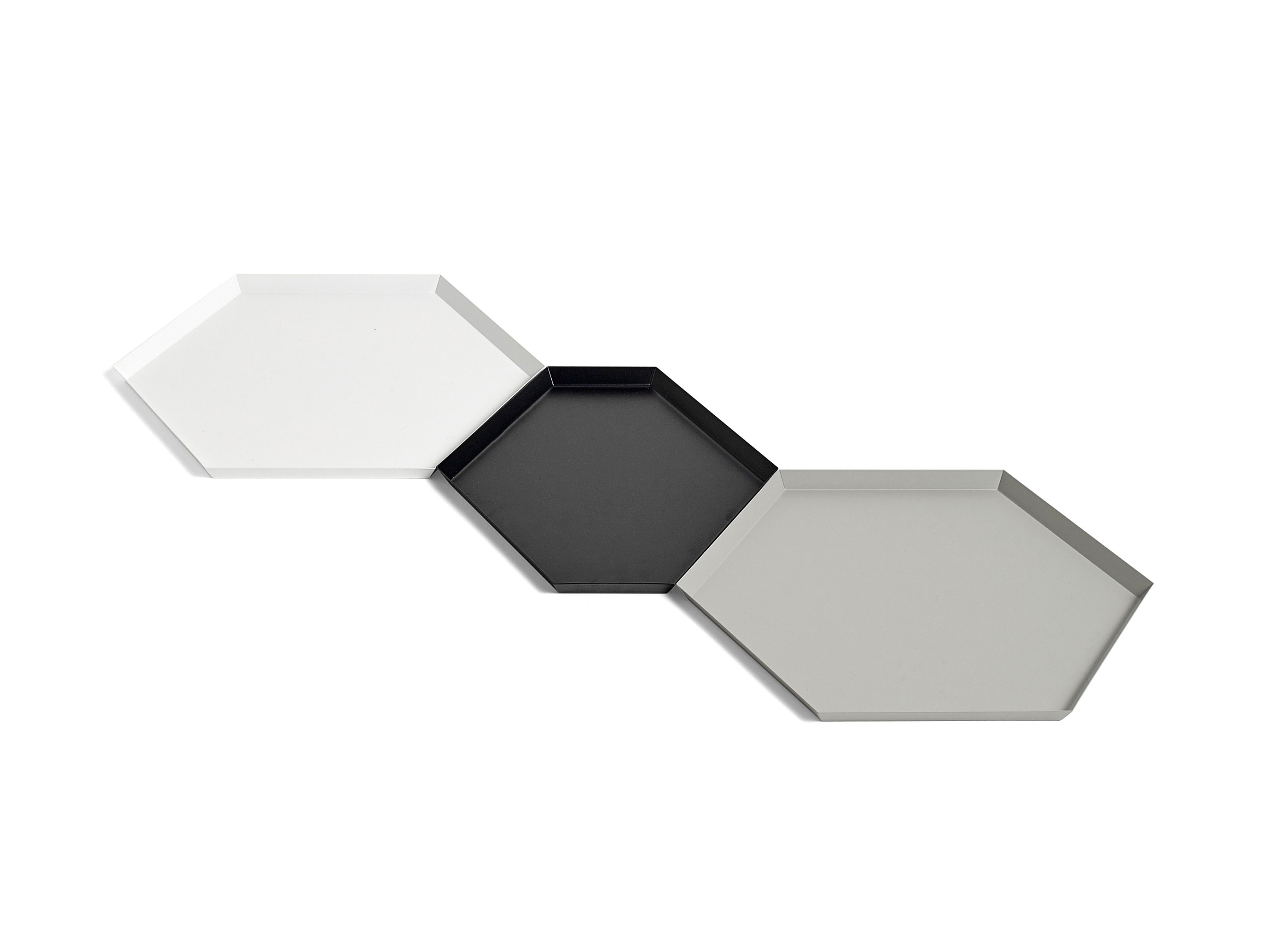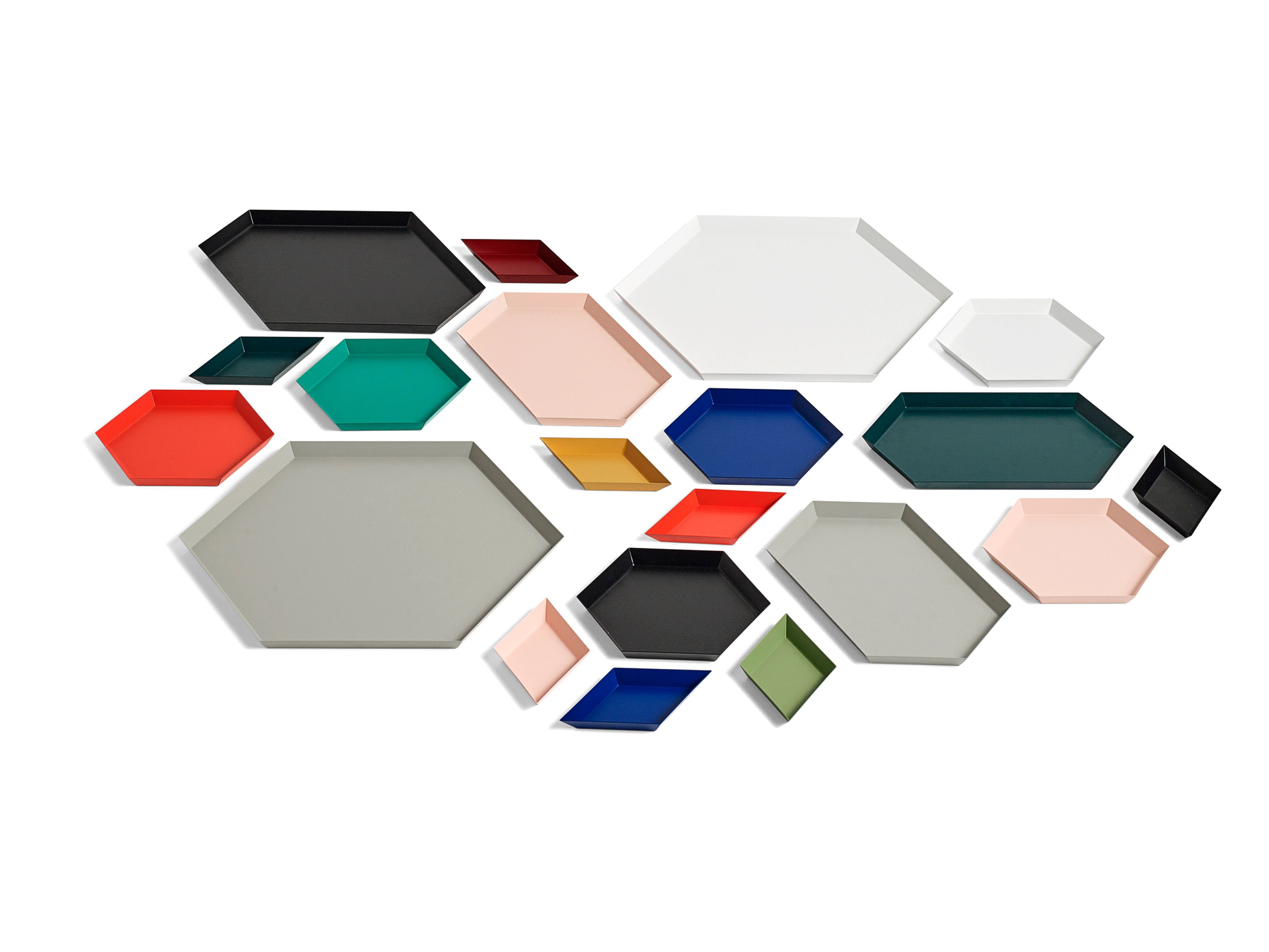 With an array of different colours and geometric shapes, you can build designs and colour configurations to suit you, and select their function. Use for serving coffee and drinks, and collecting small things such as jewellery, receipts, keys and coins. The concept of the HAY Kaleido from Clara von Zweigbergk urges you to play, experiment with new combinations and search for the next arrangement.