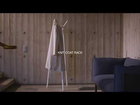Defined by a distinctive, sculptural design, the rack is inspired by an exploration of tactility and the experimental processes of bending and knitting ropes and metal rods. Three powder-lacquered steel pipes are connected in a three-dimensional way, securely ‘knitted’ together to support each other and create the strength of the body.