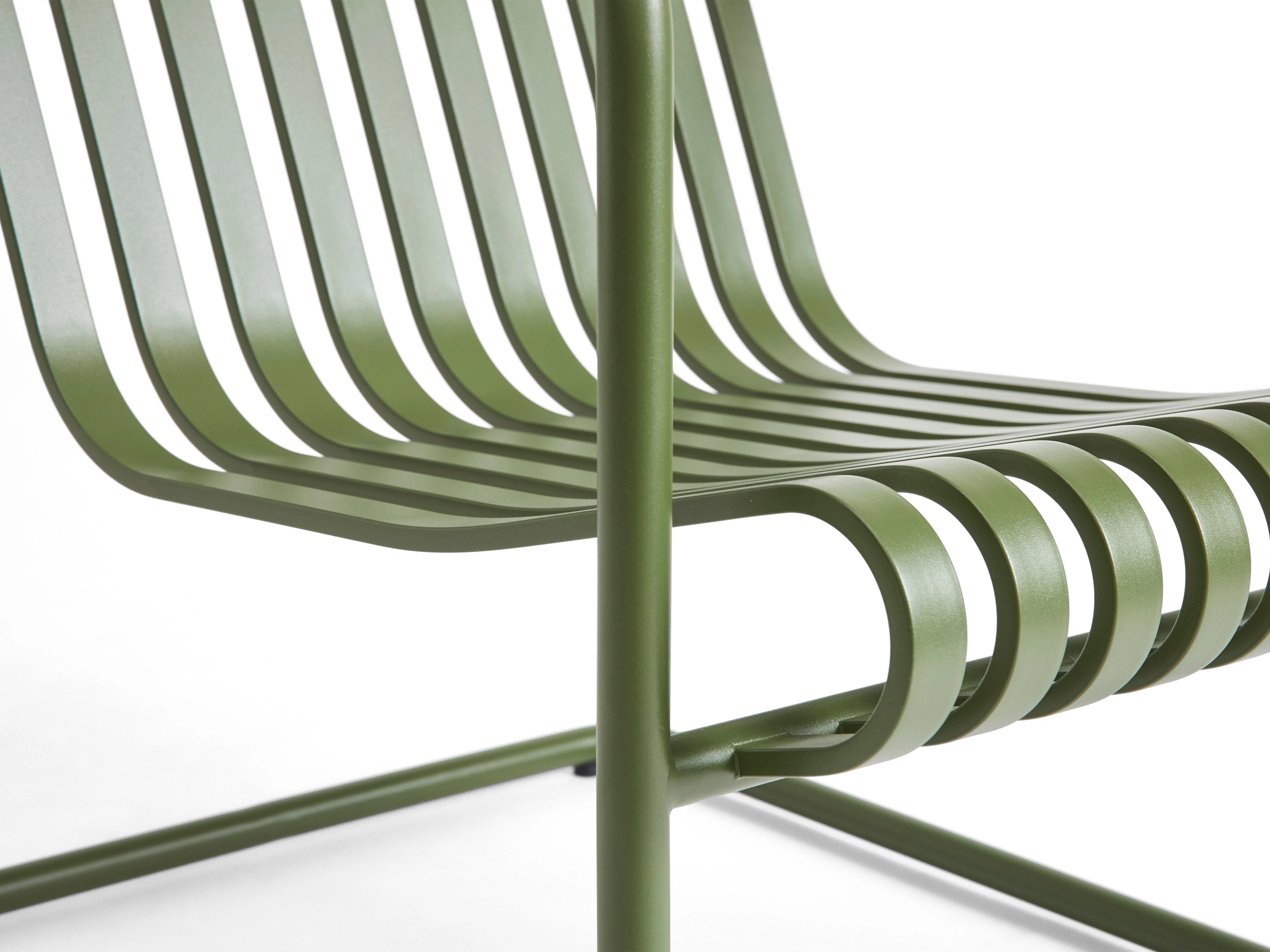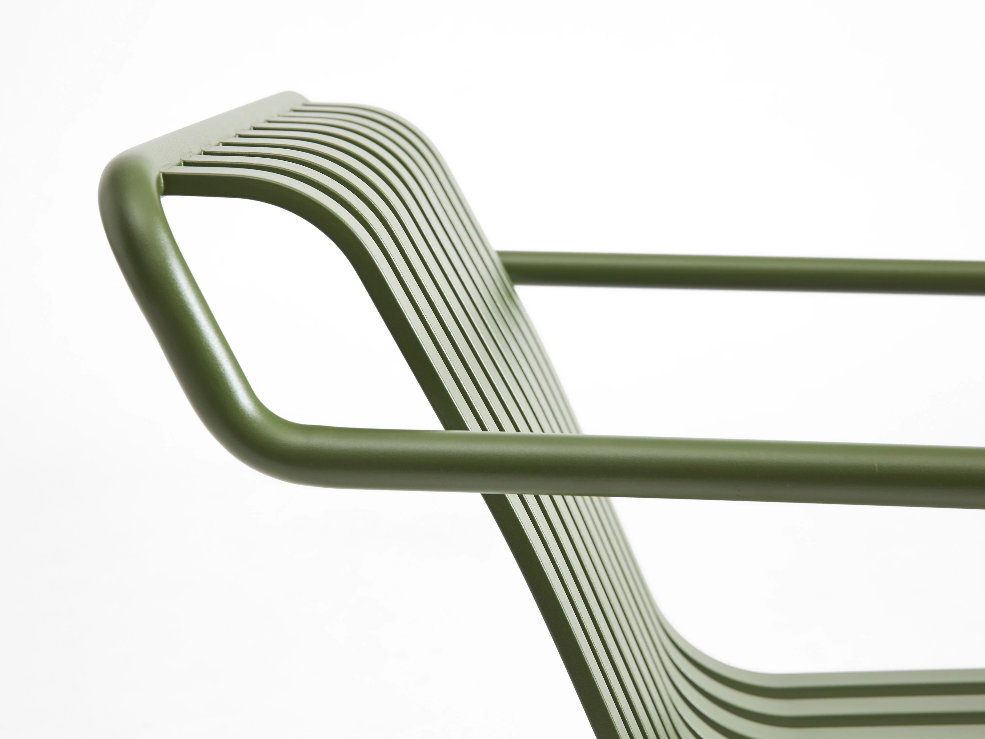 Perfect for terraces, gardens or urban patios, the chair combines effortless comfort with subtle spring-like support. Available in familiar colourways, it complements other pieces in the iconic Palissade range, creating versatile arrangements that bring tactility and refined presence to social gatherings, leisurely dining and quiet moments outdoors.
