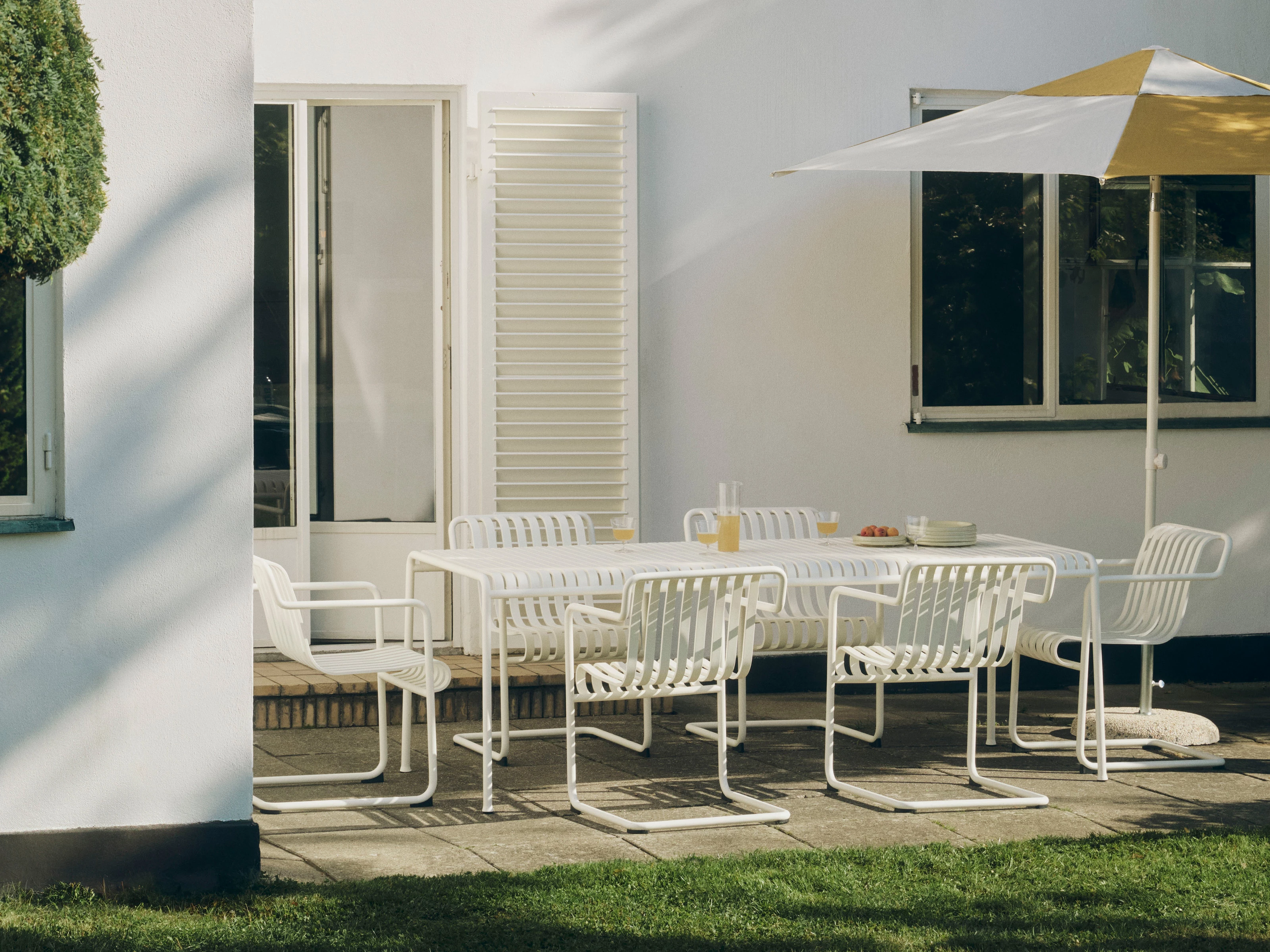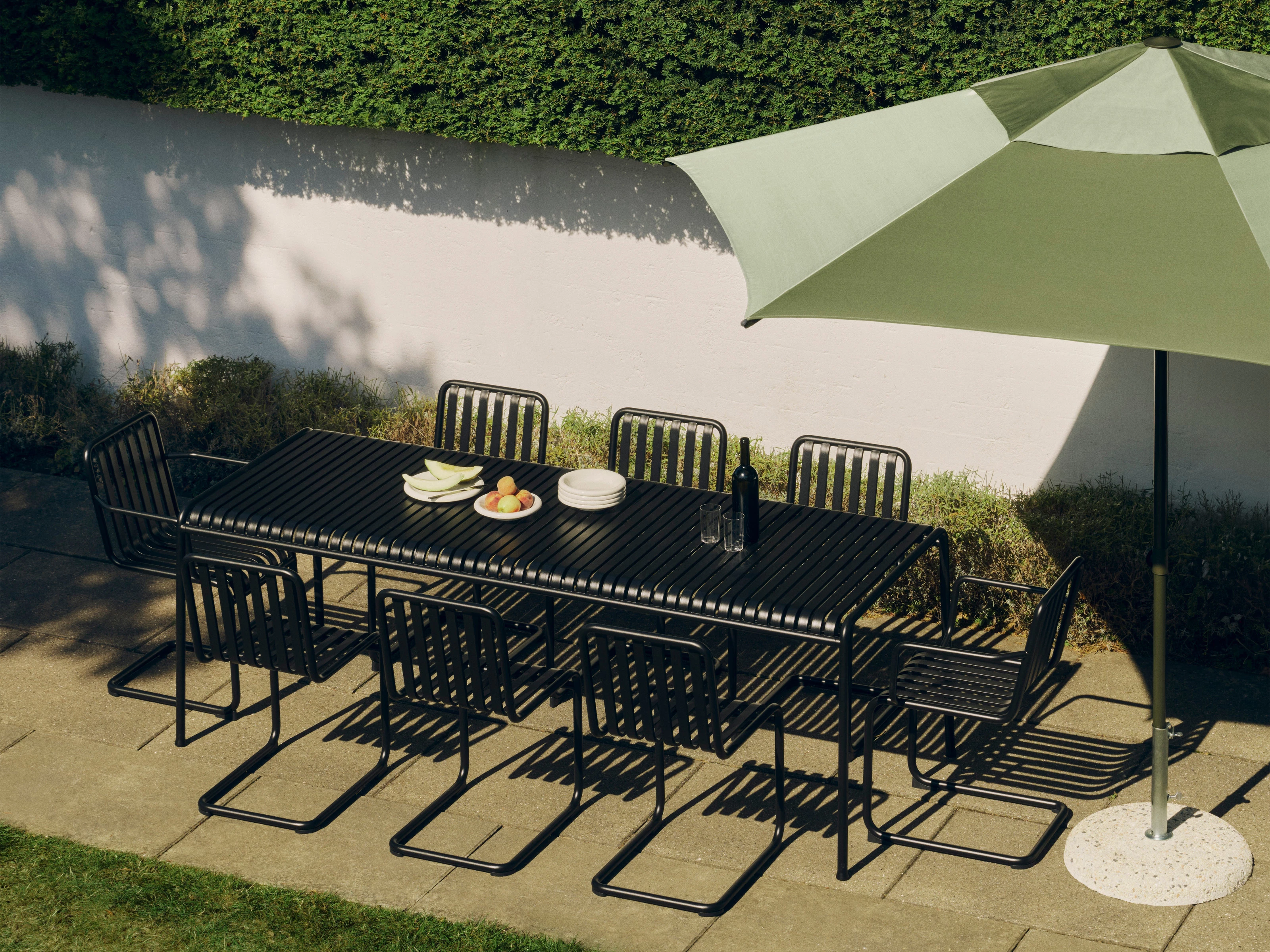Built in solid, powder-coated steel, it’s made to weather time with confidence, gaining character as seasons pass. Use it solo for everyday dining or set up multiple tables for larger gatherings. Wherever it’s placed, the Palissade Dining Table creates an assured, effortless social setting that feels enduring, adaptable and naturally refined.