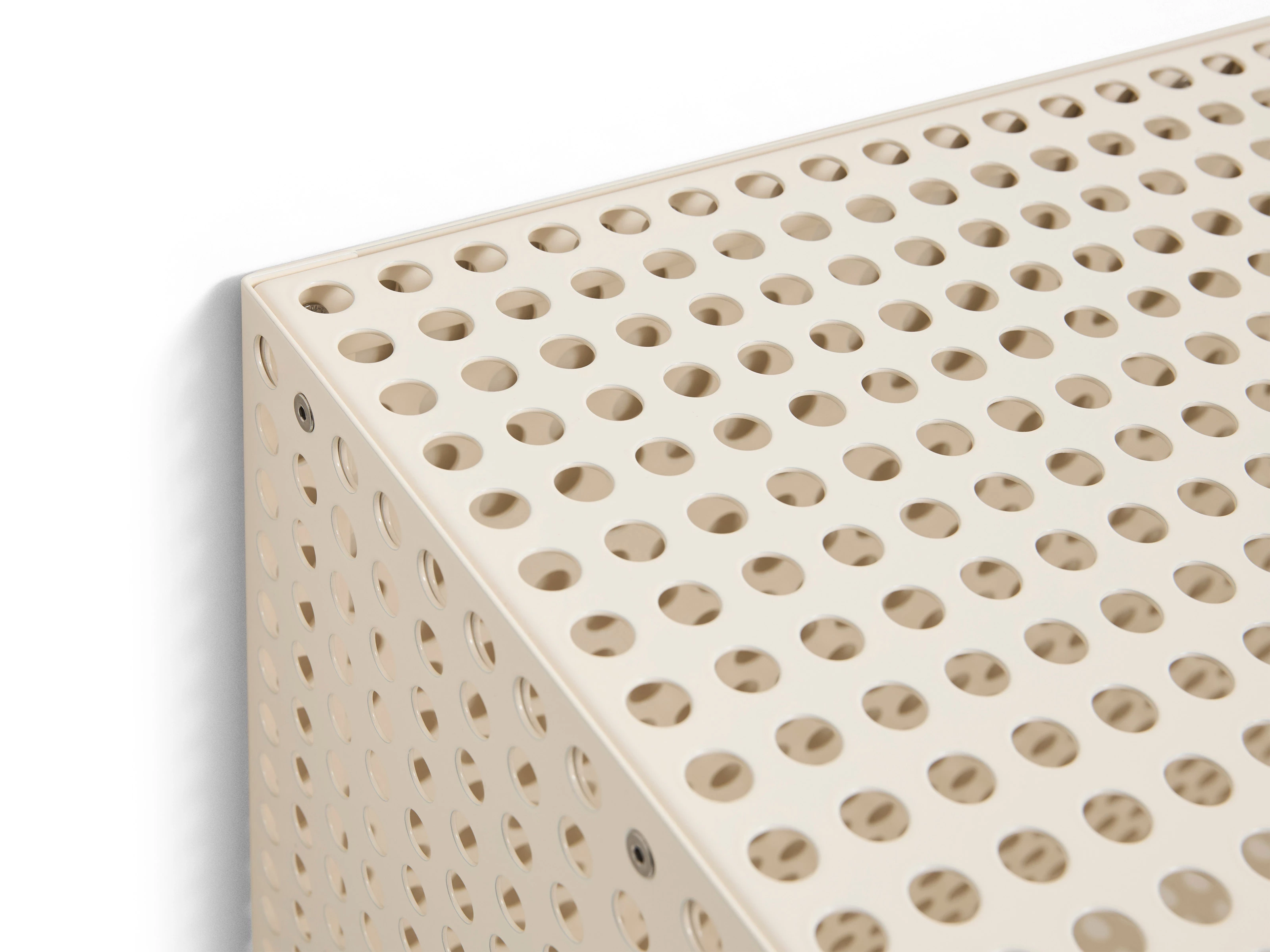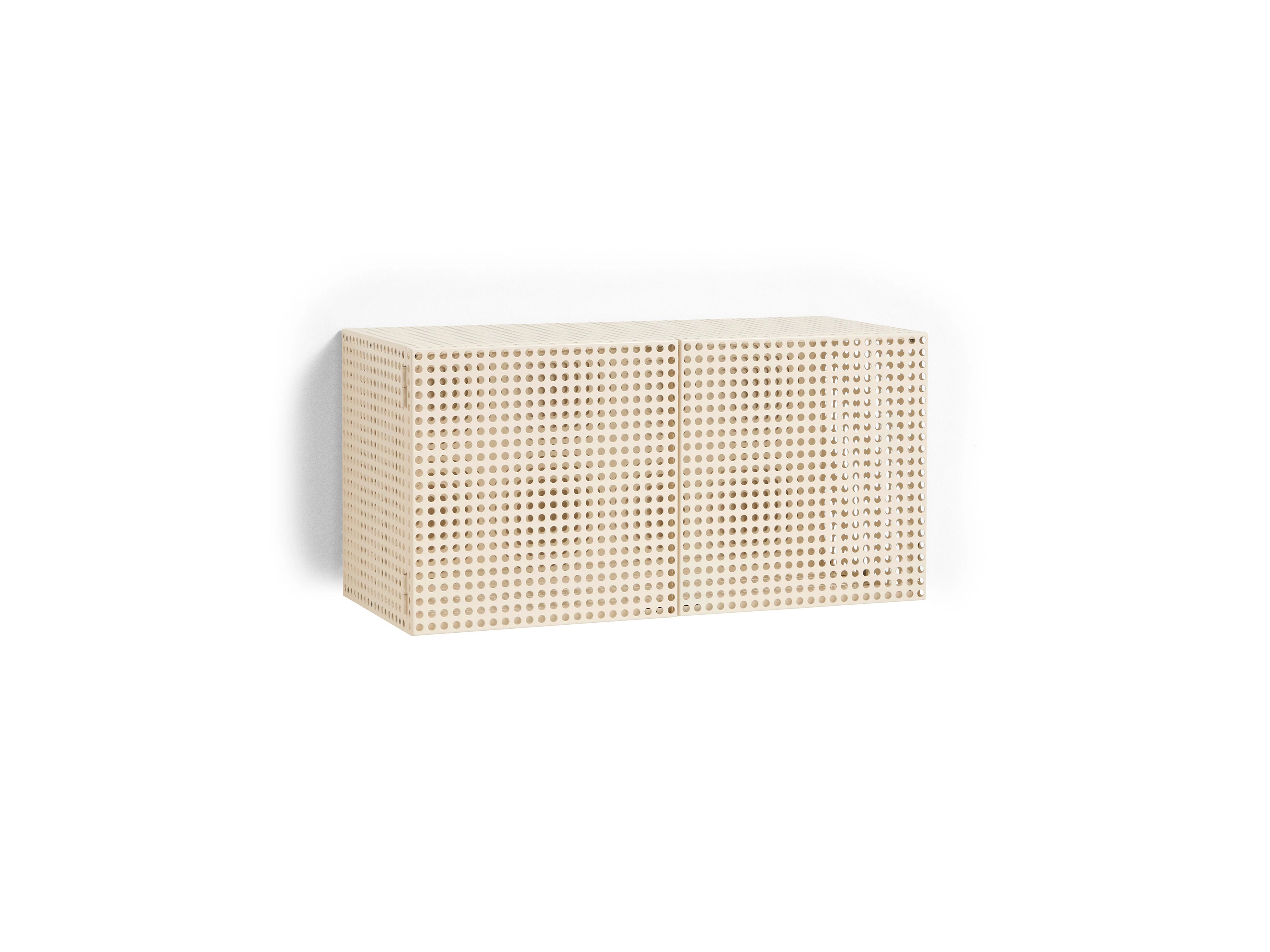 Perfect for modern living spaces, studios or shared environments, this wall-mounted cabinet serves as a versatile storage solution with industrial charm and personality. Its hole-punched panels subtly reveal the contents within, while doors with magnetic closures offer easy access to your everyday items.