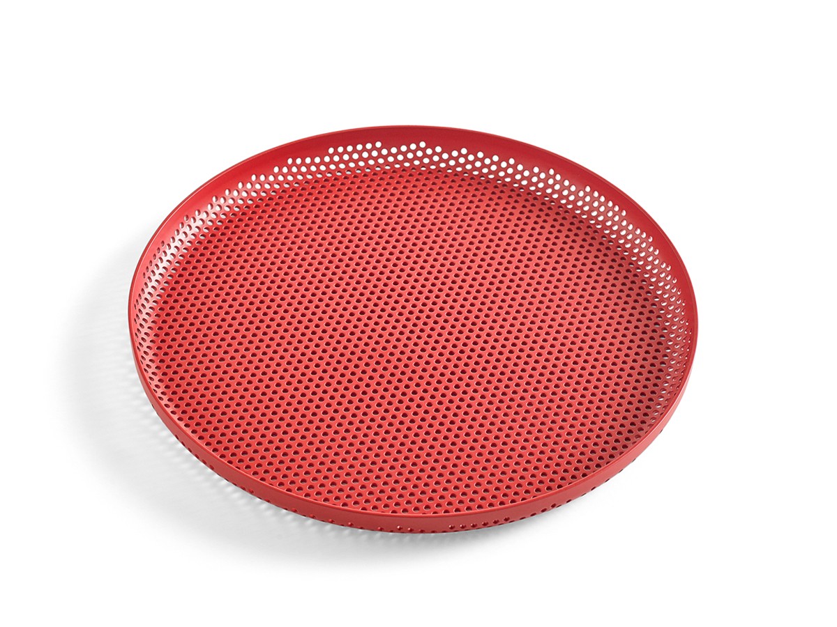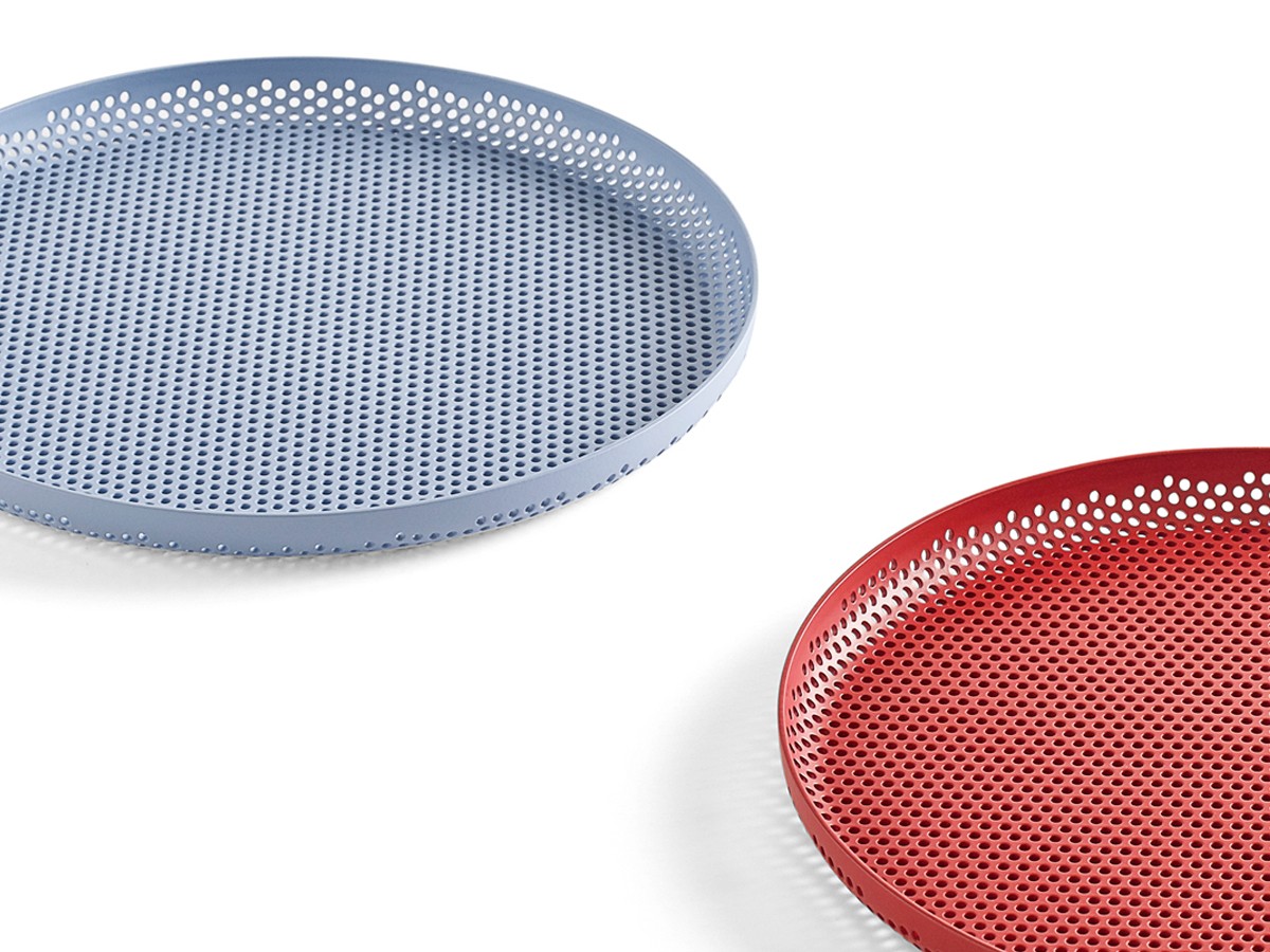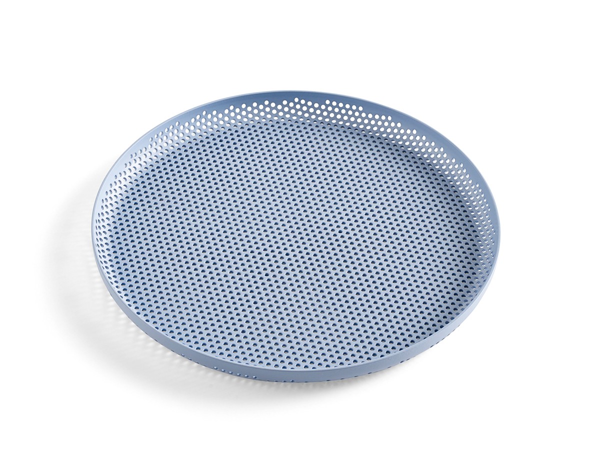 The punched metal design is eye-catching and durable, defined by hundreds of tiny circular holes that create a structured and simplistic effect. Whether used as a decorative accessory on a coffee table, or for storing small accessories such as keys and stationary, the tray is a truly adaptable piece; perfect on its own or in a set with sizes Small and Large.