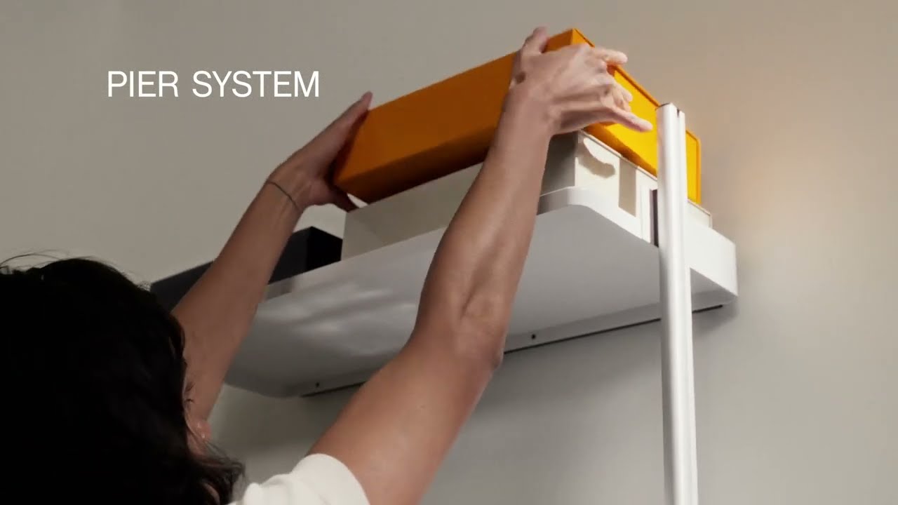A multipurpose design, the Pier system adapts effortlessly to modern lifestyle requirements, with this specific design ideal for remote working in even the most compact spaces. Easy to assemble, reconfigure and recycle, the Pier System is designed to accommodate all living styles and adapt to changing environments, providing essential storage, organisation and display space for a multitude of situations. The flat-pack design and lightweight aluminium construction use the minimum number of components required to create a complete storage system whilst incorporating elements specific to work, wardrobe or everyday modern living. There are several Pier Systems available, ranging from styles for the living room and bedroom to the entrance hall and office.