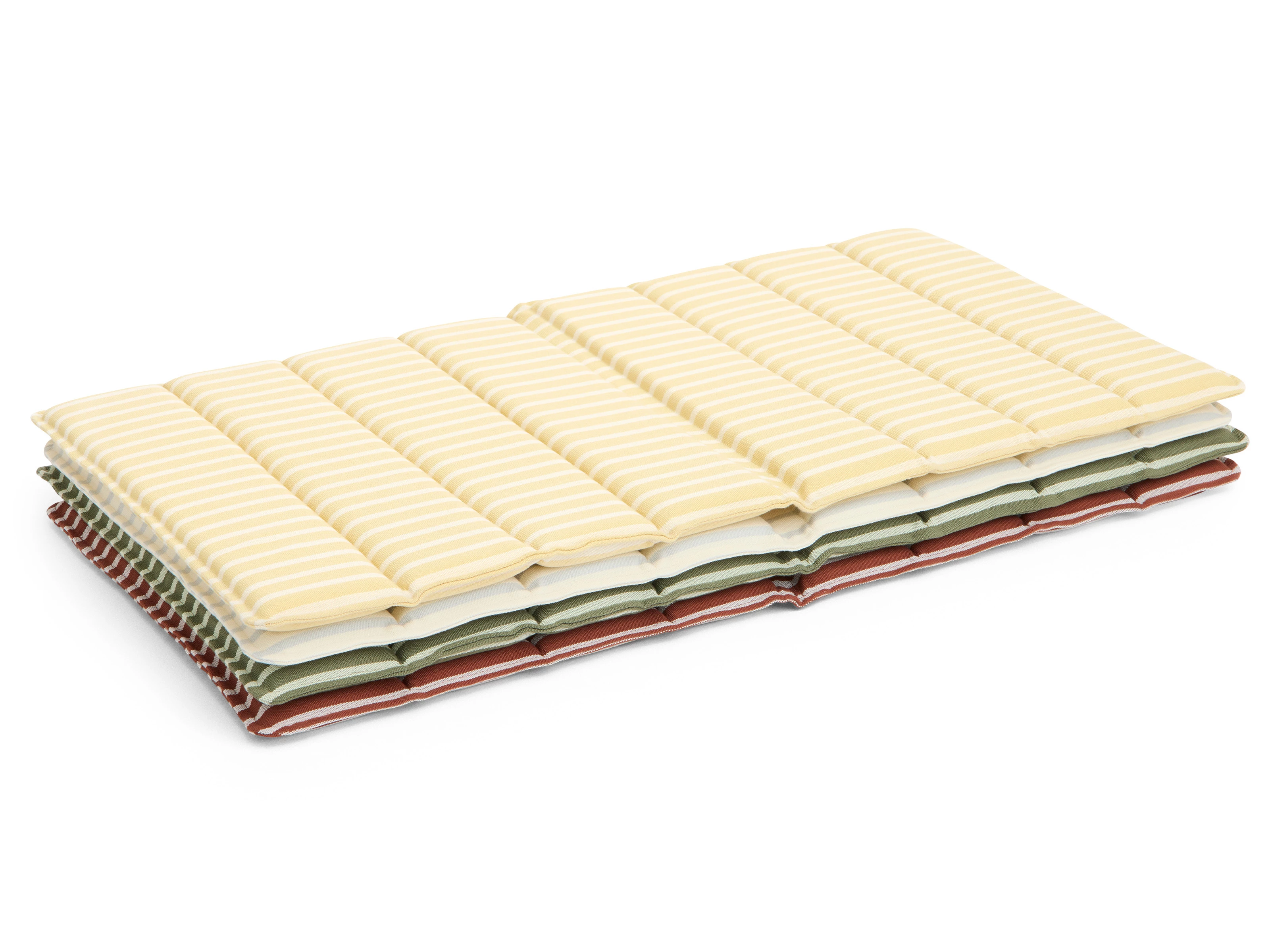 Whether paired with HAY outdoor seating or other garden chairs, they transform the mood instantly - introducing softness, warmth and a more relaxed elegance. Offered in a range of bold stripe colourways, the quilted finish lends structure, depth and contemporary style to alfresco settings.