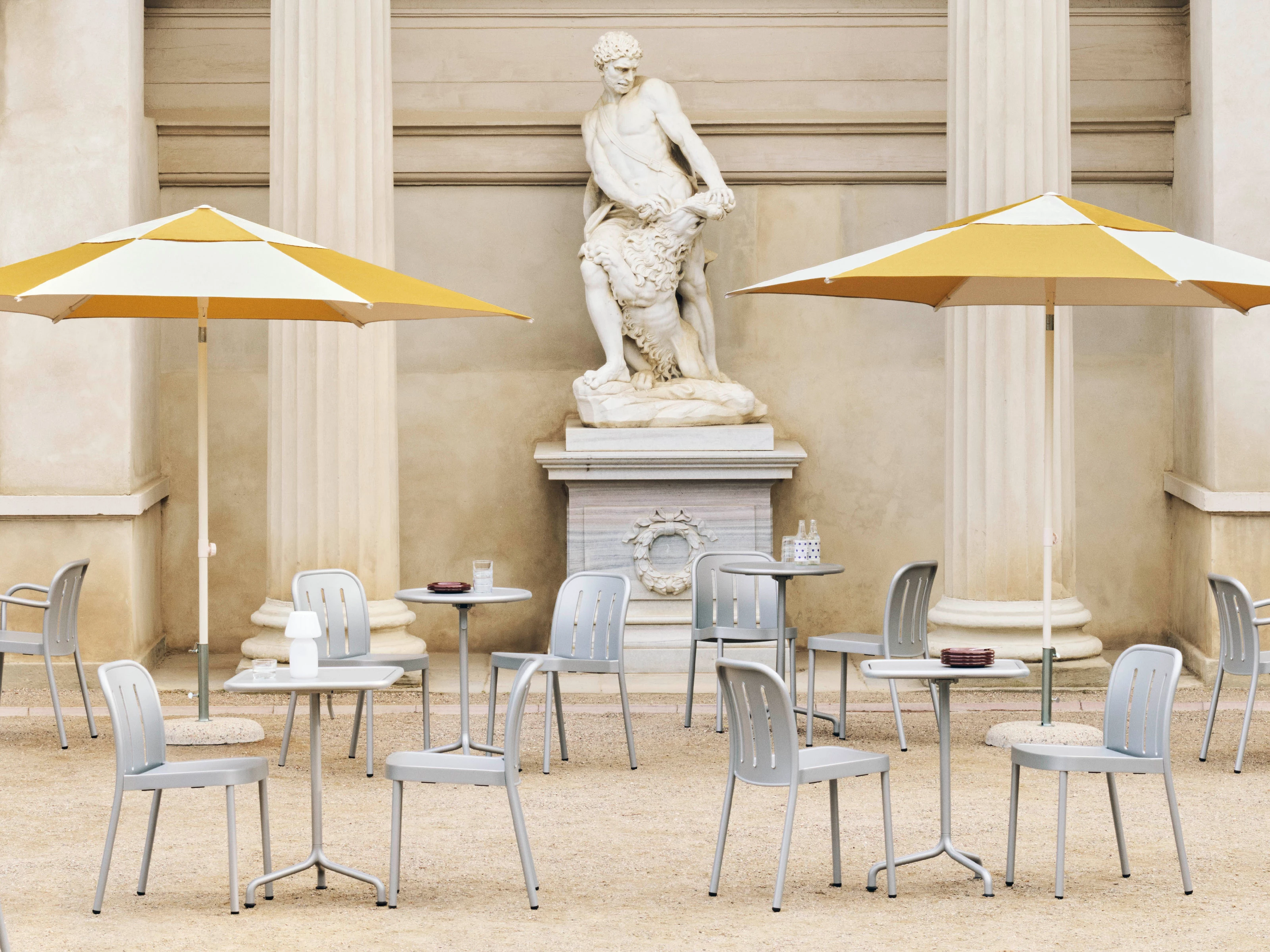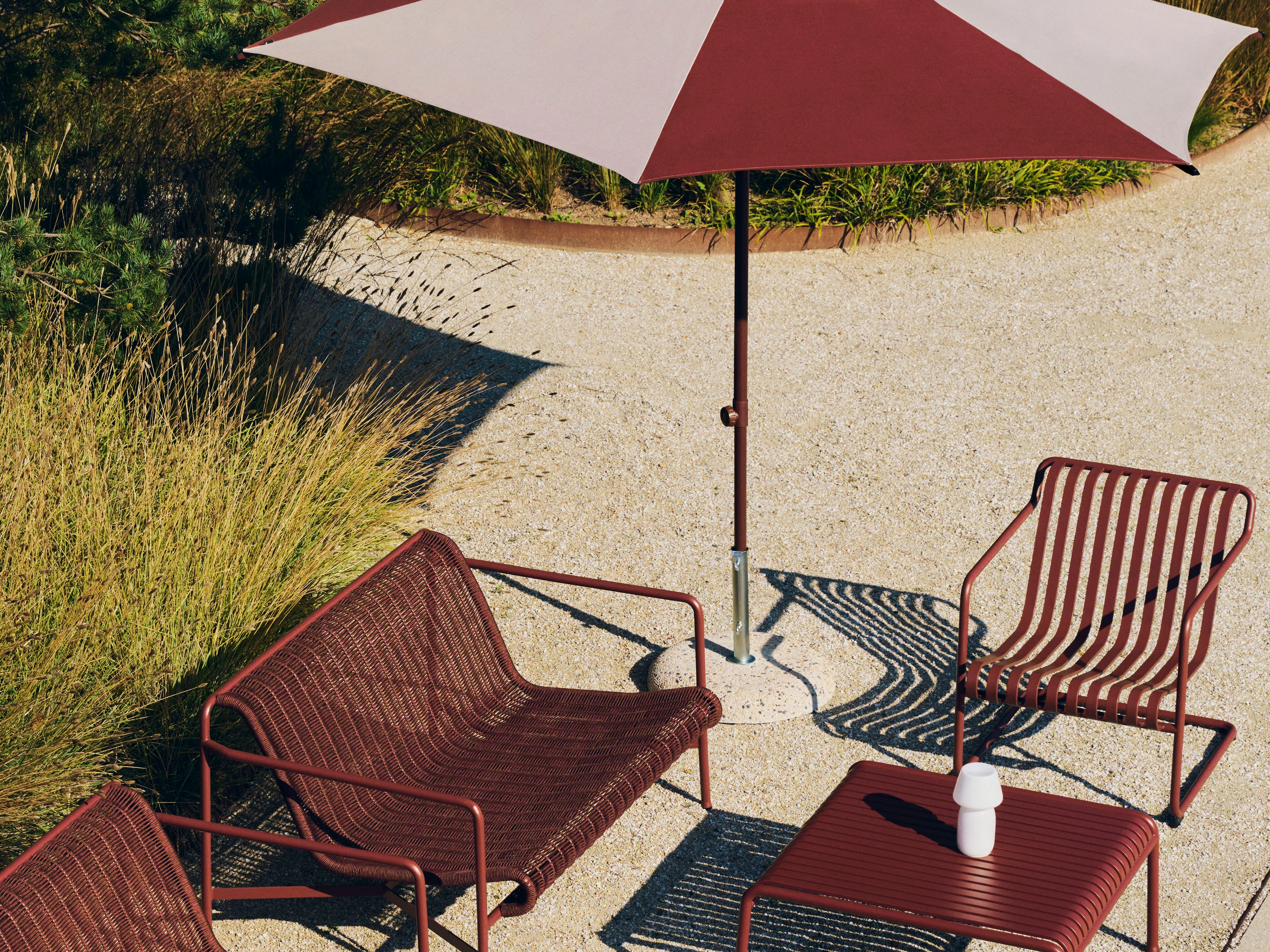 Built for durability in a range of outdoor environments, the Terrazza Parasol Base pairs raw materiality with purposeful design. Designed to fit the HAY Terrazza Parasol, the solid concrete foundation and galvanised iron stem create a quietly robust presence, grounding outdoor spaces with confidence.
