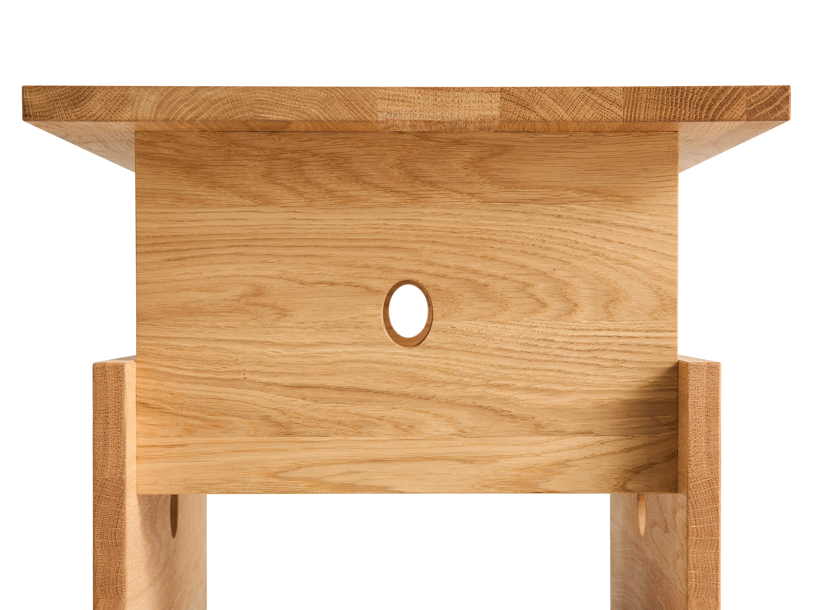Perfectly sized for compact living, the table works effortlessly as a bedside piece, an elegant coffee table or a standalone sculptural accent. The oiled solid oak finish invites warmth into any room, while the black oak variant brings a sense of sleek sophistication and modern allure.