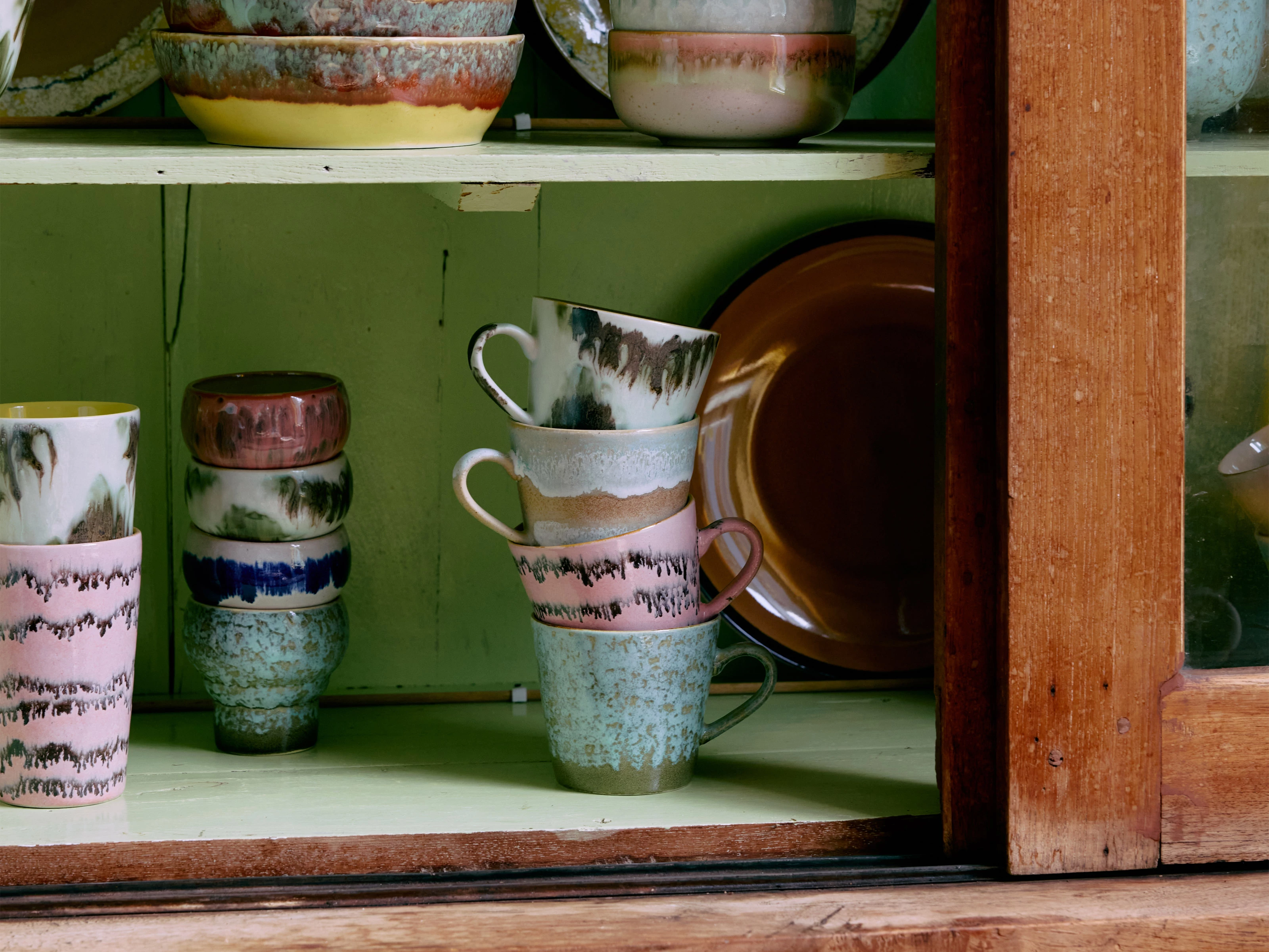 Rooted in the relaxed spirit of 70s design, this set of four Cappuccino Mugs showcases cool tones and tactile, hand-finished details, ensuring each piece feels subtly unique. Its organic aesthetic brings an easy, unhurried feel to your coffee ritual, blending nostalgic warmth with artisanal character.
