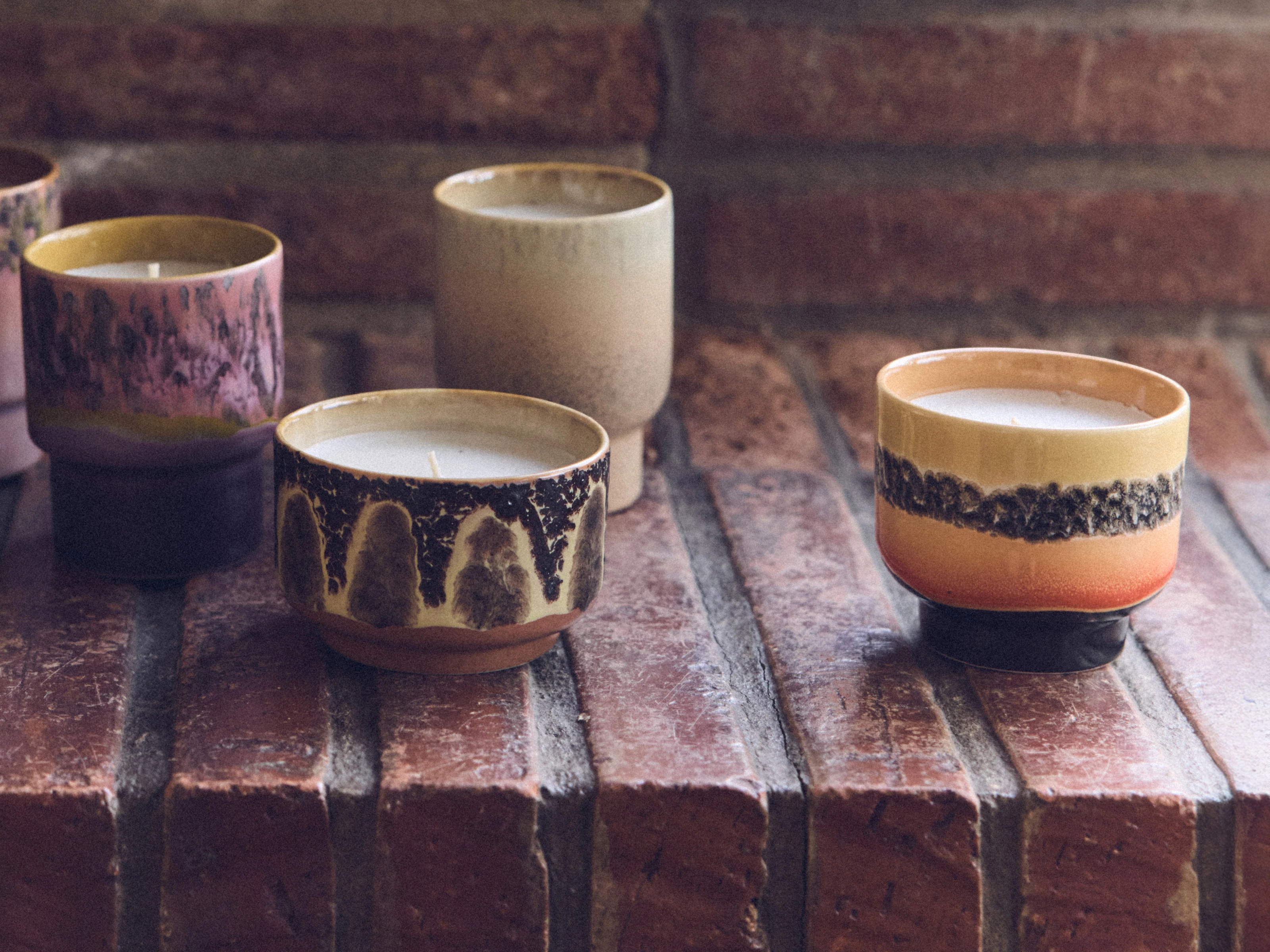Expanding on HKLIVING’s original 70s Ceramics collection, the range of Small Scented Candles integrates effortlessly into various spaces around the home. Display on sideboards, shelves or tables to bring colour, personality and a hint of tropical joie de vivre to living rooms, kitchens or intimate corners.