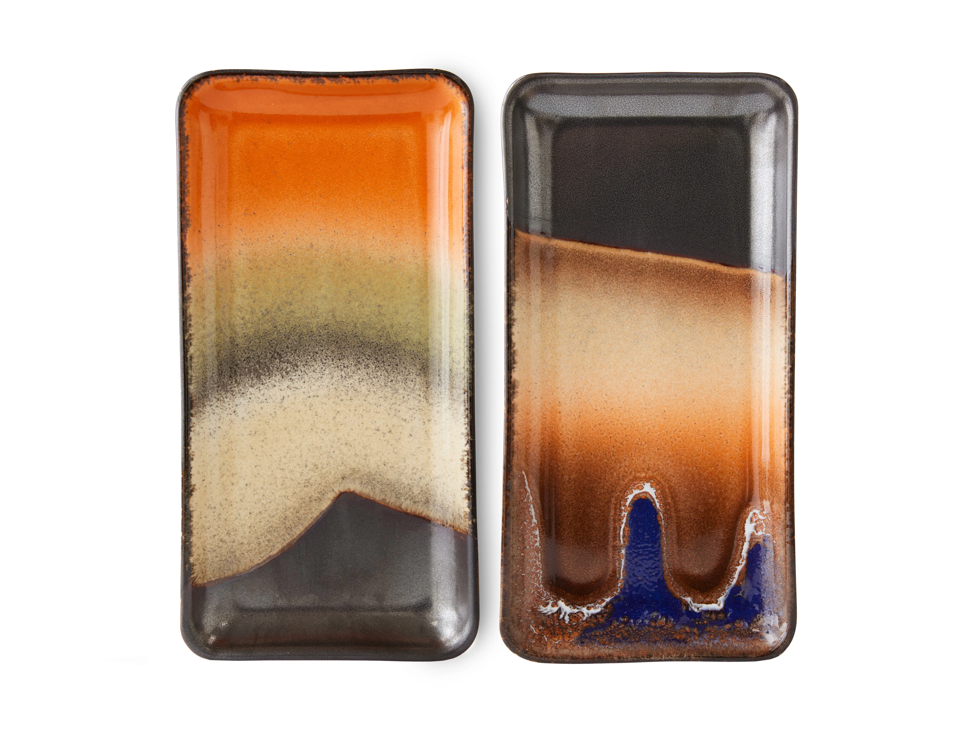Perfect for serving pastries, sharing snacks or styling on a coffee table, this set of two trays brings a playful vintage spirit to everyday moments. The rich, warm tones add bold character and flair to kitchens and dining areas - they’re pieces destined to become your go-to whenever you’re hosting.