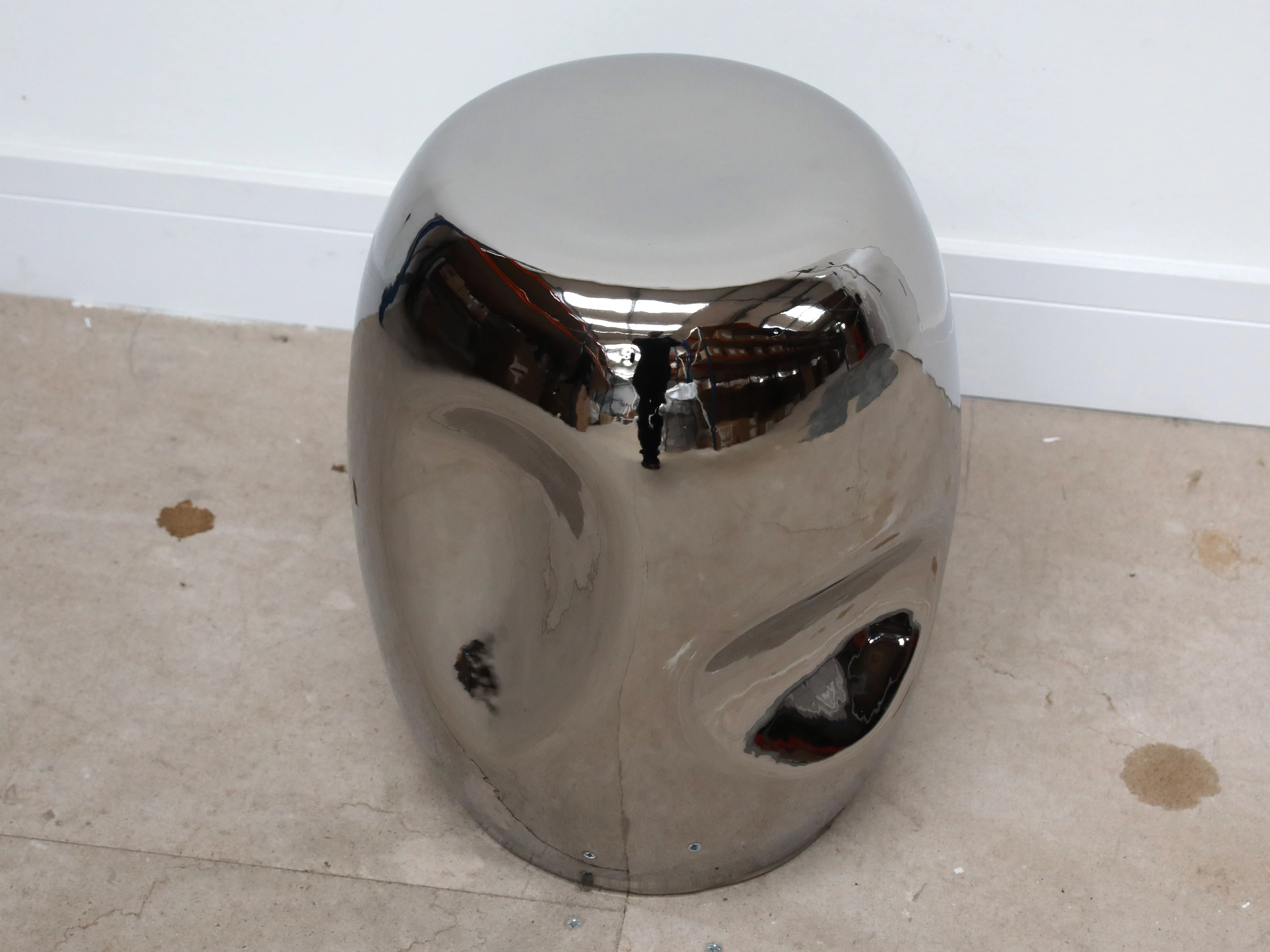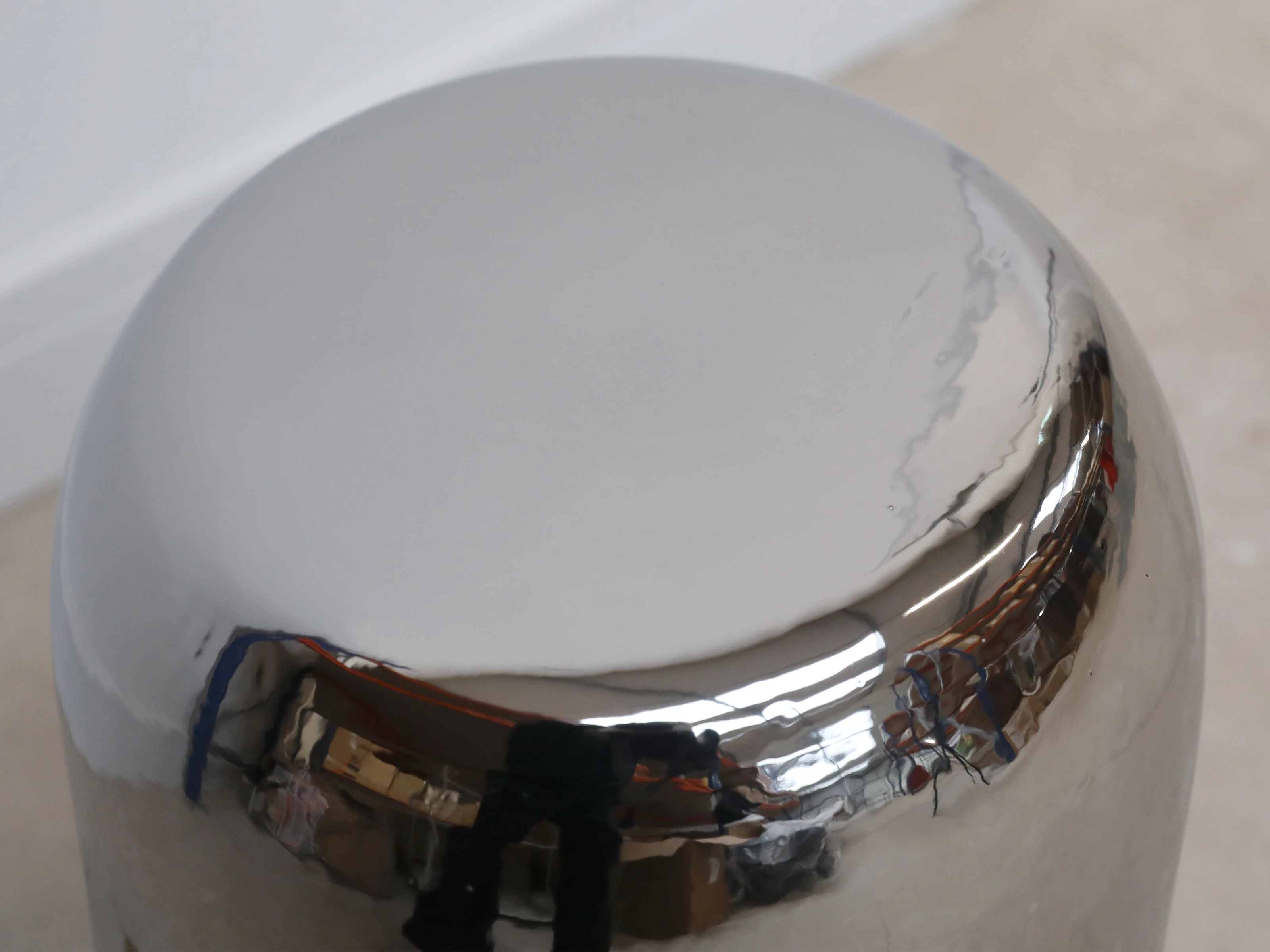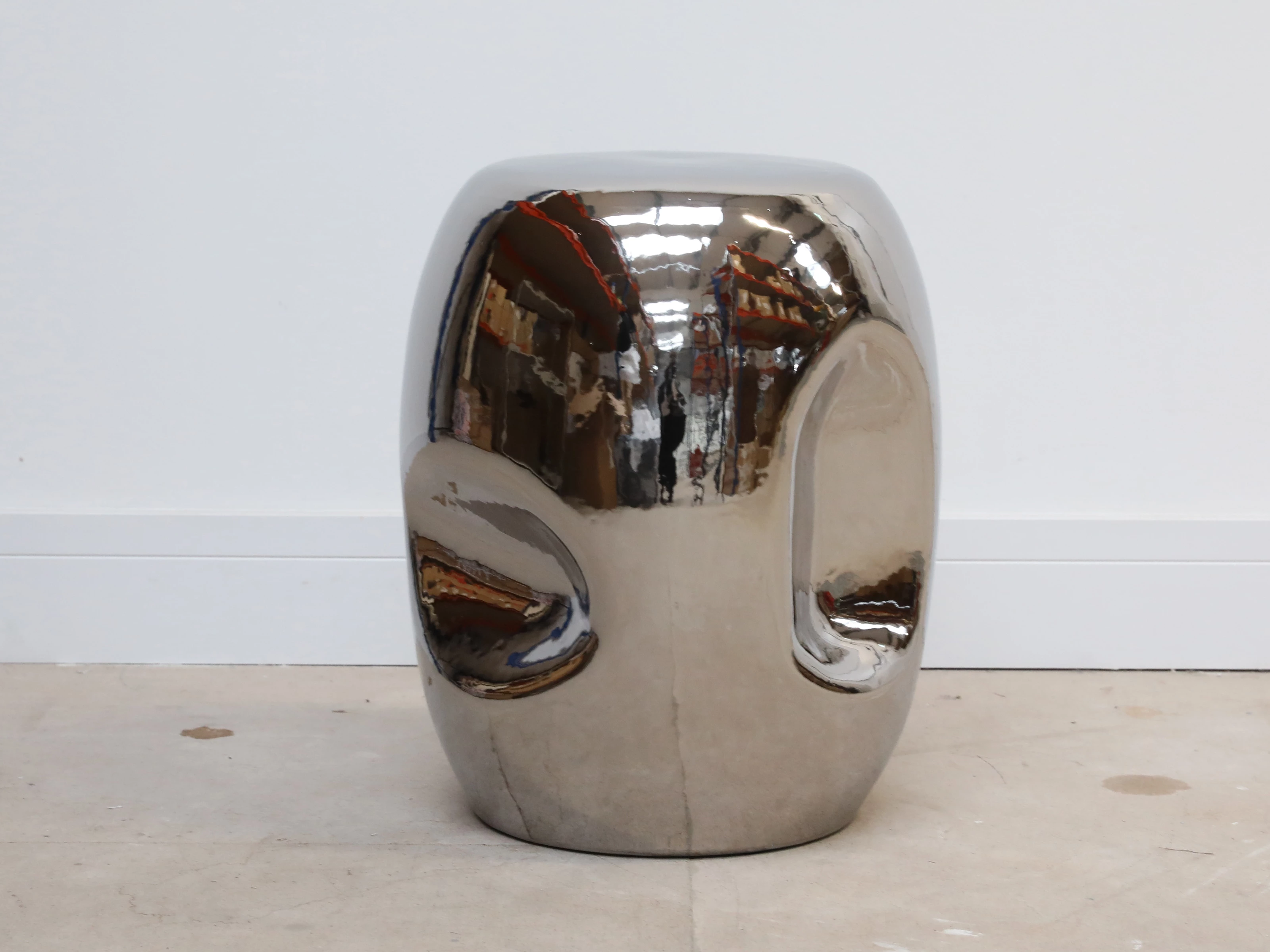 Designed to make a bold statement in any living room or bedroom, this side table’s organic structure and luxurious chrome surface are destined to dazzle your guests. Its highly reflective surface beautifully captures its surroundings, displaying an ever-changing interplay of light and shadow when viewed from different angles.