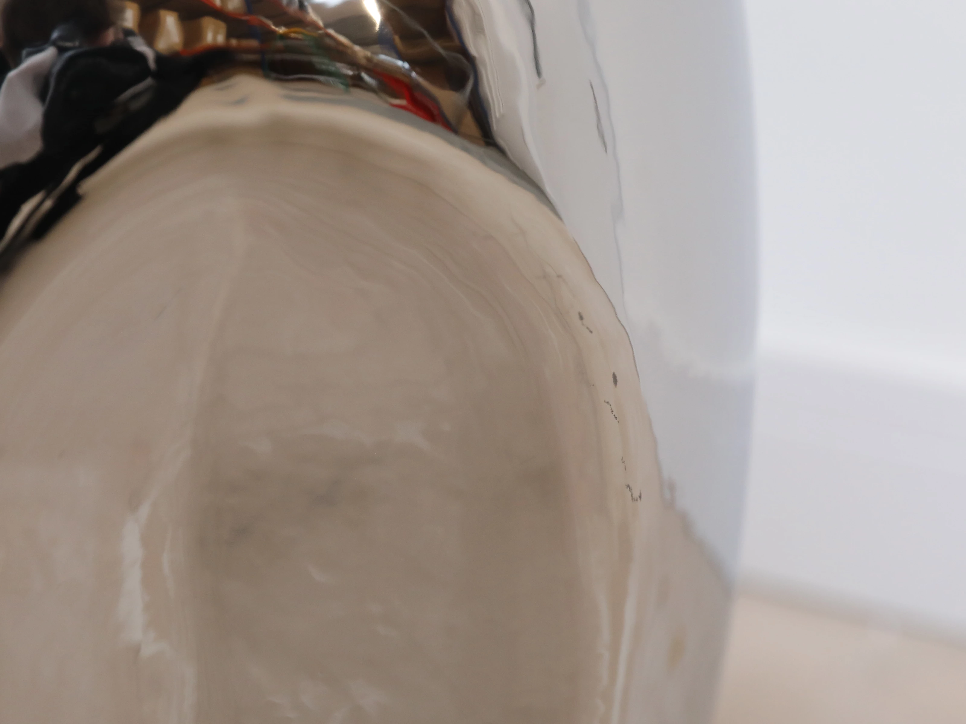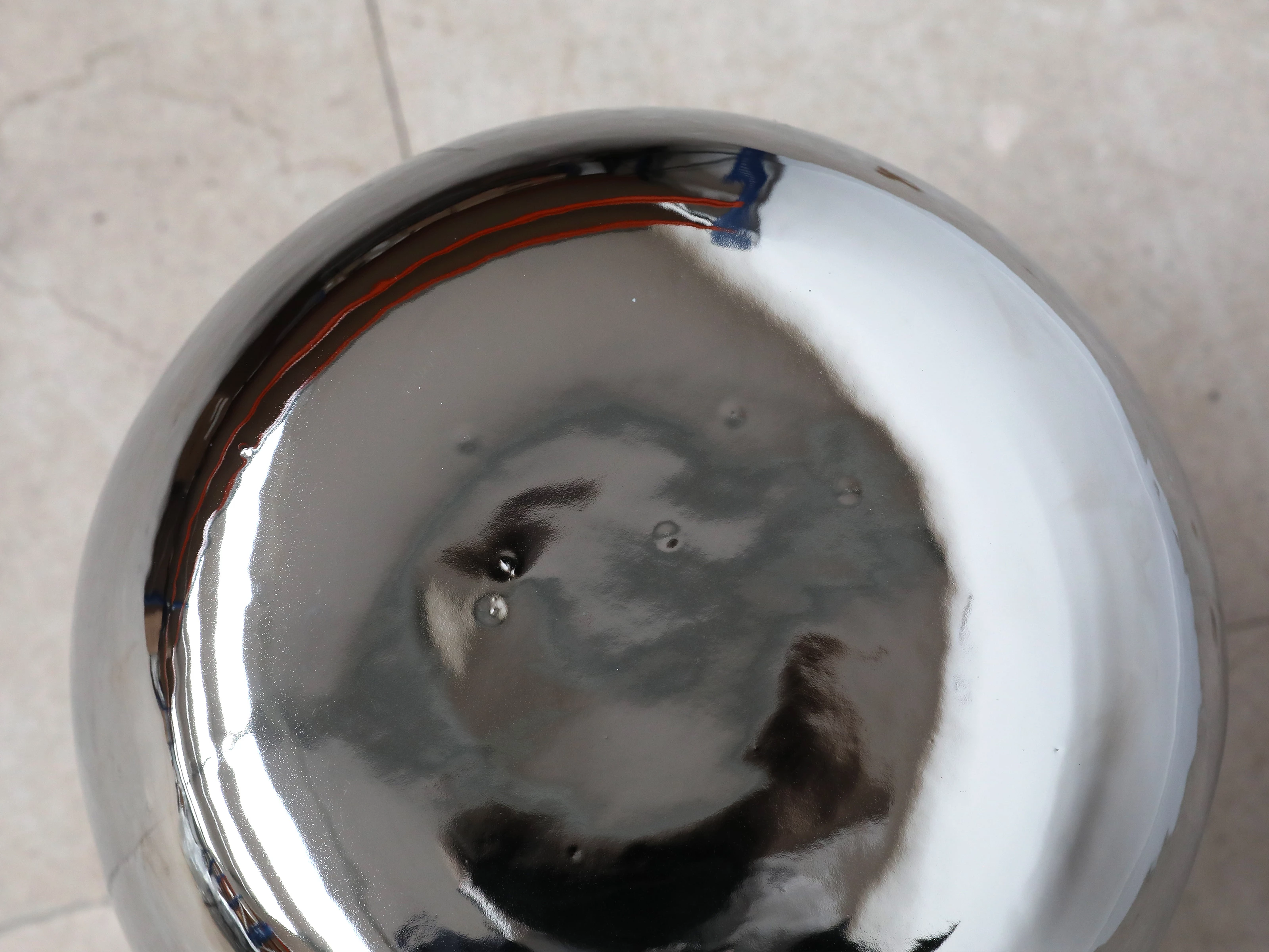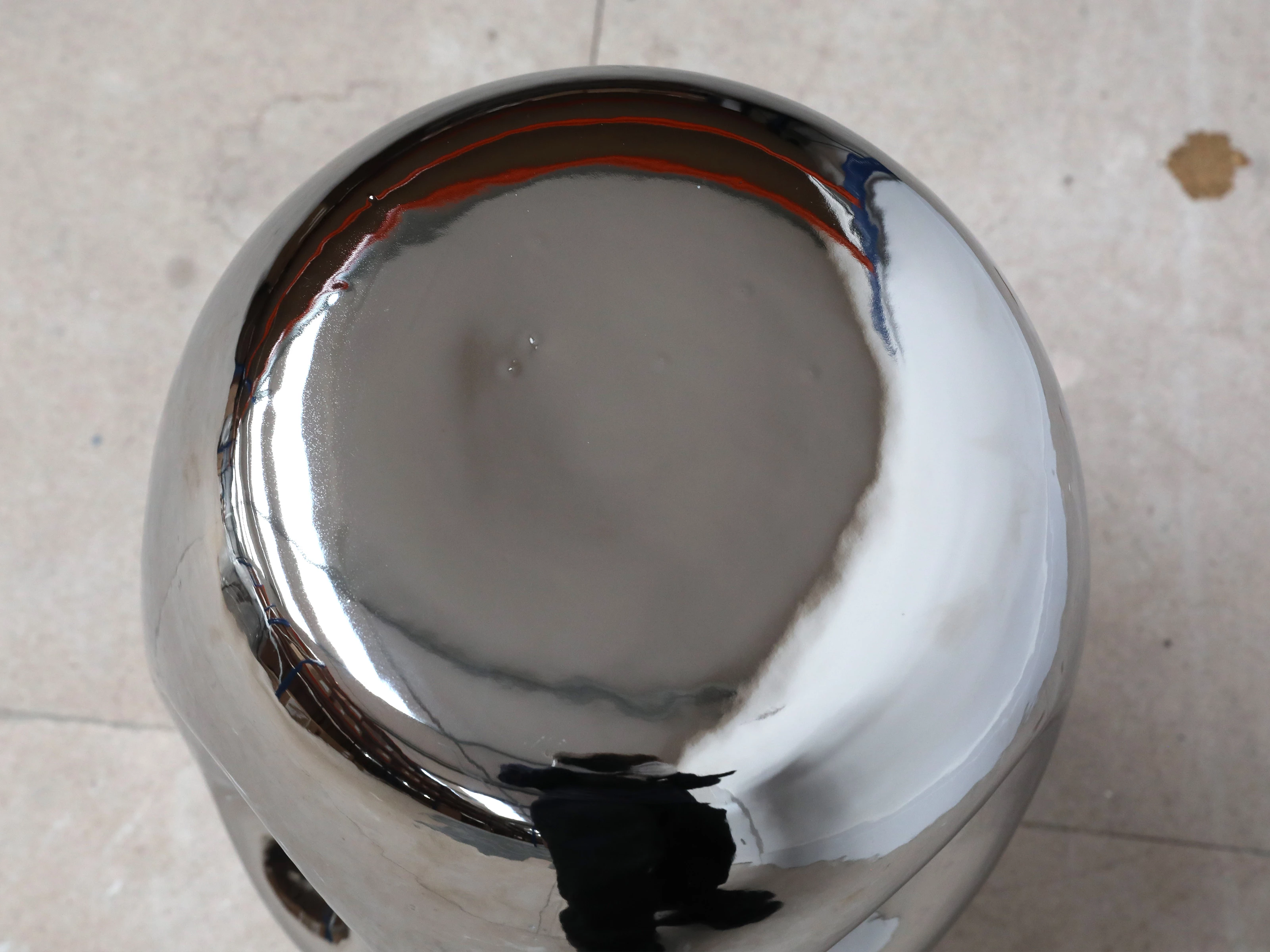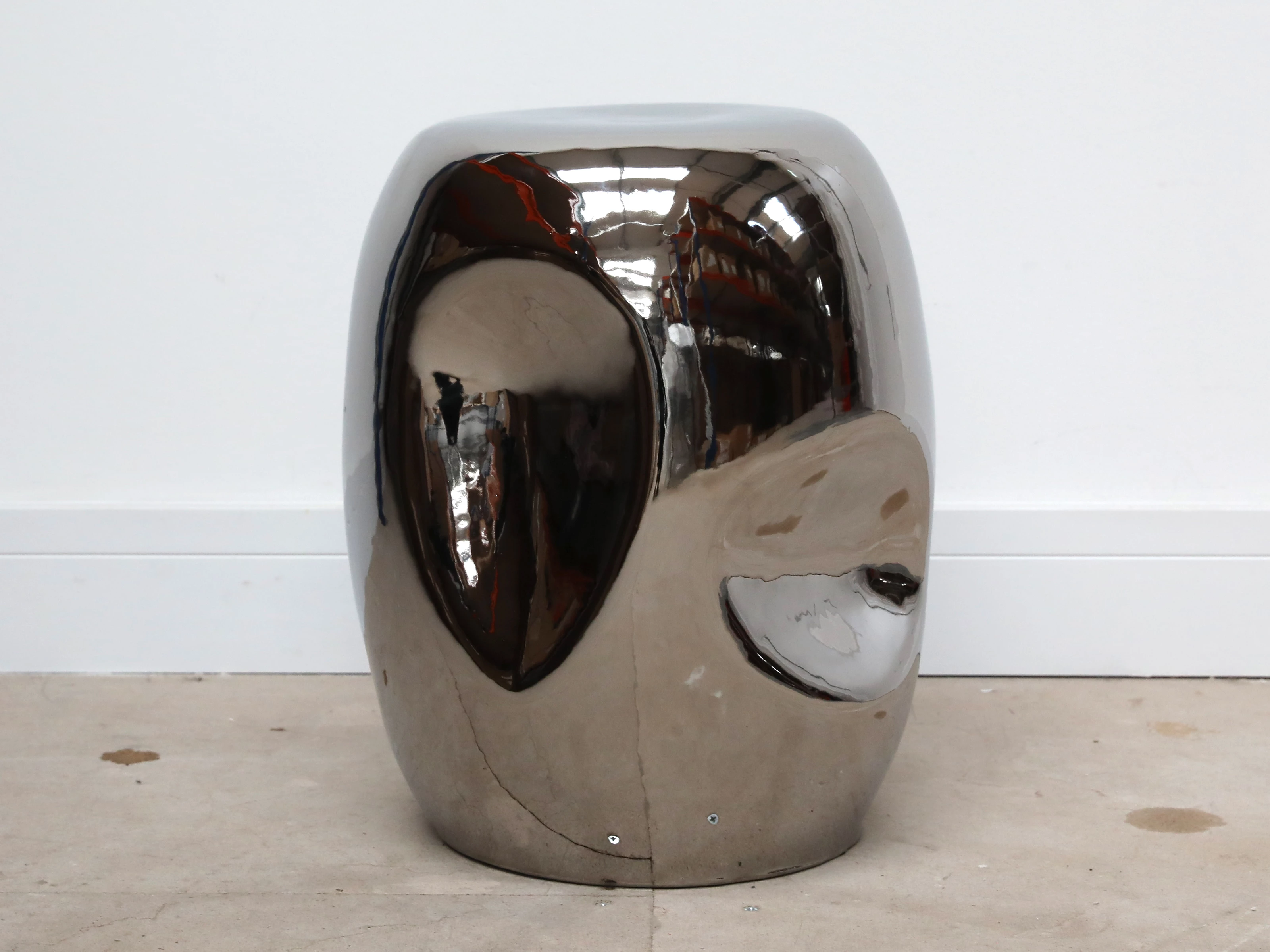 Designed to make a bold statement in any living room or bedroom, this side table’s organic structure and luxurious chrome surface are destined to dazzle your guests. Its highly reflective surface beautifully captures its surroundings, displaying an ever-changing interplay of light and shadow when viewed from different angles.