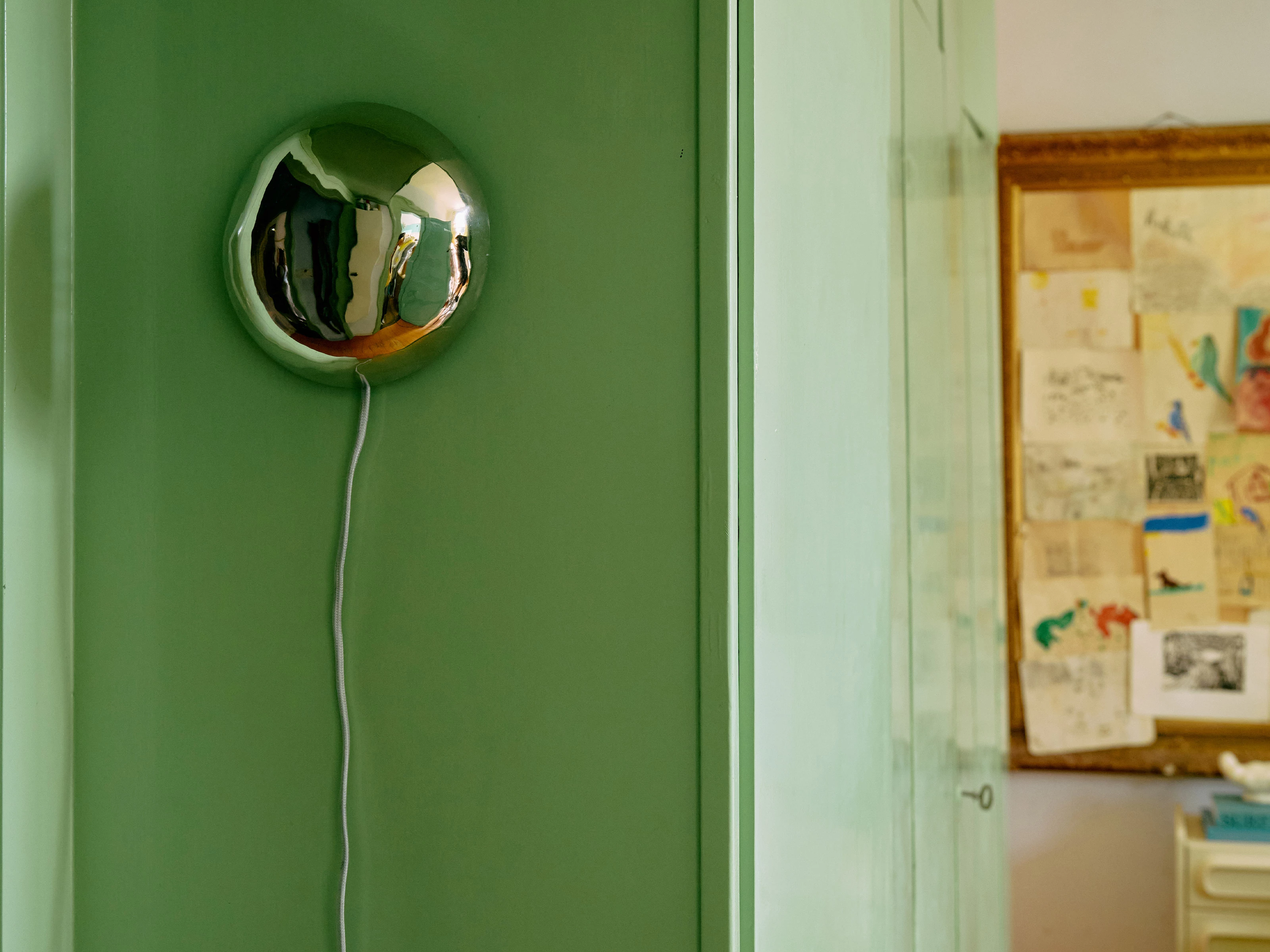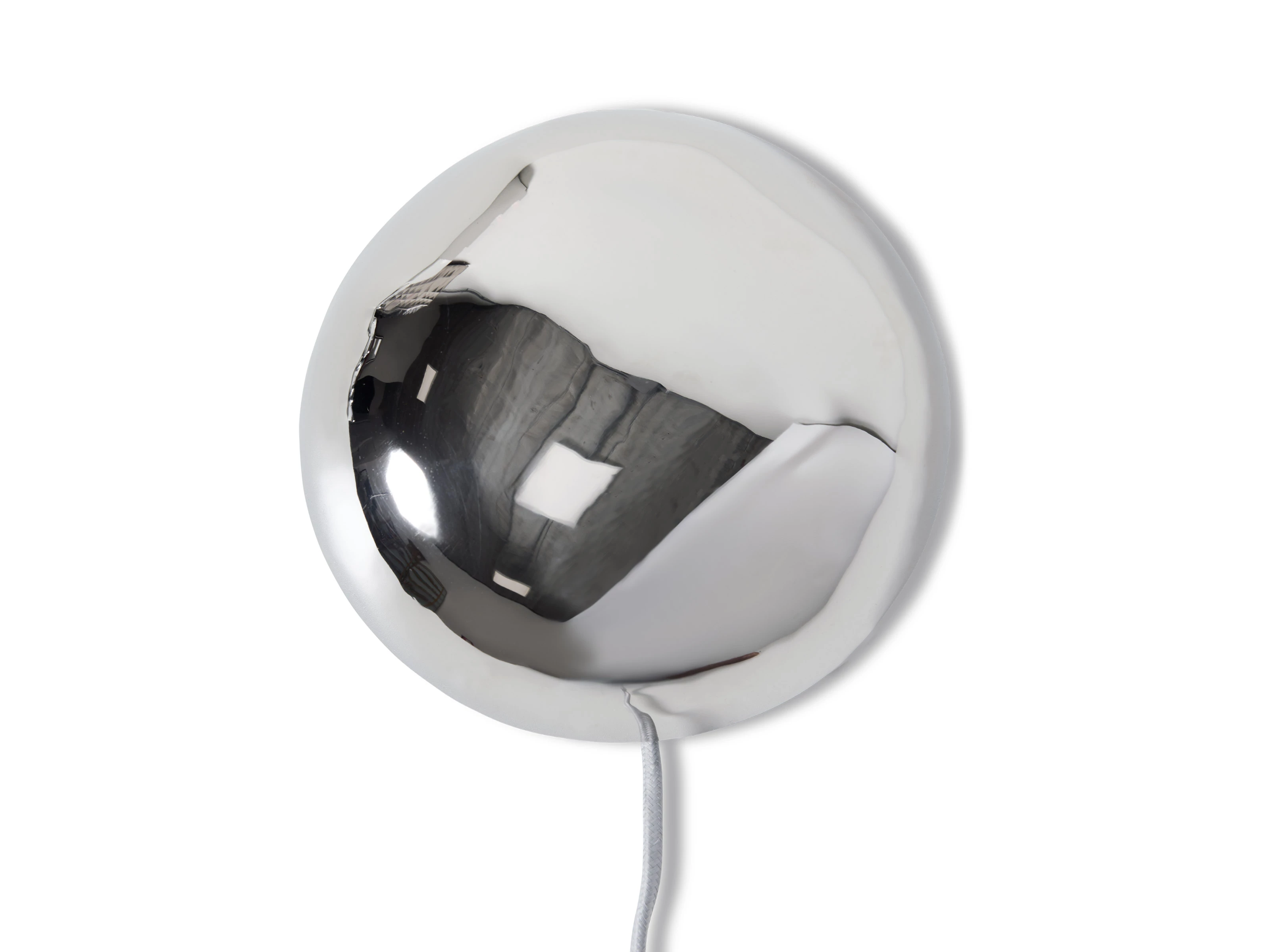 The Orb Wall Lamp brings a touch of space-age style to your home. Its polished, mirrored finish captures the surrounding room, transforming light, movement and shadow into part of its design. Suitable for hallways, living rooms or bedrooms, the lamp casts a soft ambient glow while acting as a striking focal point with its reflective shine and sleek, futurist aesthetic.