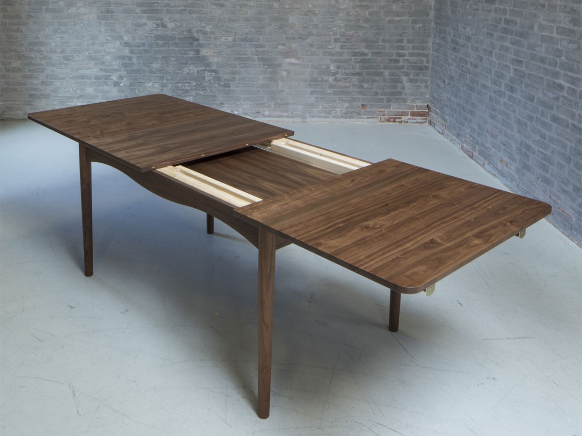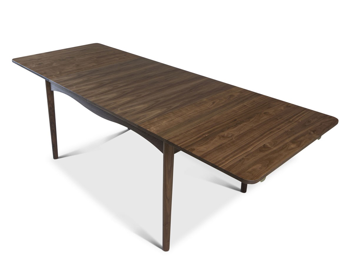 First presented by Finn Juhl at the 'New Home' exhibition in Copenhagen in 1948, the dining table expertly unites functionalism and beautiful aesthetics. Expertly crafted from solid walnut, the wave-shaped crossbar allows you to move your legs freely under the table, creating a relaxed, comforting atmosphere. Effortlessly adapting to changing requirements and spaces in the modern home, the tables features an extendable design, giving you the freedom to provide additional seating for friends and family as and when you need it. Also available in a non-extendable version.