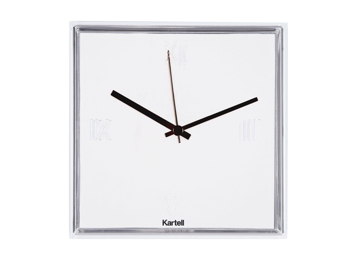 A transparent square 'box' measuring 30 x 30cm with Roman numerals engraved on the surface. Tic&Tac is an impressive and strikingly modern clock, and is available in black.