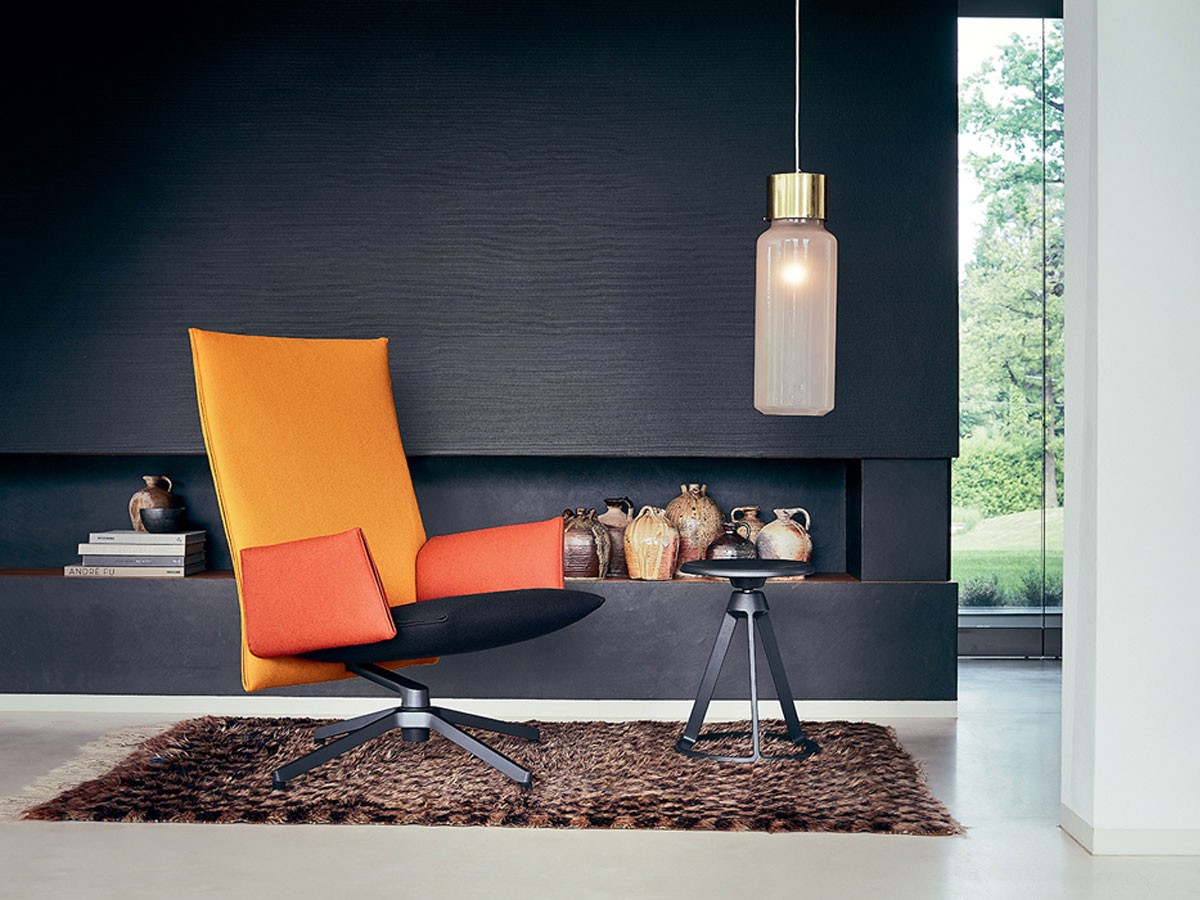 Pilot is a modern lounge chair, that is ideal for any type of space from the home to the office. The chair has a striking profile that perfectly suits the domestic setting whilst adapting perfectly for use as an executive armchair. The Pilot Chair features a cast-aluminum structure with the form of a “T” which links the swivel base to the assembly of the seat and back. At first glance the cantilevered seat seems to be almost floating in the air. This particular feature brings greater flexibility to the seat and lightness to the structure, creating a unique silhouette for an essential, timeless design.