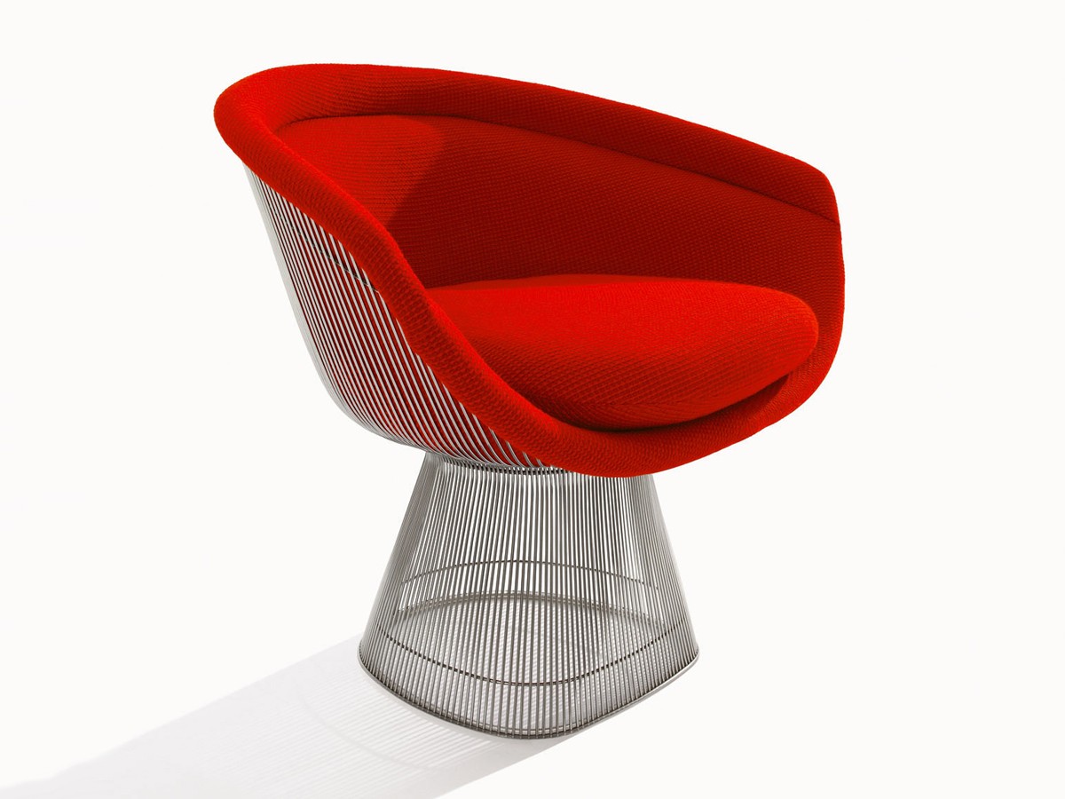 Warren Platner studied architecture at Cornell University. Following his work with legendary designers Raymond Loewy, Eero Saarinen and I. M. Pei, he immersed himself in the creation of steel wire furniture, devising the method and tooling to produce the lounge chair in the line as well.