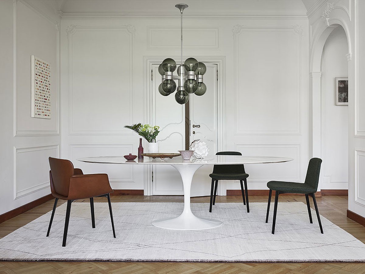 An uncomplicated and highly refined take on modern seating, the KN07 Dining Chair is a beautifully realised piece of decorative furniture finished to the very highest of standards, as one would expect of the master artisans at Knoll Studio. Magnificently upholstered in luxurious Knoll Curly fabric, and available in a range of distinctive colourways, the KN07 is guaranteed to inject any space with a sense of style, be it dining room, living space or hallway.