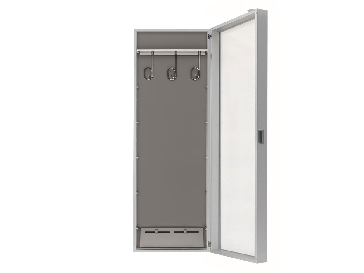 Simple and elegant, the Box in its coat configuration is a miraculous object that saves space and carries a genuine sense of style. Internally there is generous storage for coats, jackets and jumpers in the upper section of the piece, while there is ample space for shoes and other accessories below. The outer facing door features an impressively proportioned mirror which covers the whole door, while a semi-concealed handle is inset into the door, with the results being at once both utilitarian and functional, but also aesthetically impressive. Designed for the home but equally of service in an executive space, the Kristalia Box is a real showpiece, and is available in a number of layouts.