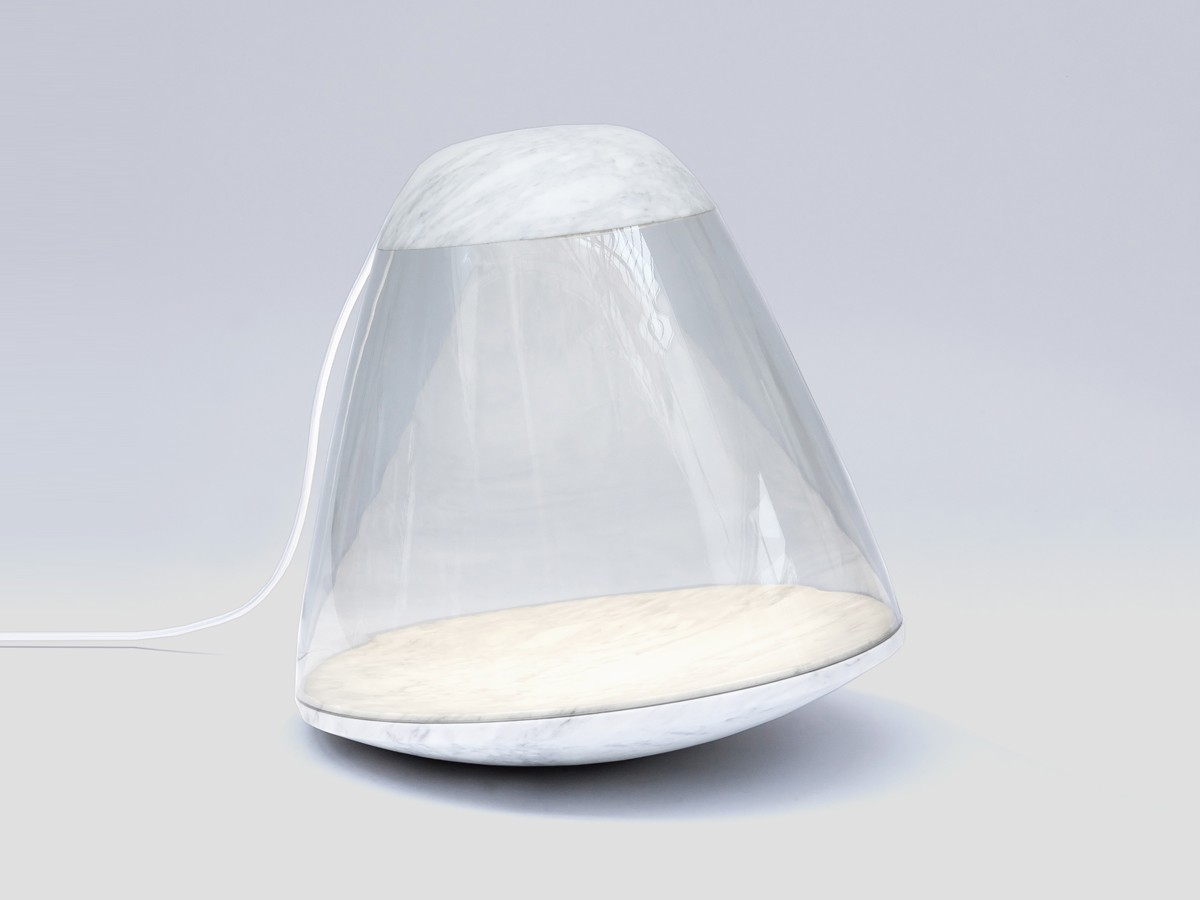 The light beam showcases the beauty and details of the material. Apollo’s tilted base makes it look like the lamp just landed, like the American space capsule that inspired its name.