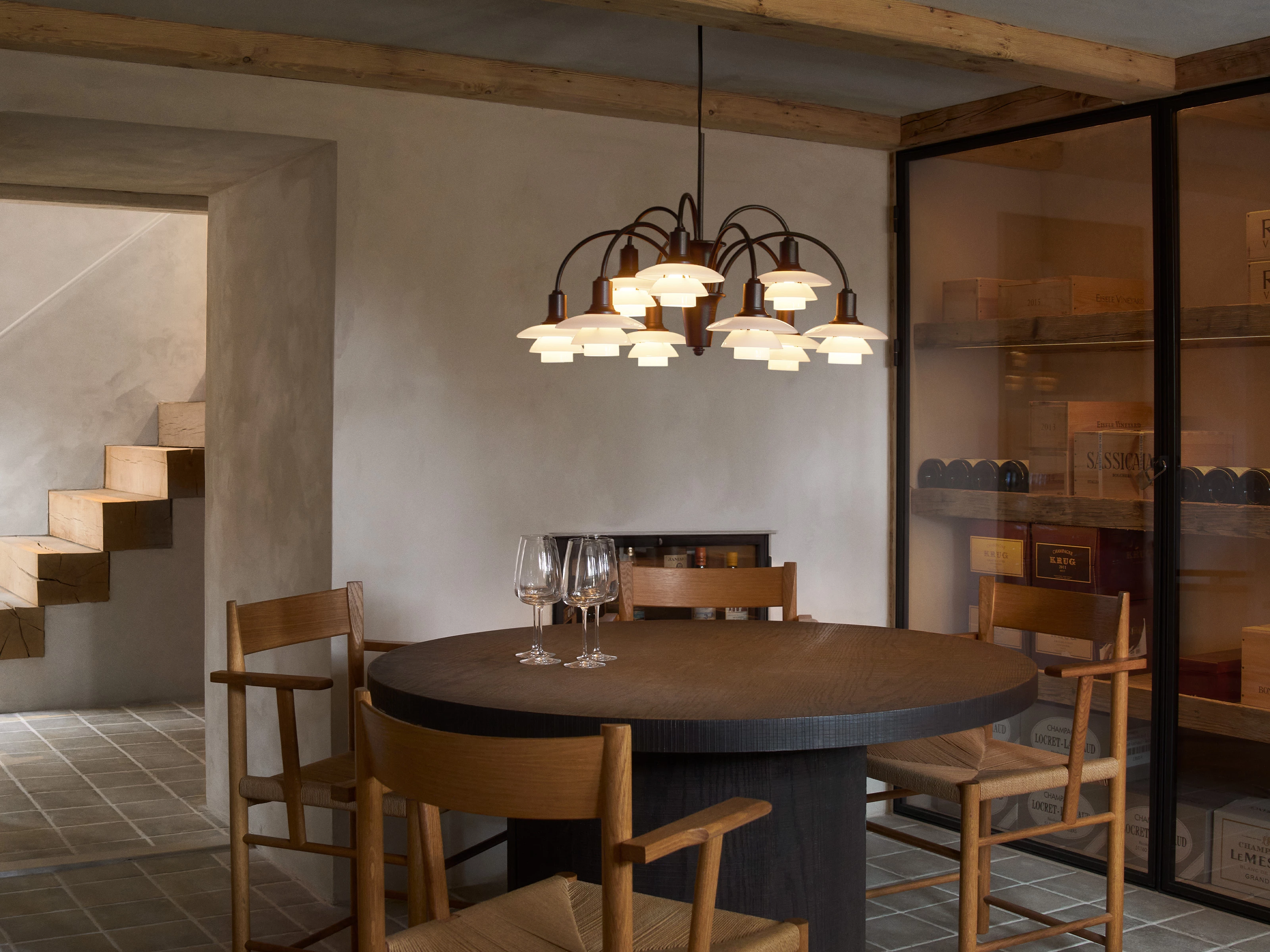 Mouth-blown, layered opal glass shades cast a soft, balanced radiance both above and below, enveloping dining rooms and entrance halls in a calm, atmospheric glow. The PH 1/1 Chandelier transforms spaces into refined sanctuaries, offering warmth, prestige and a quietly confident sense of occasion. Available in strictly limited numbers worldwide, once secured, this Centenary Edition is gone forever.