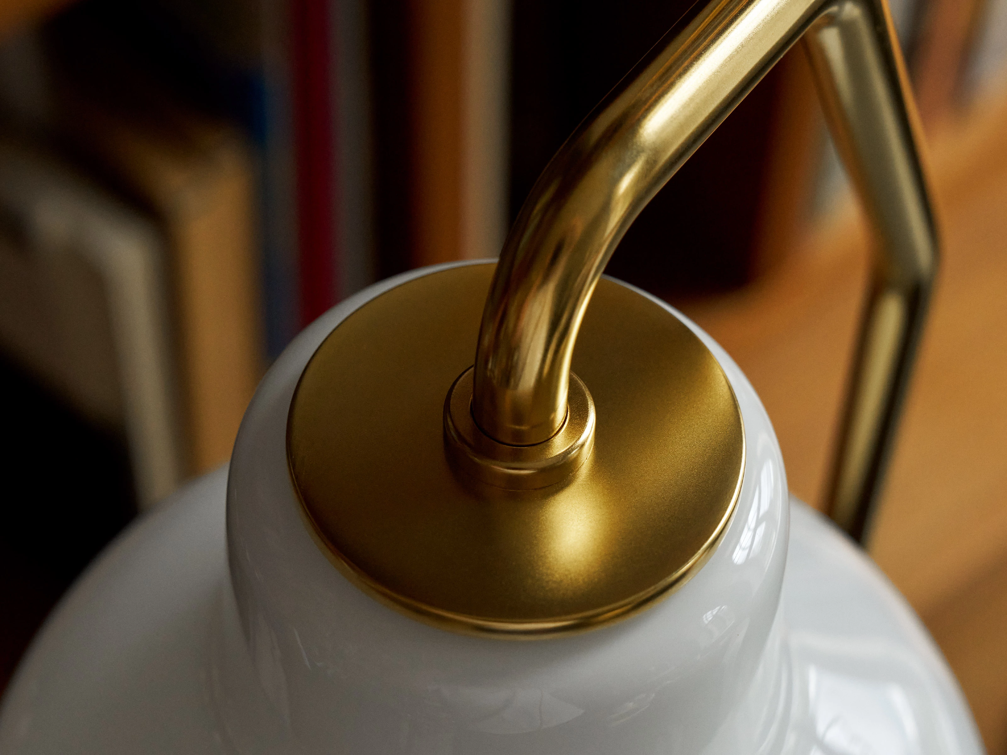 The original VL Ring Crown lights were designed by Lauritzen for Copenhagen’s Radio House in 1945 and were reintroduced by Louis Poulsen in 2019. This floor lamp is a reverent update to the collection, with its layered, mouth-blown opal glass and satin-polished brass stem - a blend of vintage style and contemporary design to create a look that never ages.