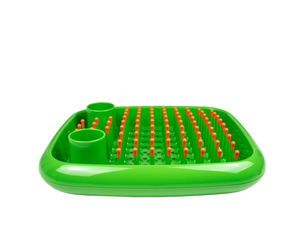 The dishes are placed amidst a forest of stalks, their rounded shape mirroring that of the shell. The bright colours give the rack a decidedly playful aesthetic, making even the most onerous of chores into something more exciting.