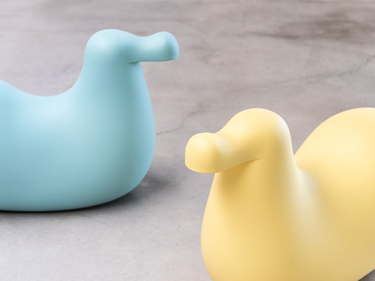 The classic shape of the rocking horse has been reimagined in modern materials by Oiva Toikka. The Magis Dodo Outdoor Rocking Bird has a unique and eye-catching shape, with rounded, playful contours and bright colours. The polyethylene shell is durable and suitable for outdoor use, allowing the Dodo to accompany your child on all their adventures inside and outside the home.