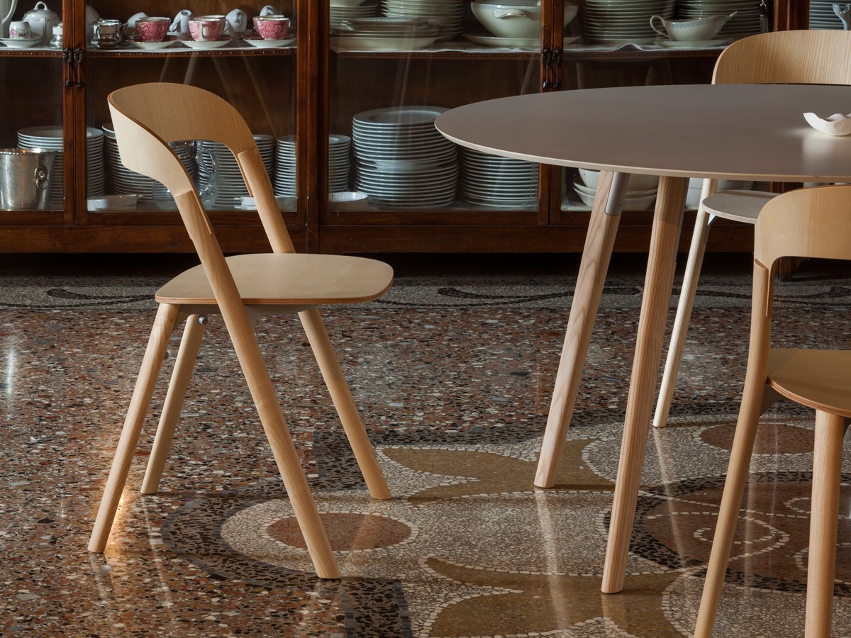 The chair back, like a knife blade, subtly comes into the main frame, while guaranteeing high support resistance.