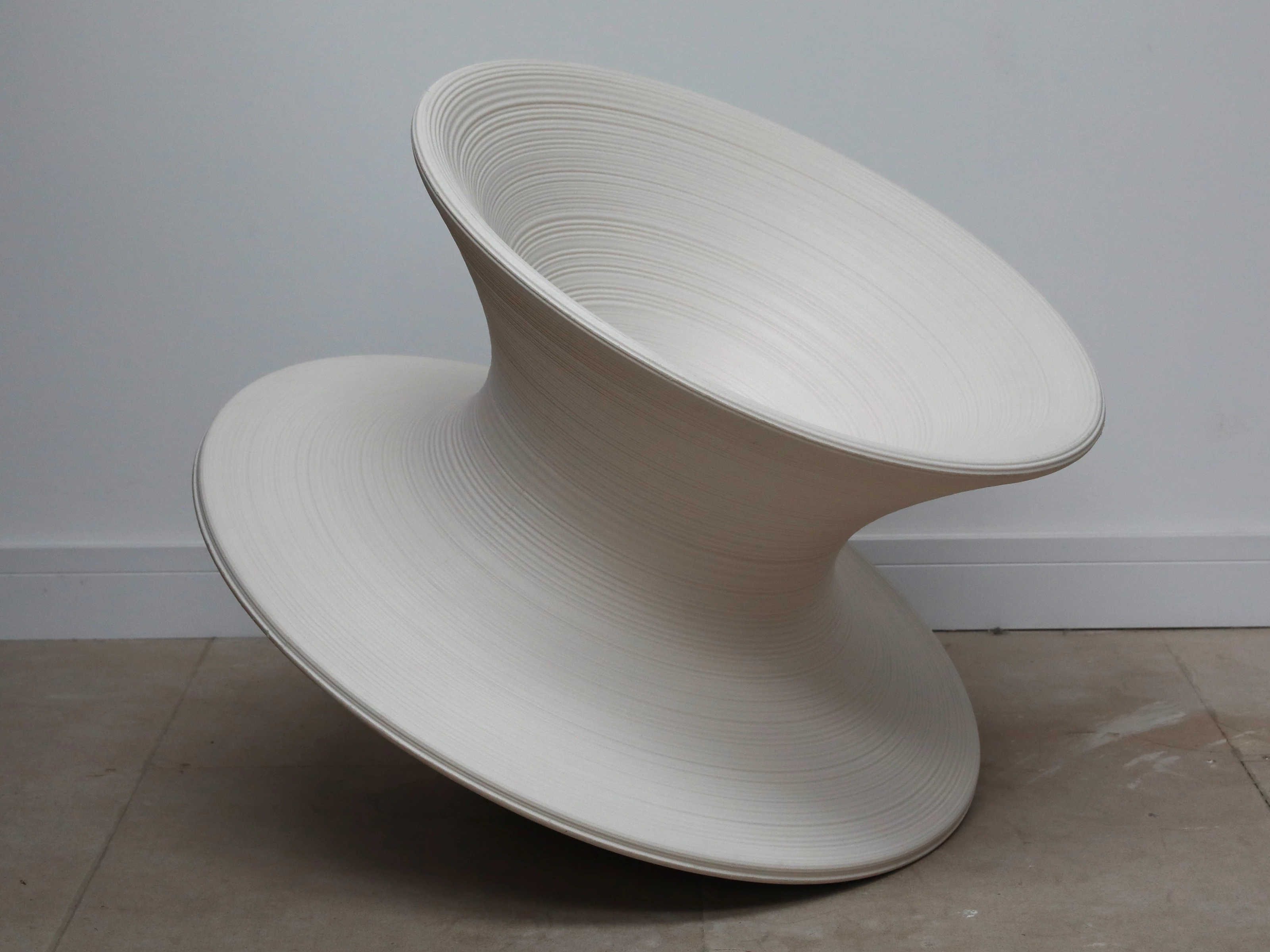 Made from a single profile rotated through 360 degrees the aptly named Spun rotating chair transforms the domestic seat into a beautifully rendered spinning top. When upright, the chair is a sculptural vessel, a dramatic piece of contemporary art from designer Thomas Heatherwick. Tipping it to one side allows you to take advantage of the unconventional shape to rock in any direction, indulging in a fun and playful side that characterises both Heatherwick and Magis’ work. Whether used indoors or outside, the Spun adds an unconventional twist to your home.